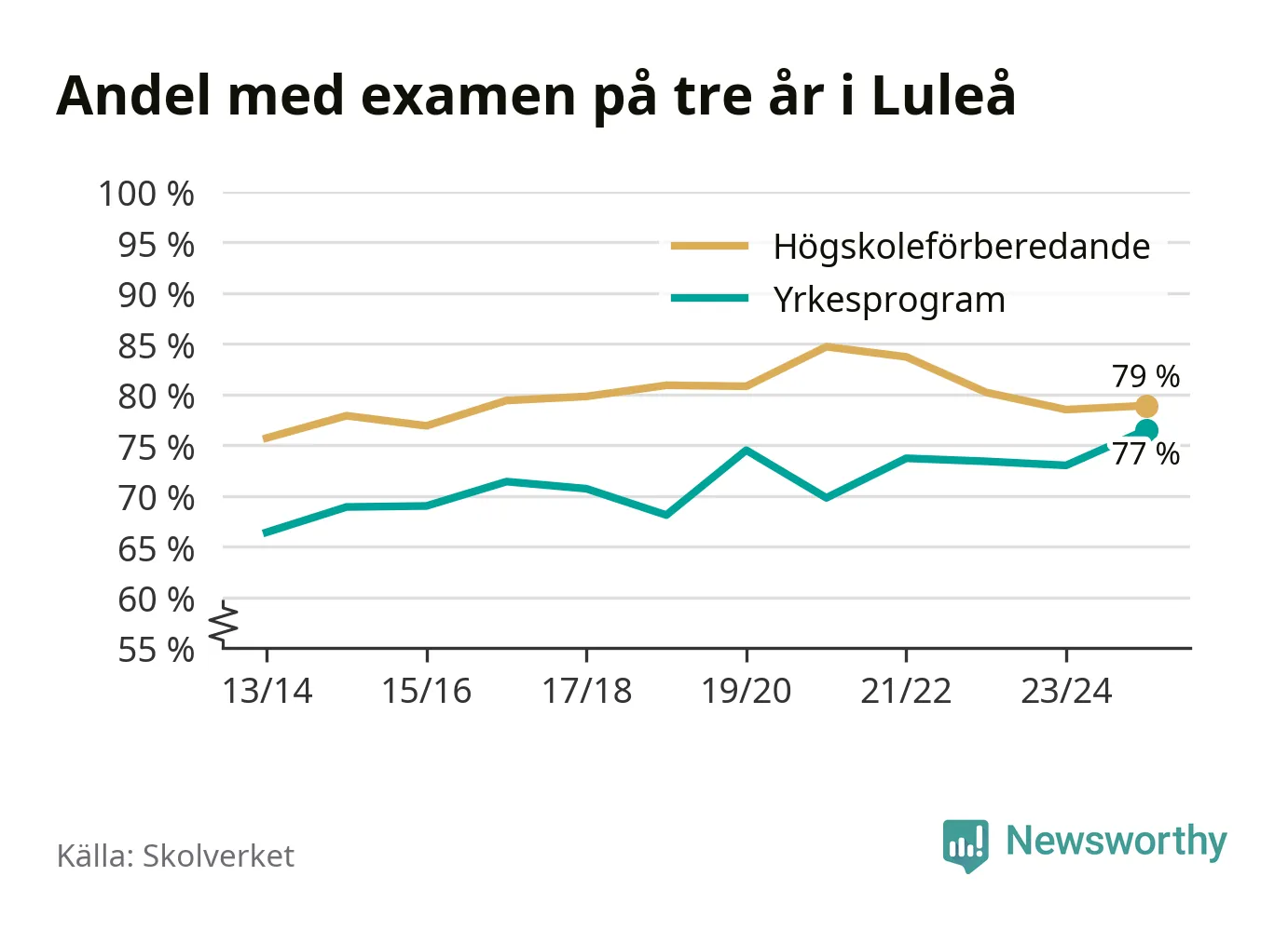 Luleå Gymnasieskola, skolenhet JLuleå70 % (+20 %)65 % (+4 %)