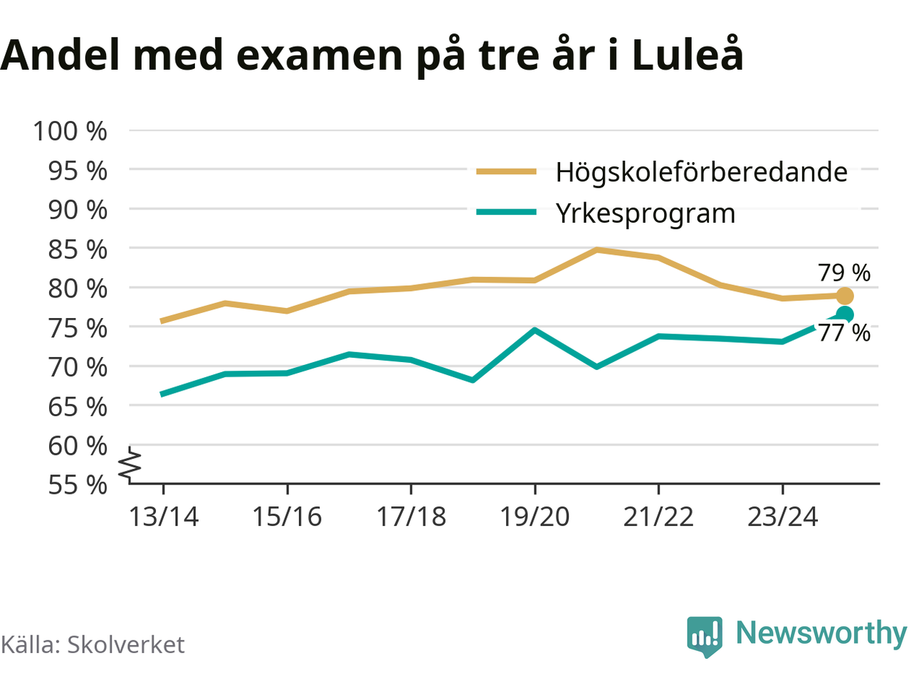 Luleå gymnasieskola, skolenhet BLuleå90 % (+13 %)78 % (−9 %)