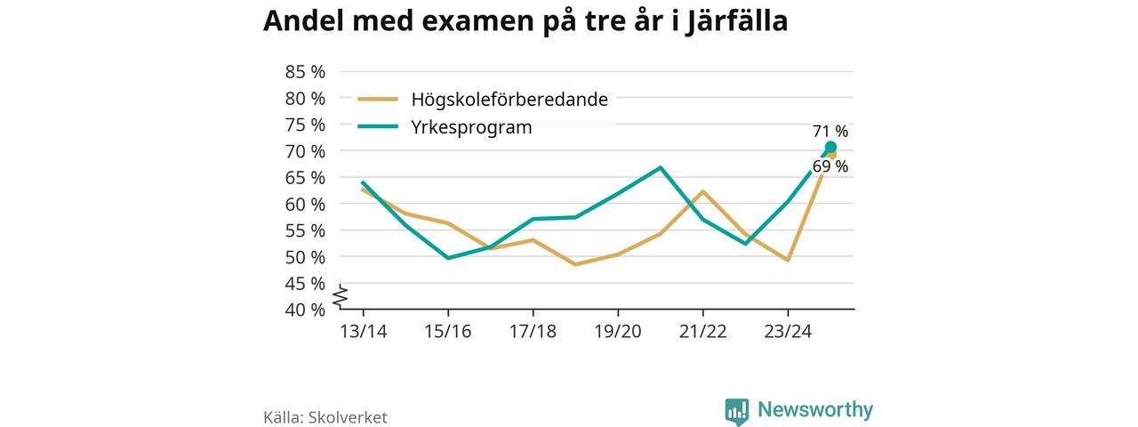När eleverna på de yrkesförberedande programmen på Järfälla gymnasium och Drottning Blankas Gymnasieskola Jakobsberg sprang ut i våras hade 71 procent klarat gymnasieexamen på tre år. Det är elva procentenheter fler än året innan och den högsta andelen sedan åtminstone läsåret 2013/14.