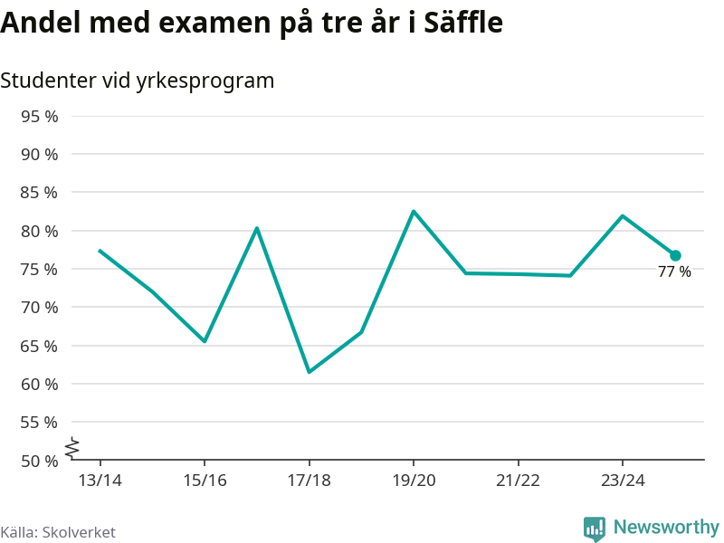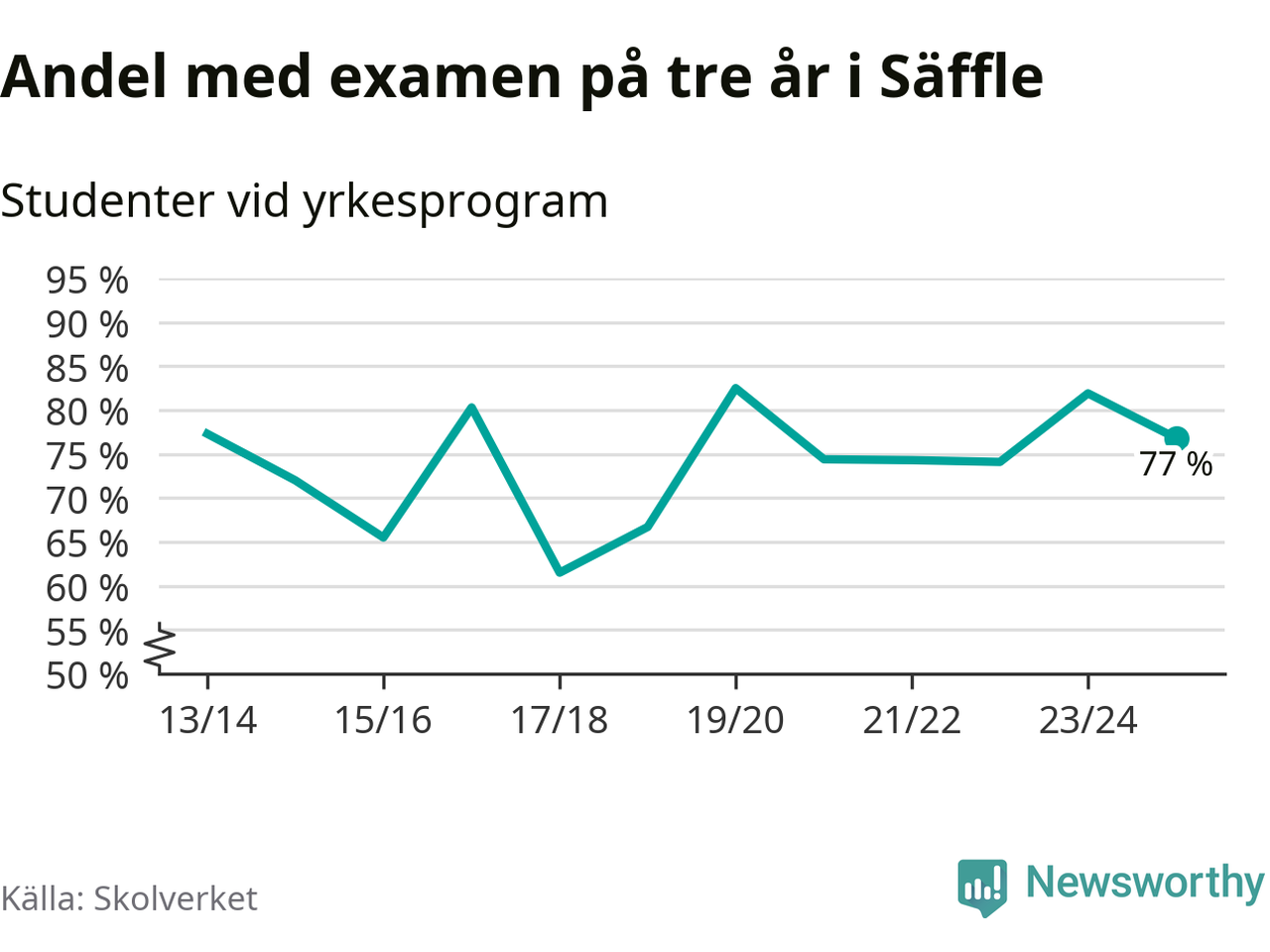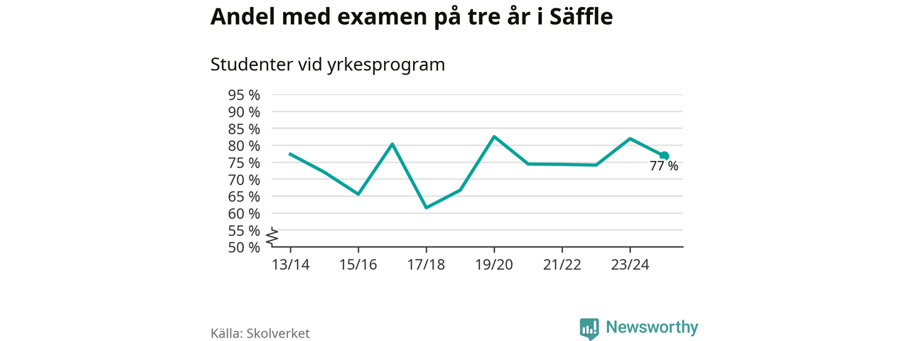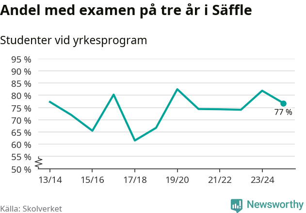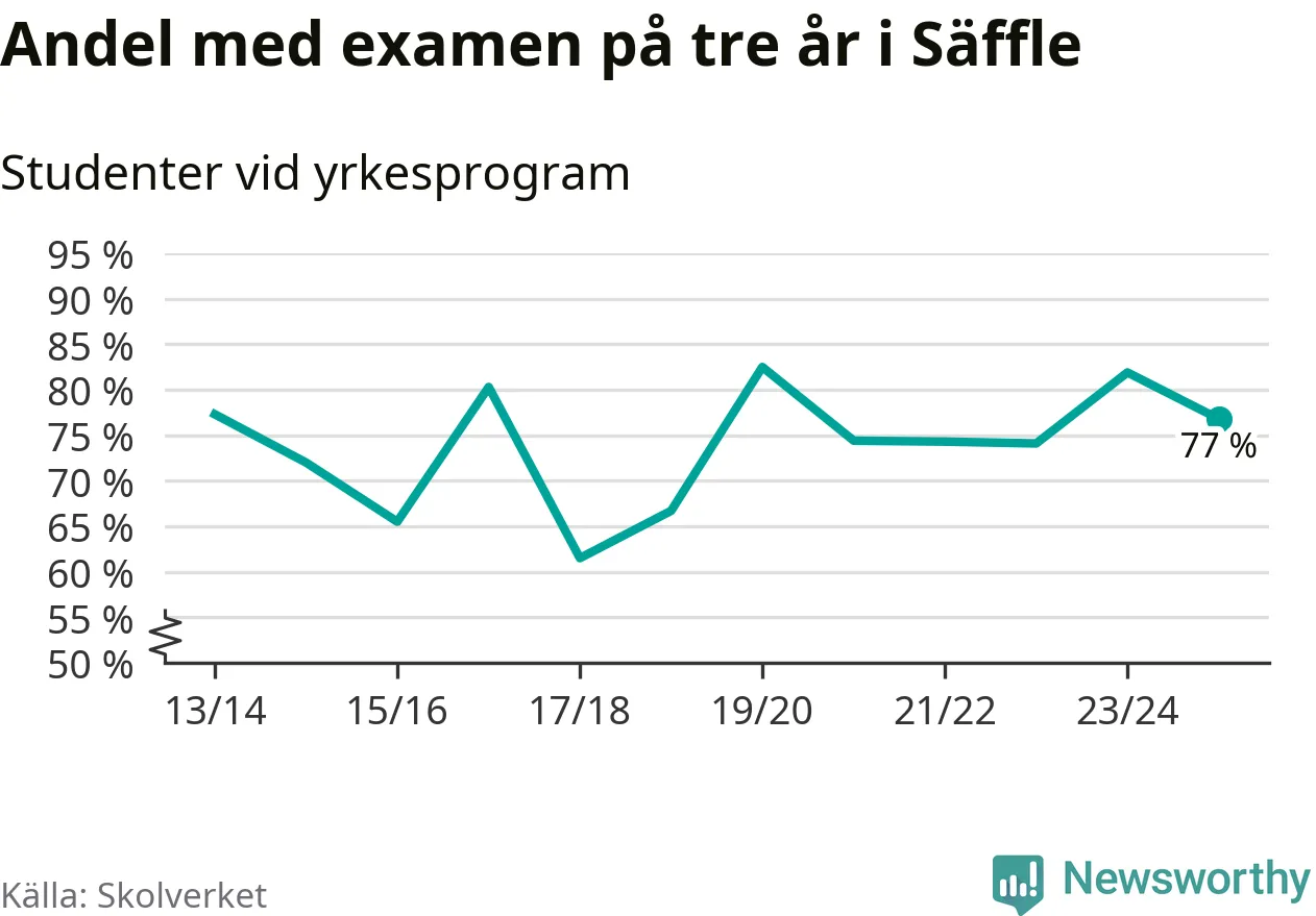 Medan andelen elever som klarade gymnasieexamen på tre år ökade i riket som helhet, minskade andelen i Säffle något. Det visar Skolverkets senaste statistik.