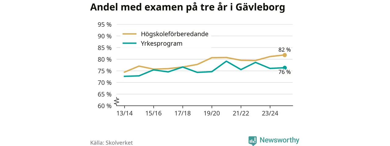 Inte sedan åtminstone läsåret 2013/14 har andelen elever som klarat gymnasieexamen på högskoleförberedande program varit högre i Gävleborg. Det visar Skolverkets senaste statistik.