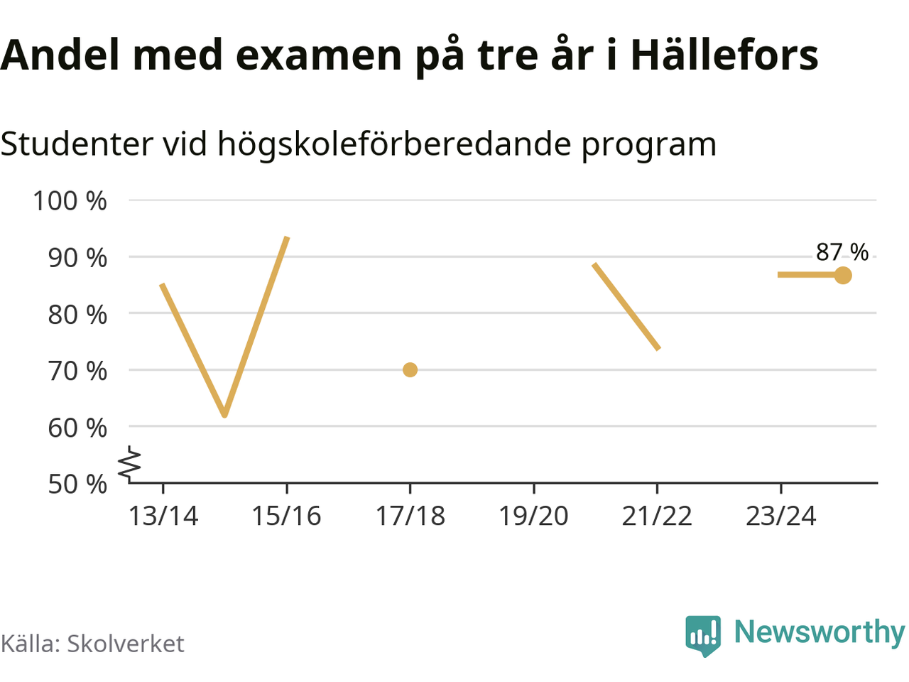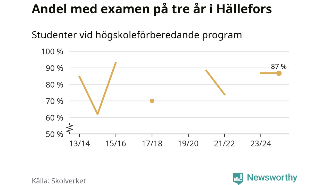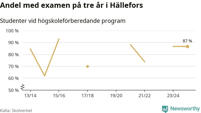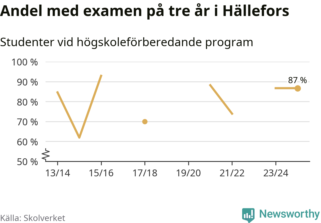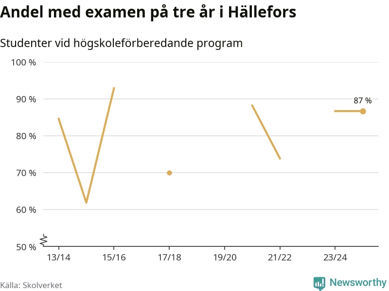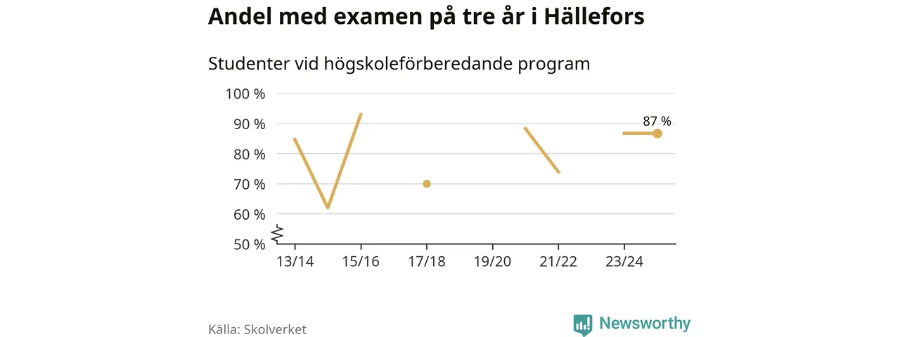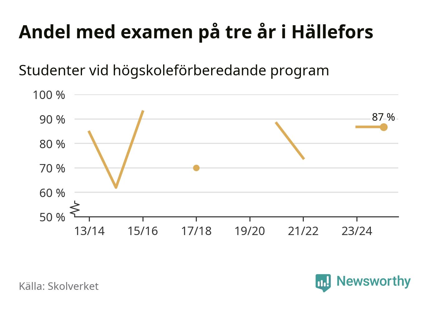 När eleverna på de högskoleförberedande programmen på Pihlskolan gymnasium i Hällefors sprang ut i våras hade 87 procent av dem klarat gymnasieexamen på tre år. Det är lika stor andel som året innan. För yrkesprogrammen på skolan saknas uppgift eftersom det rör sig om för få elever.
