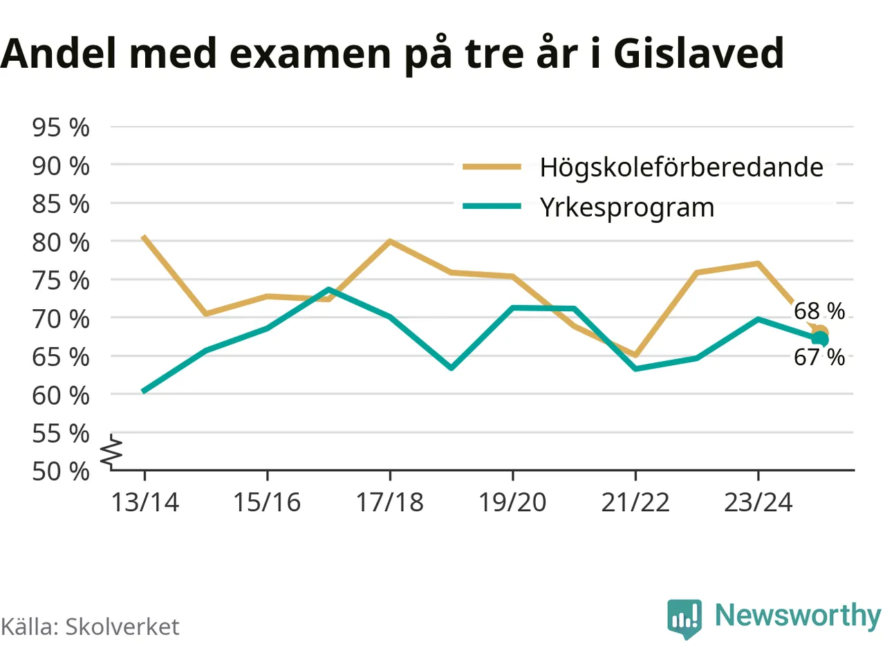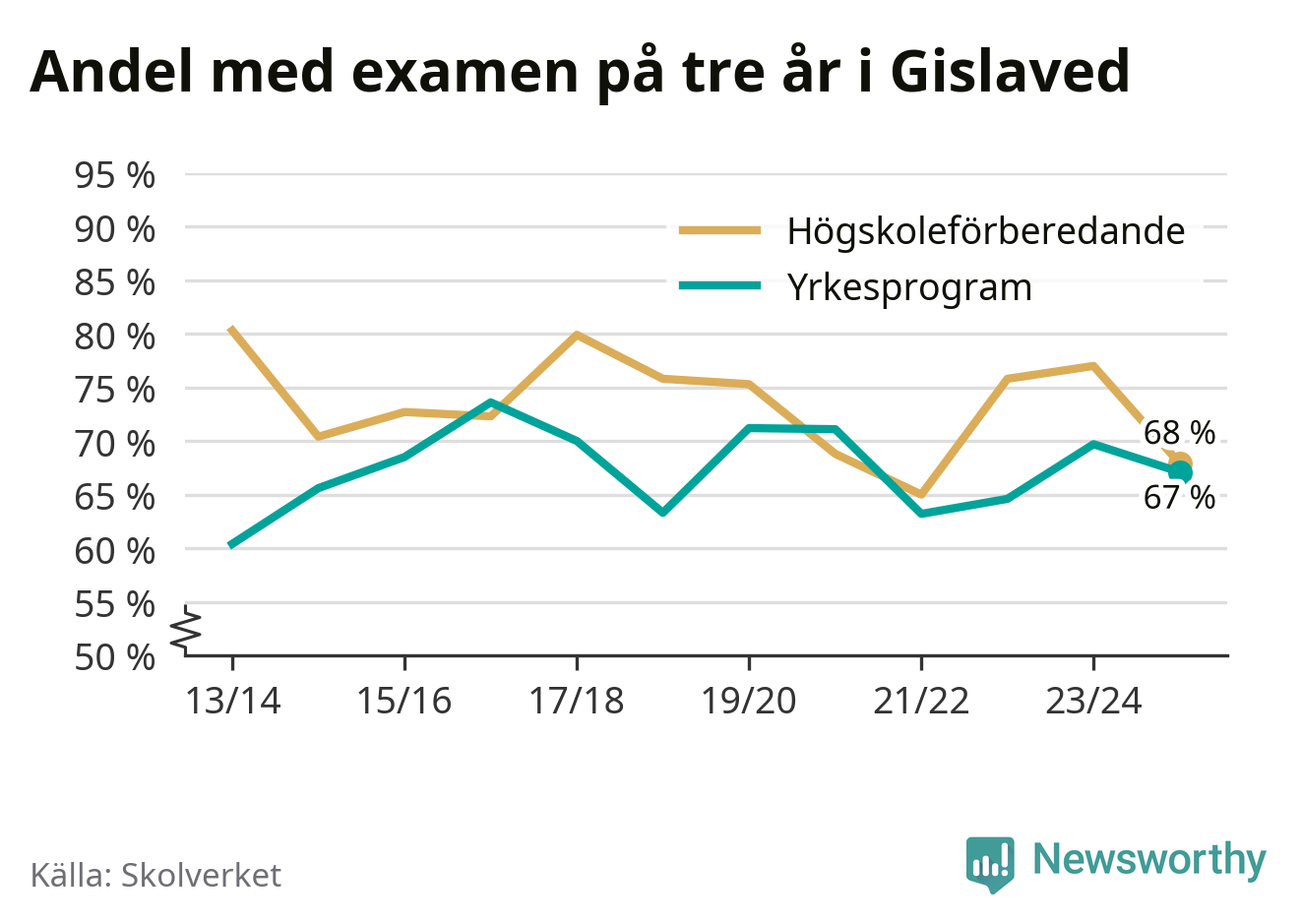Gislaveds gymnasium NEO-sektorGislaved65 % (+1 %)67 % (−10 %)