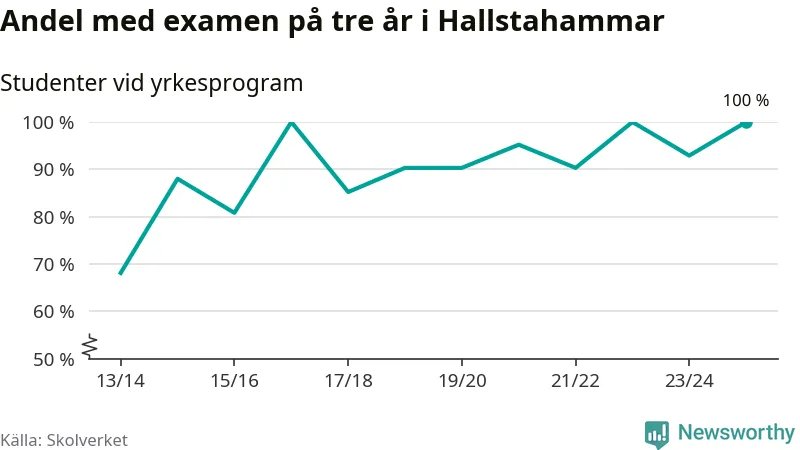 När eleverna på de yrkesförberedande programmen på Ridsportsgymnasiet i Hallstahammar sprang ut i våras gjorde alla det med en avklarad gymnasieexamen på tre år. Det är sju procentenheter fler än året innan.
