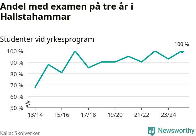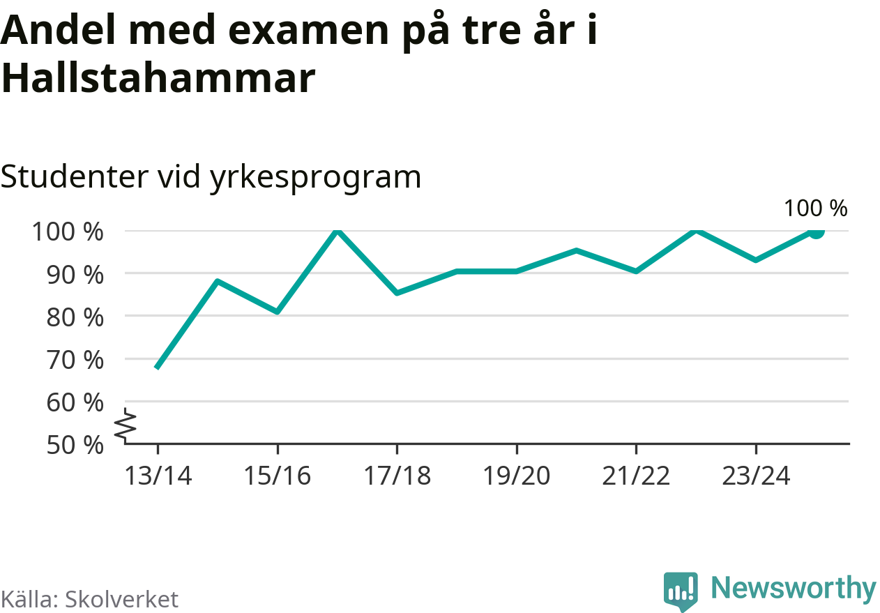 Alla 26 elever som började på Ridsportsgymnasiet 2022/23 klarade alltså examen på tre år i våras. Det är ganska ovanligt, i hela landet var det bara 48 skolenheter där alla yrkeselever klarade examen, medan alla elever på högskoleförberedande program fick examen på totalt tio skolenheter.