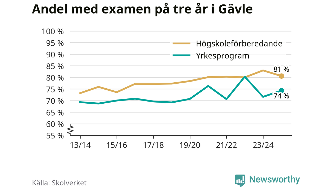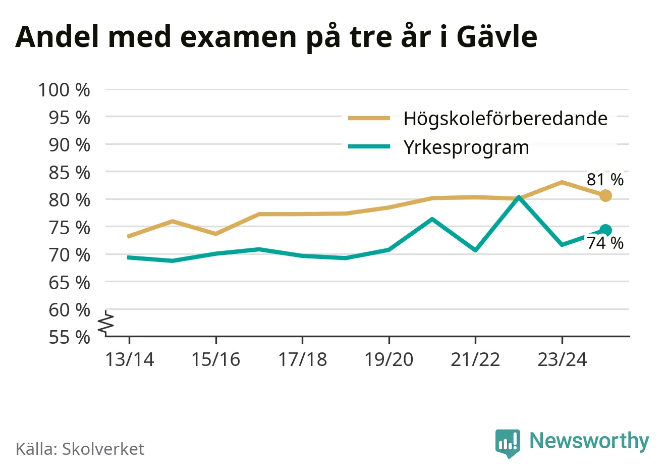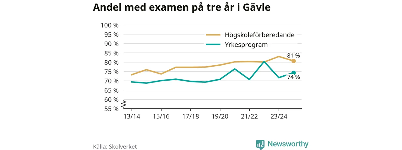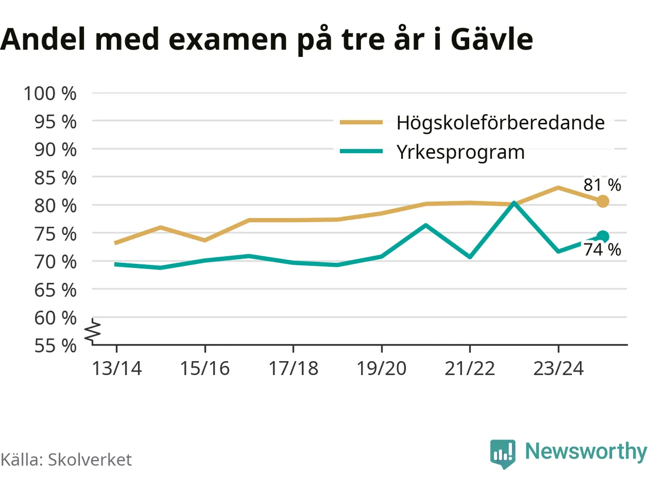 Precis som i riket som helhet ökade andelen som klarade gymnasieexamen från yrkesprogram på tre år i Gävle. Här är resultaten – skola för skola.
