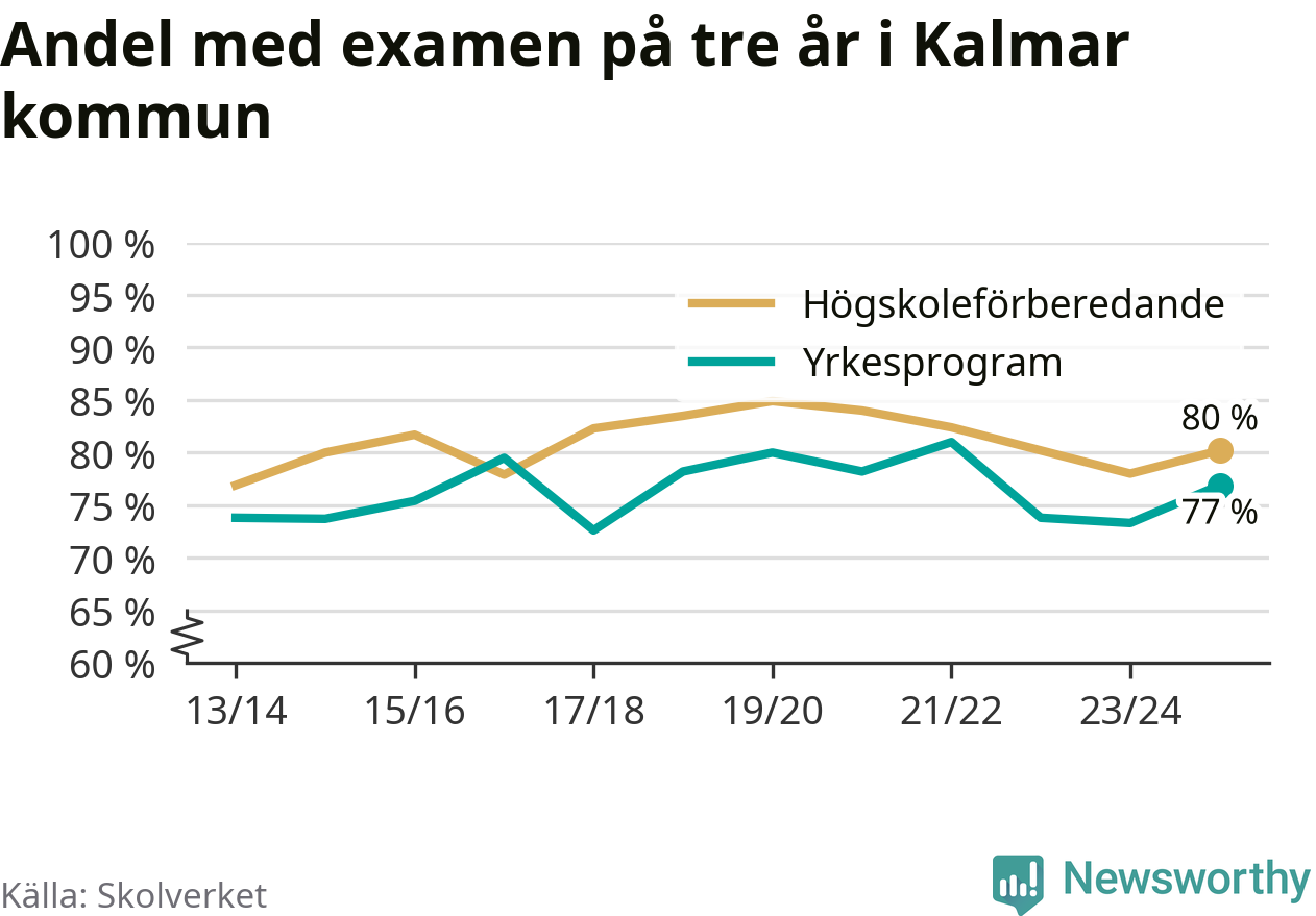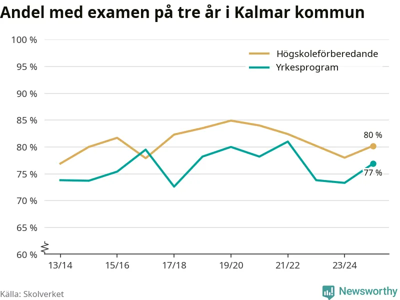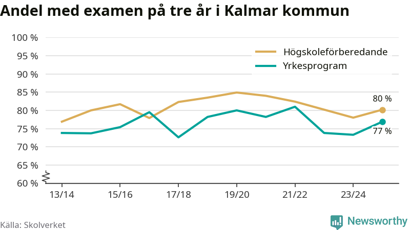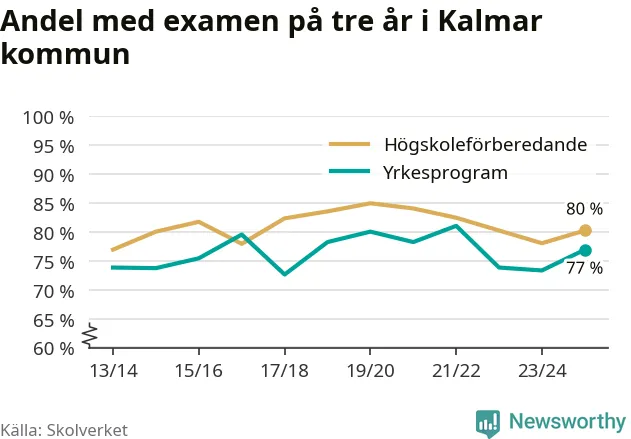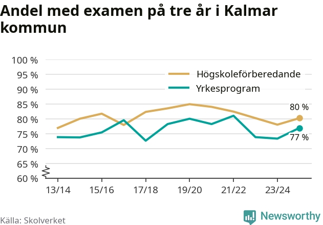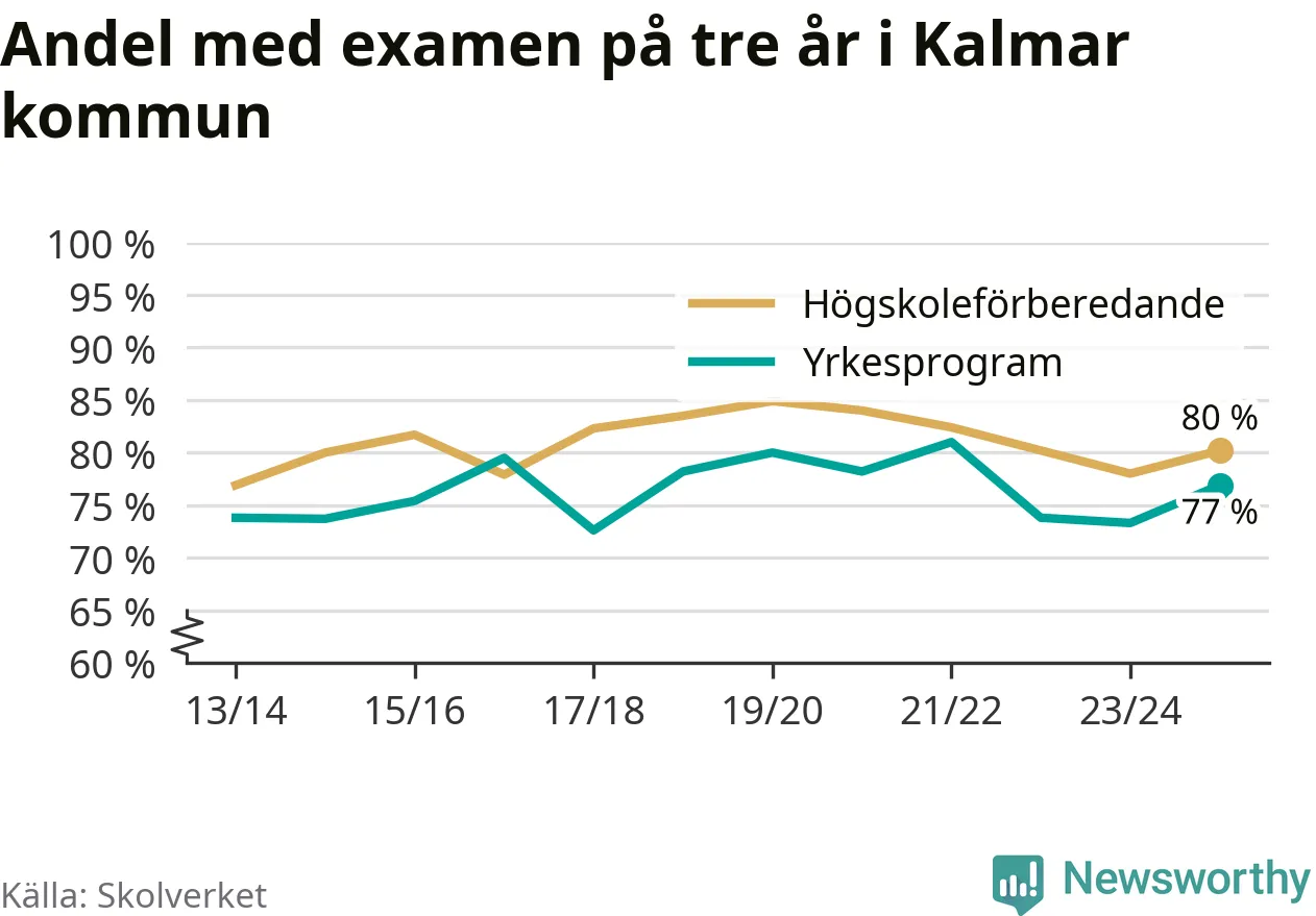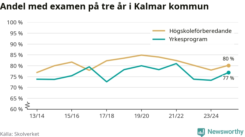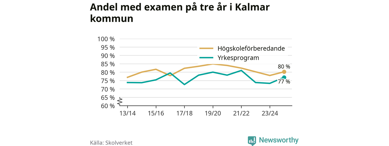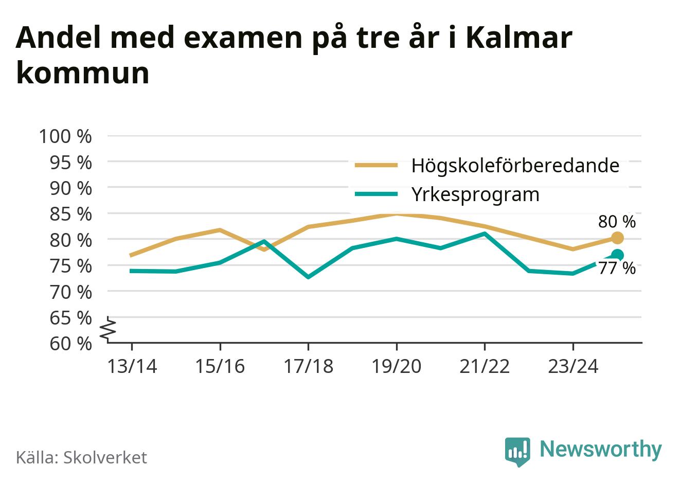 Andel elever med gymnasieexamen på högskoleförberedande program i Kalmar län 2024/25