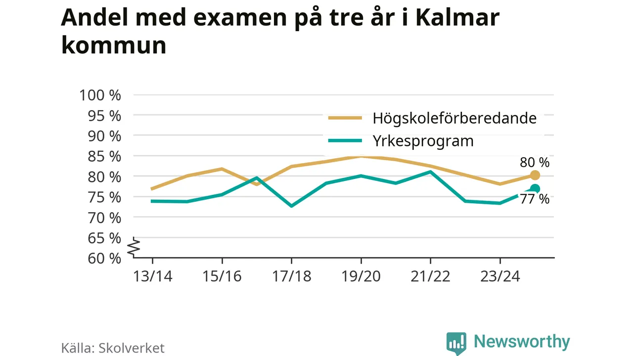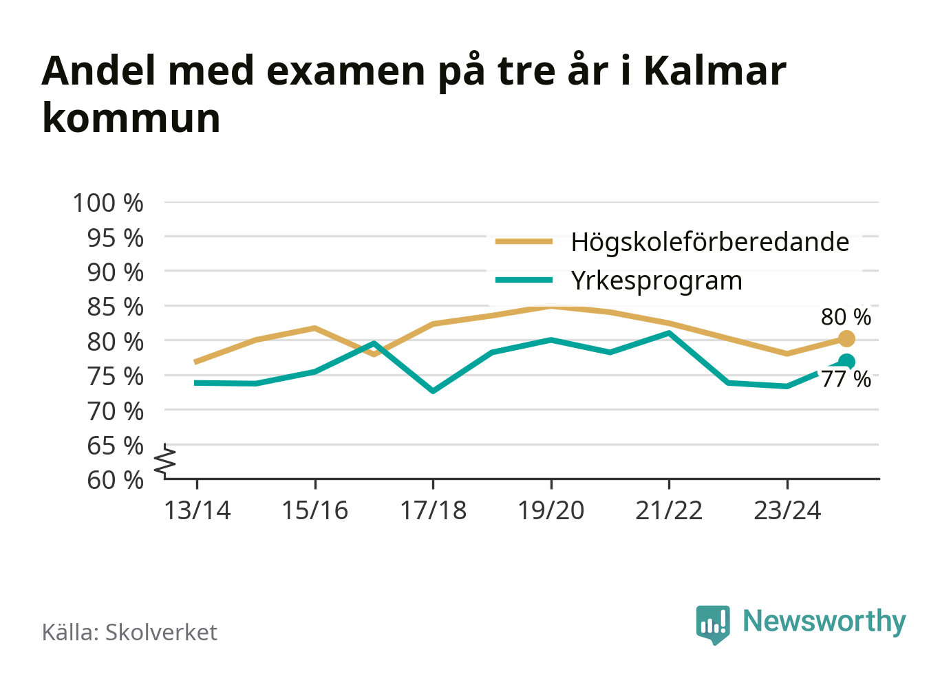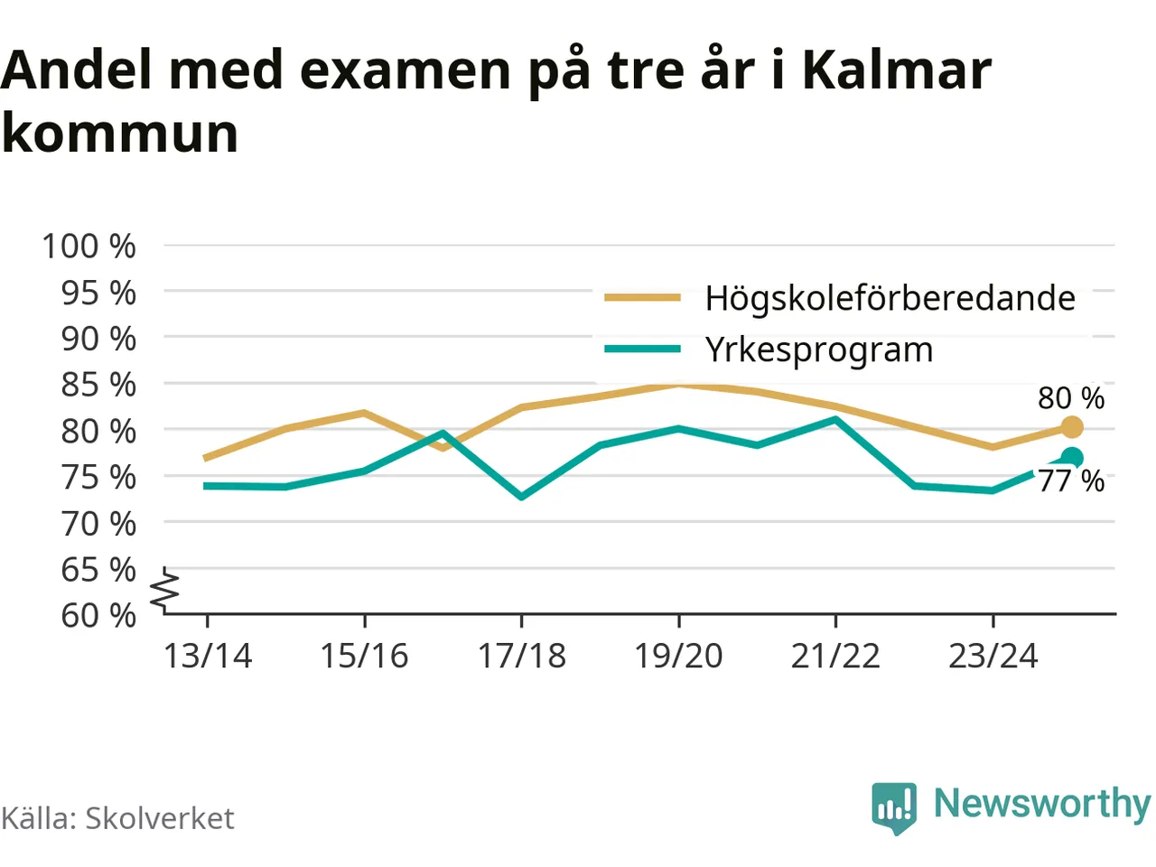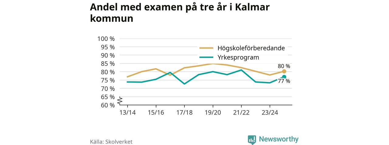 Högst andel som klarade examen i Kalmar kommun, de nationella programmen sammantaget, fanns på SYAB Transportgymnasium, där eleverna läser på fordons- och transportprogrammet. Där klarade 91 procent av de 34 elever som började gymnasiet 2022/23 examen i våras. Det är en högre siffra än i riket som helhet.