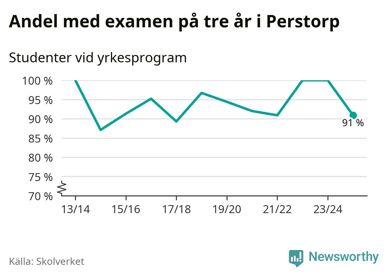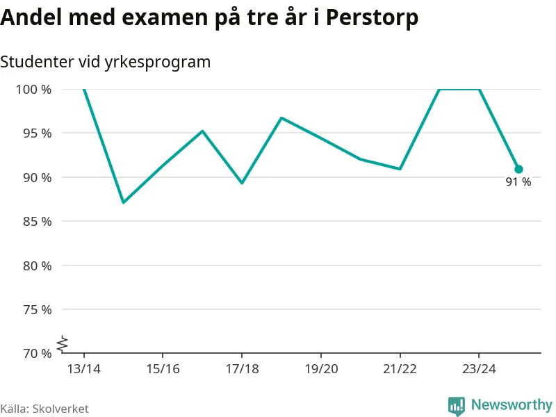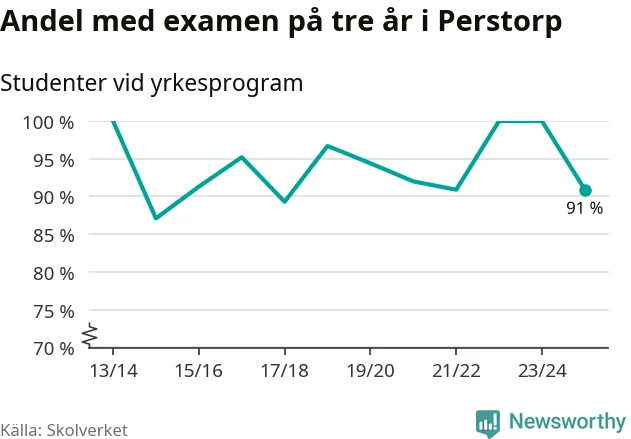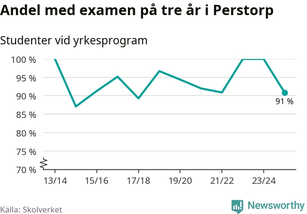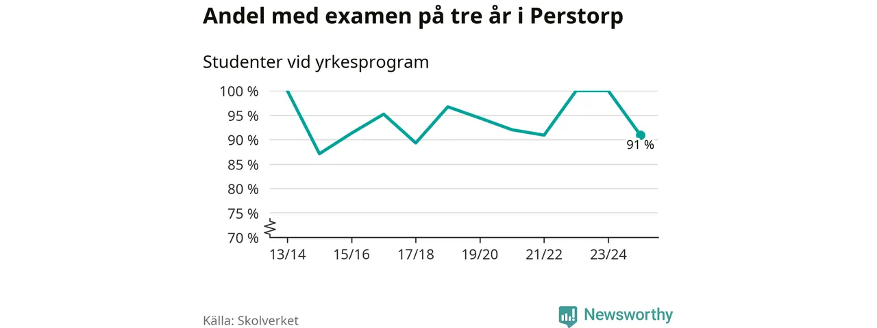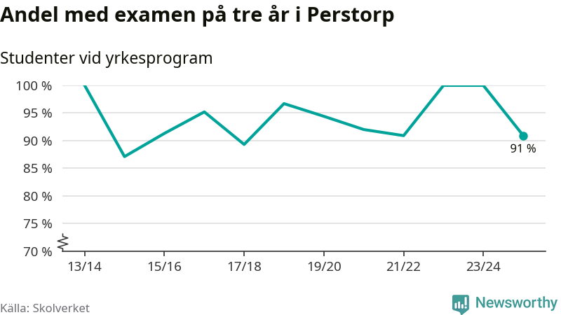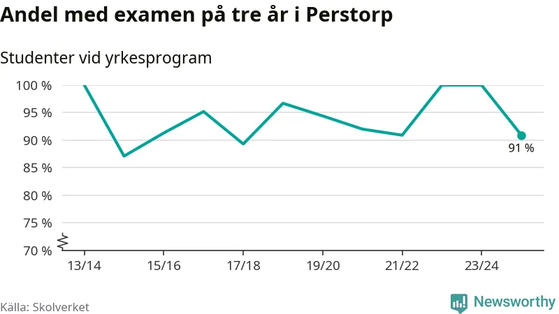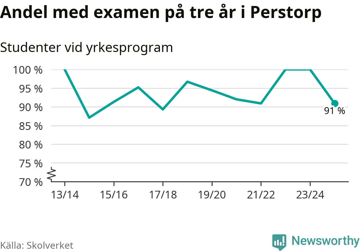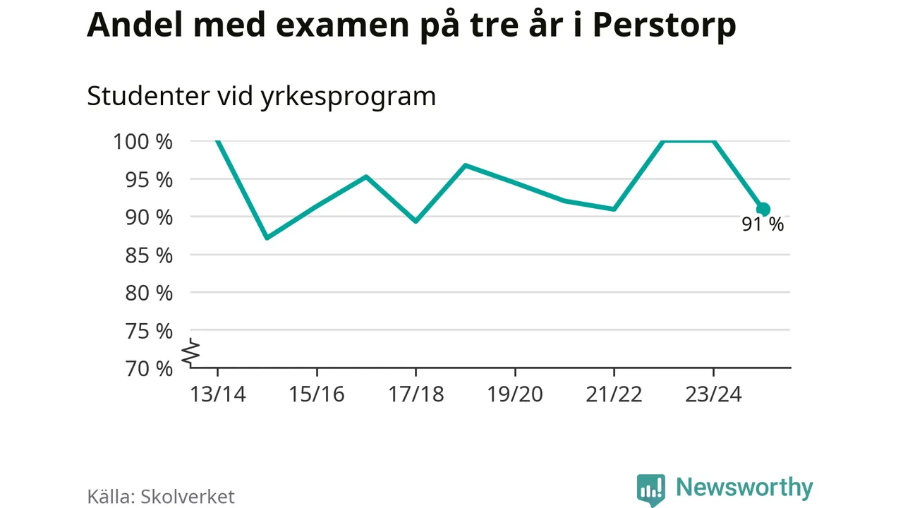Medan andelen elever som klarade gymnasieexamen på yrkesprogram på tre år ökade i riket som helhet, minskade andelen i Perstorp något. Det visar Skolverkets senaste statistik.