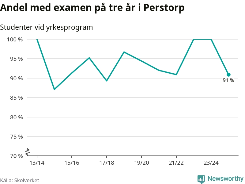 När eleverna på de yrkesförberedande programmen på Perstorp Tekniska Gymnasium sprang ut i våras hade 91 procent klarat gymnasieexamen på tre år. Det är nio procentenheter färre än året innan.