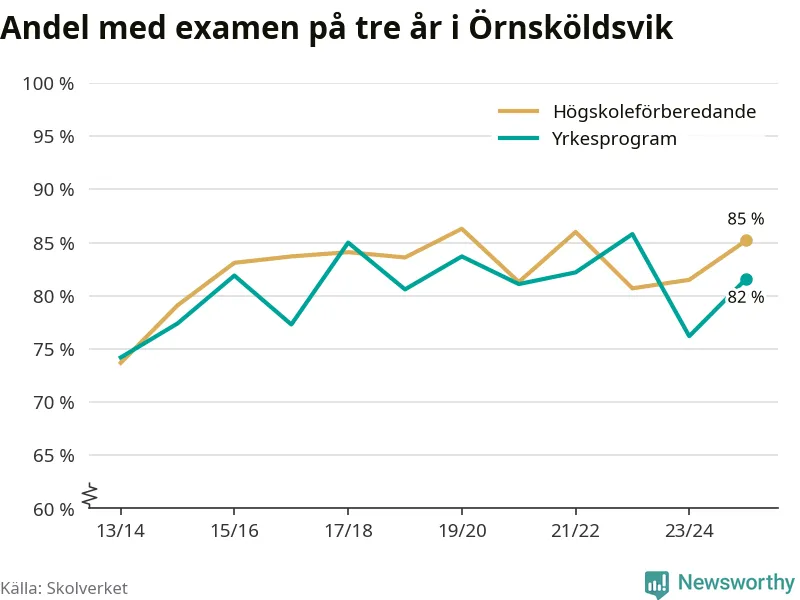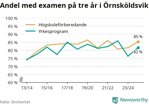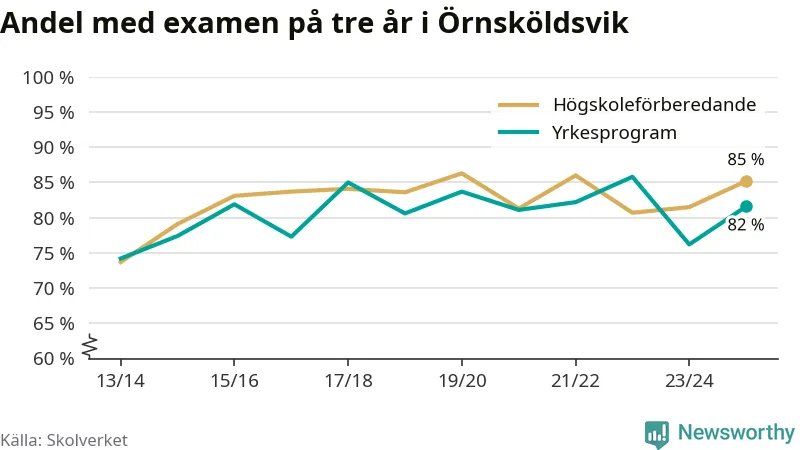 När eleverna på de yrkesförberedande programmen i Örnsköldsviks kommun sprang ut i våras hade 82 procent klarat gymnasieexamen på tre år. Det är sex procentenheter fler än året innan.