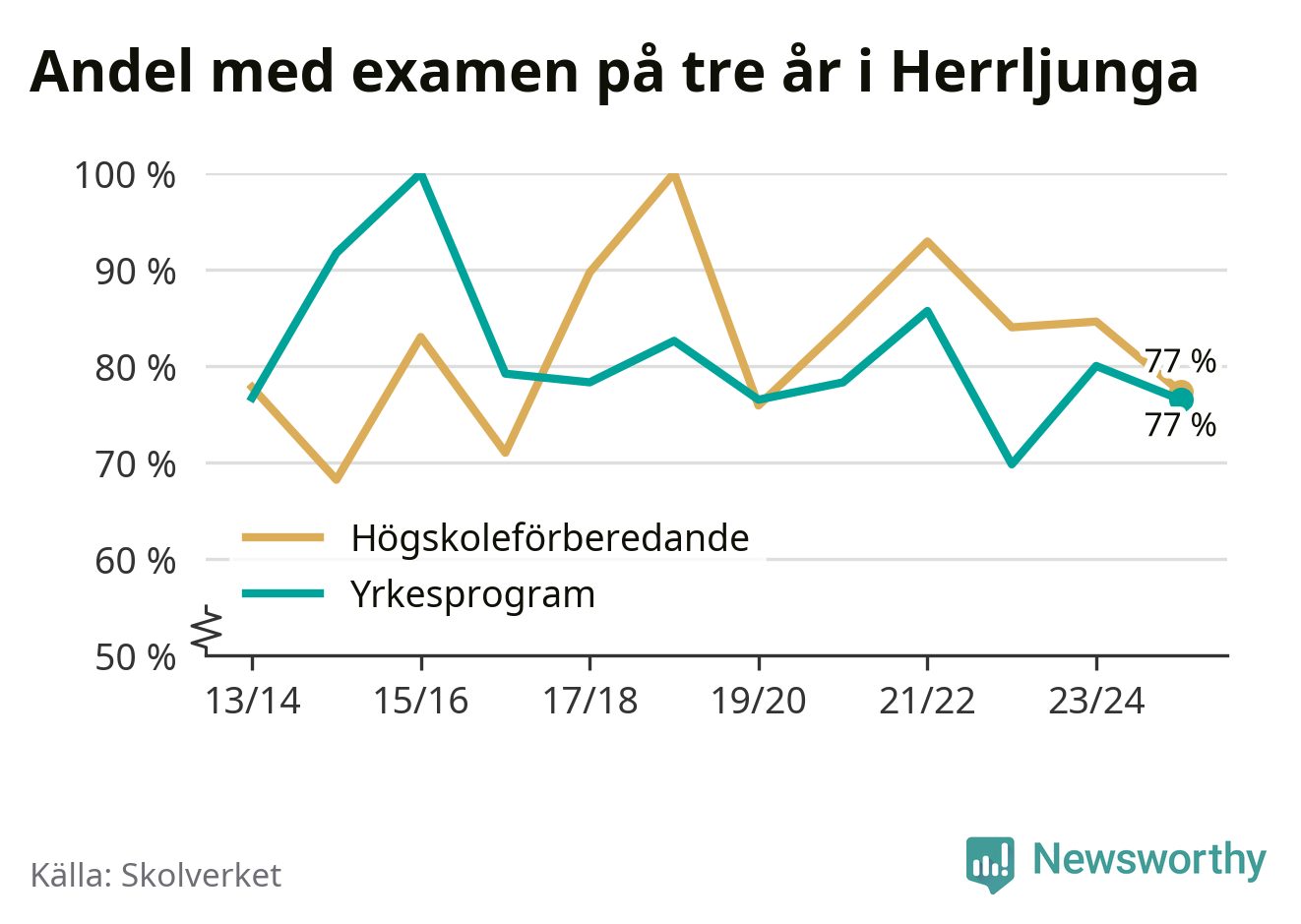| Kunskapskällan | Herrljunga | 77 % (−7 %) | 89 % (+1 %) |