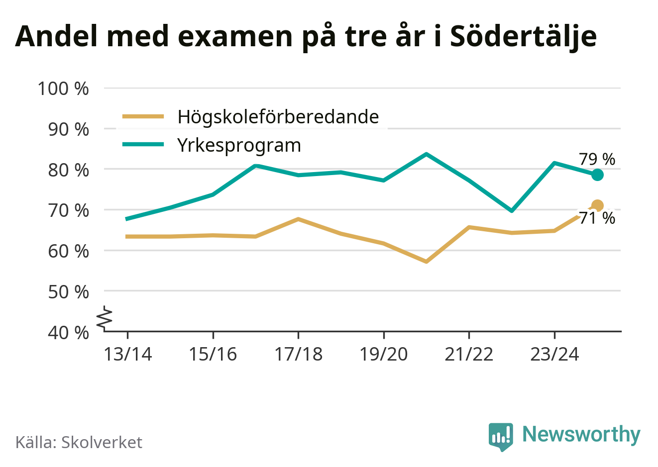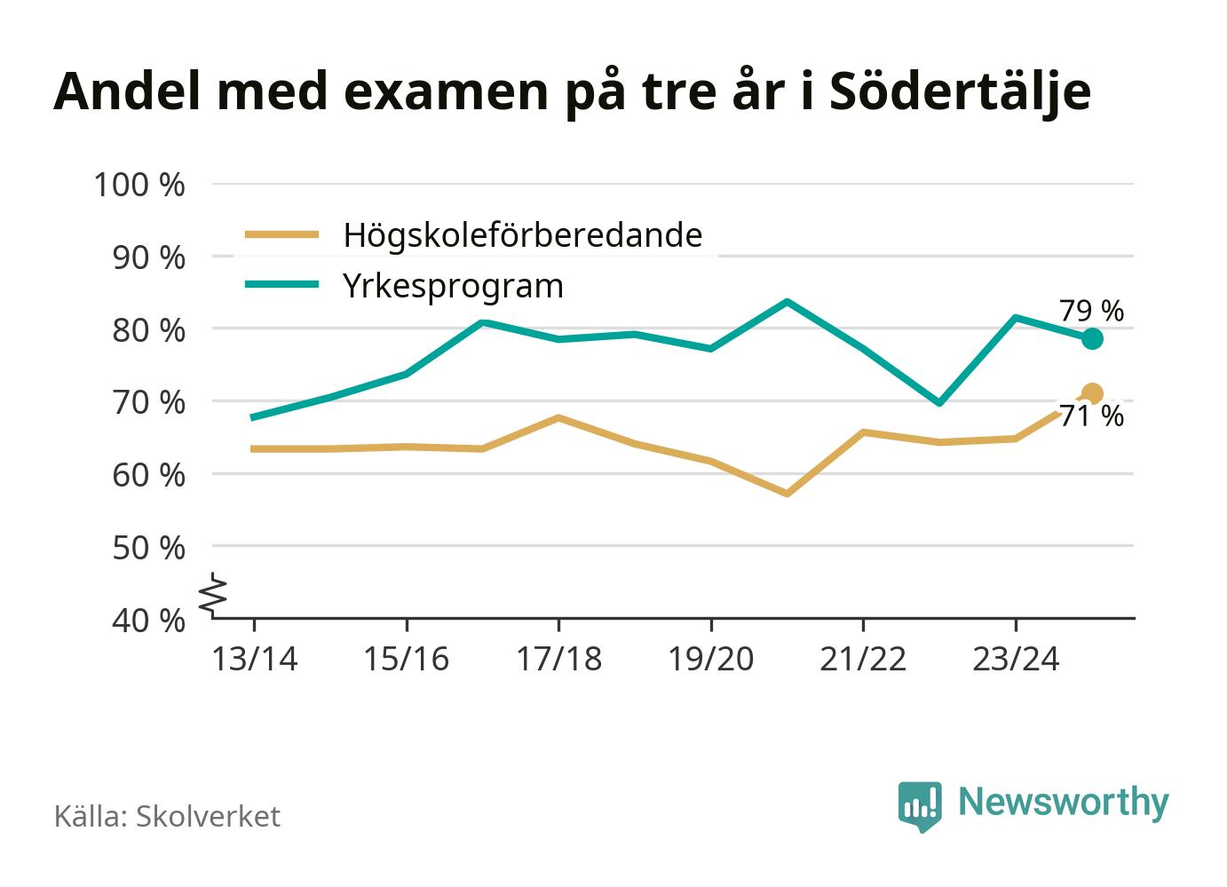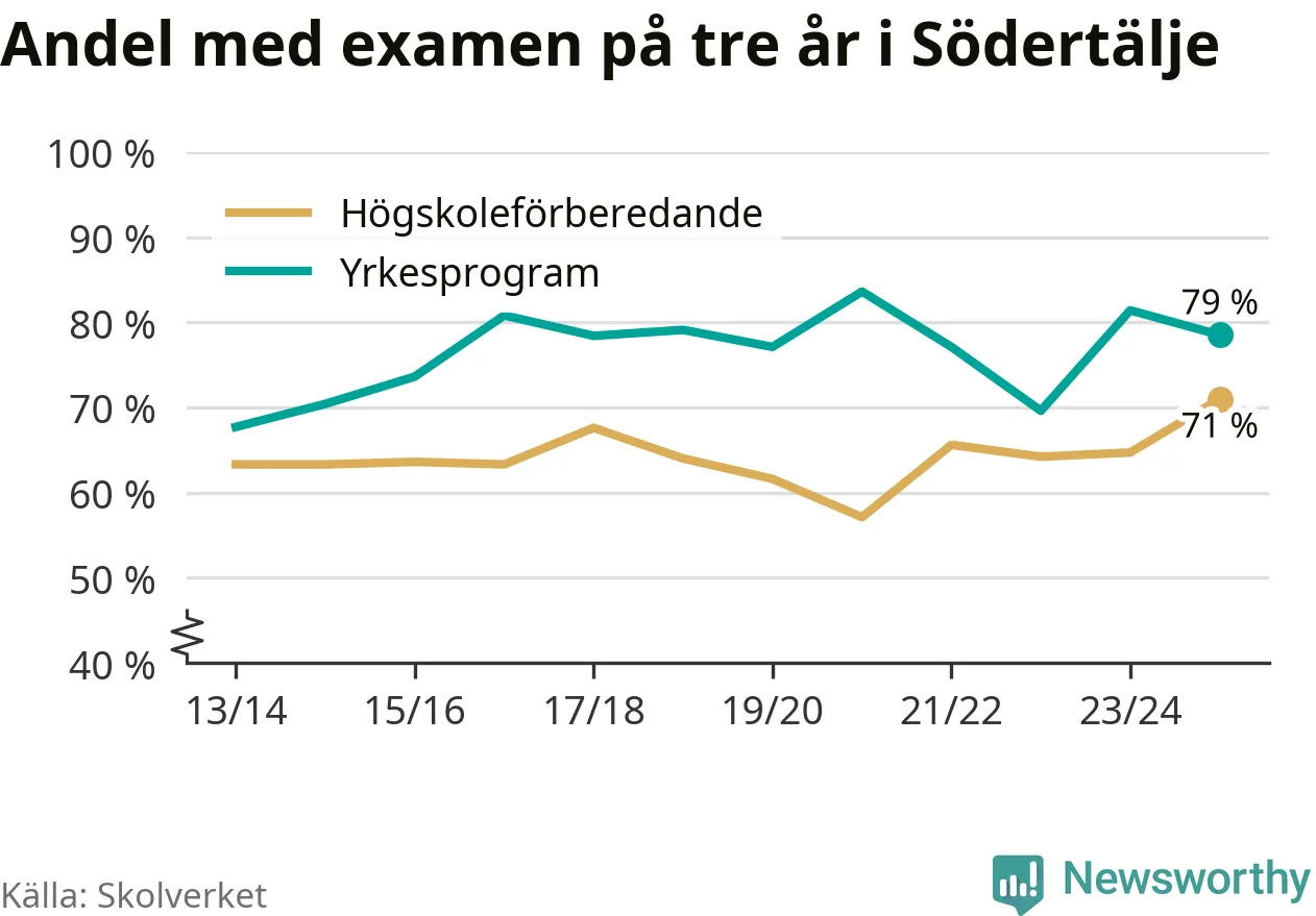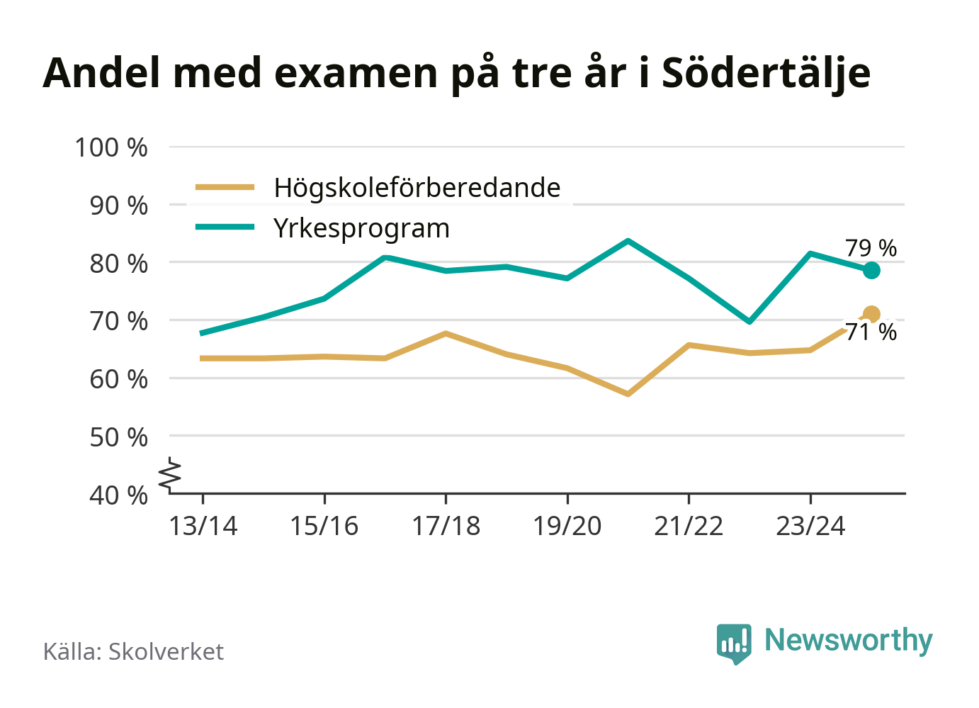 Inte sedan åtminstone läsåret 2013/14 har andelen elever som klarat gymnasieexamen på högskoleförberedande program varit högre i Södertälje. Det visar Skolverkets senaste statistik.