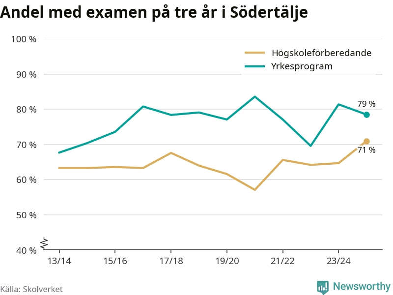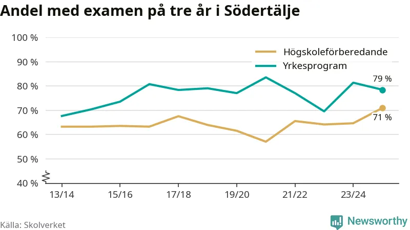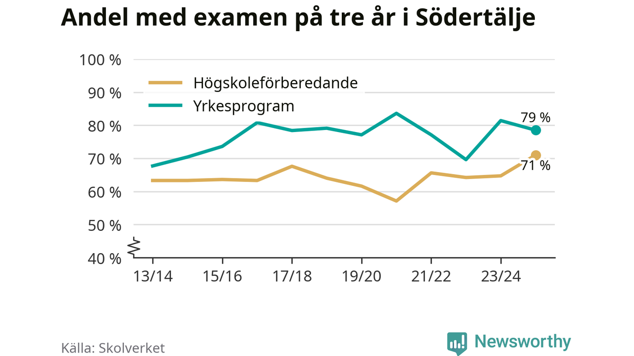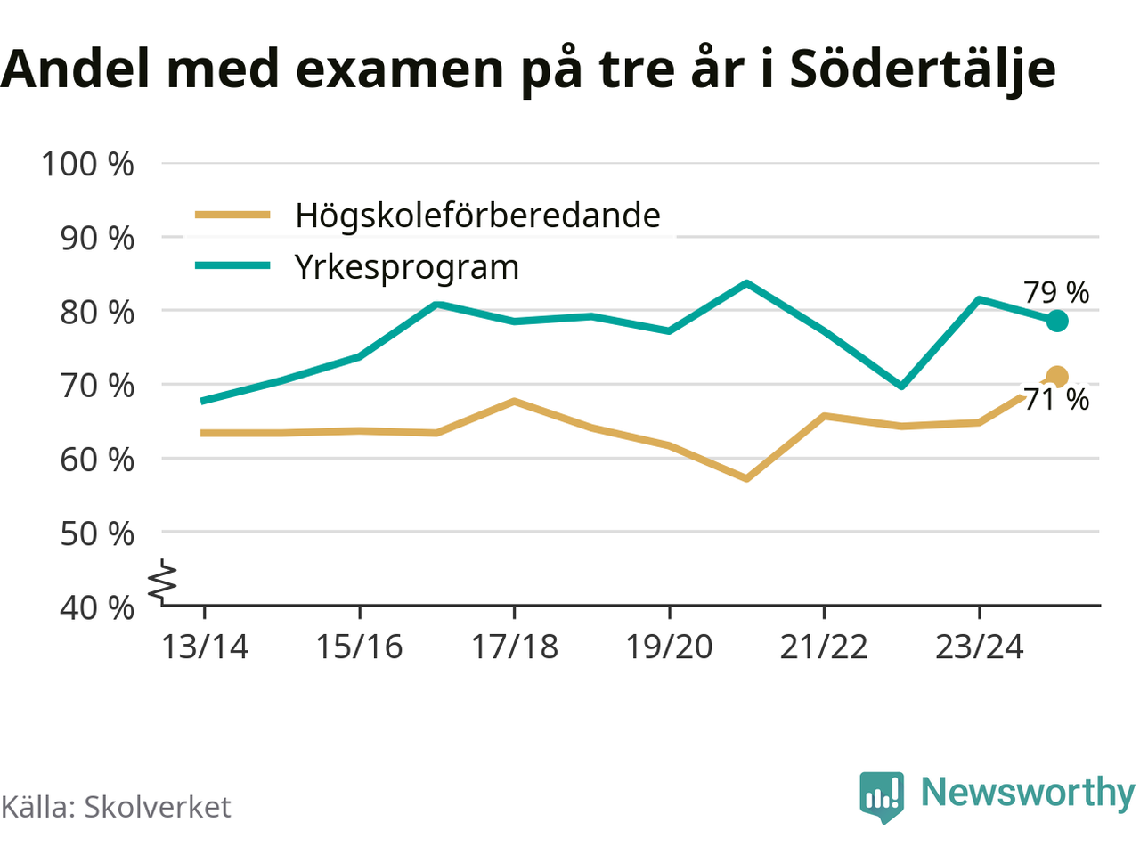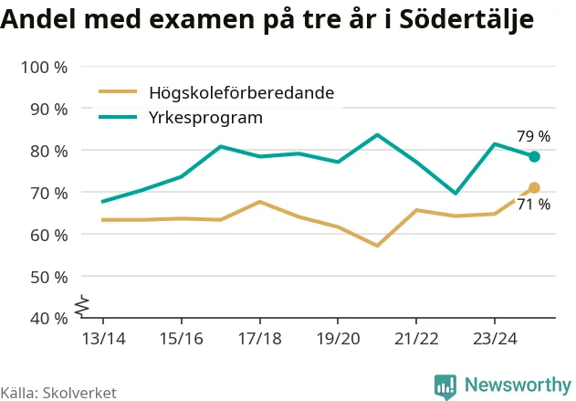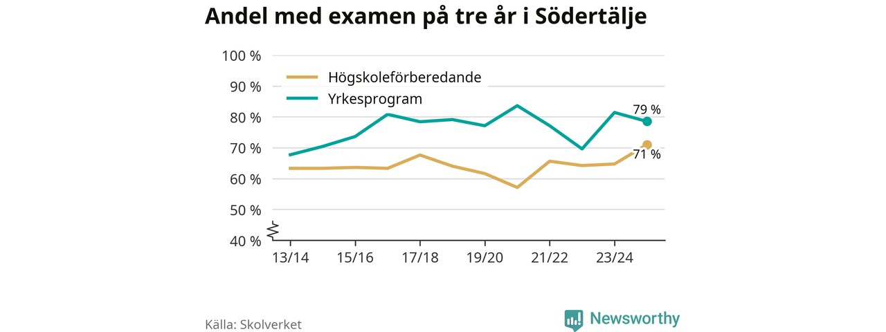 Inte sedan åtminstone läsåret 2013/14 har andelen elever som klarat gymnasieexamen på högskoleförberedande program varit högre i Södertälje. Det visar Skolverkets senaste statistik.