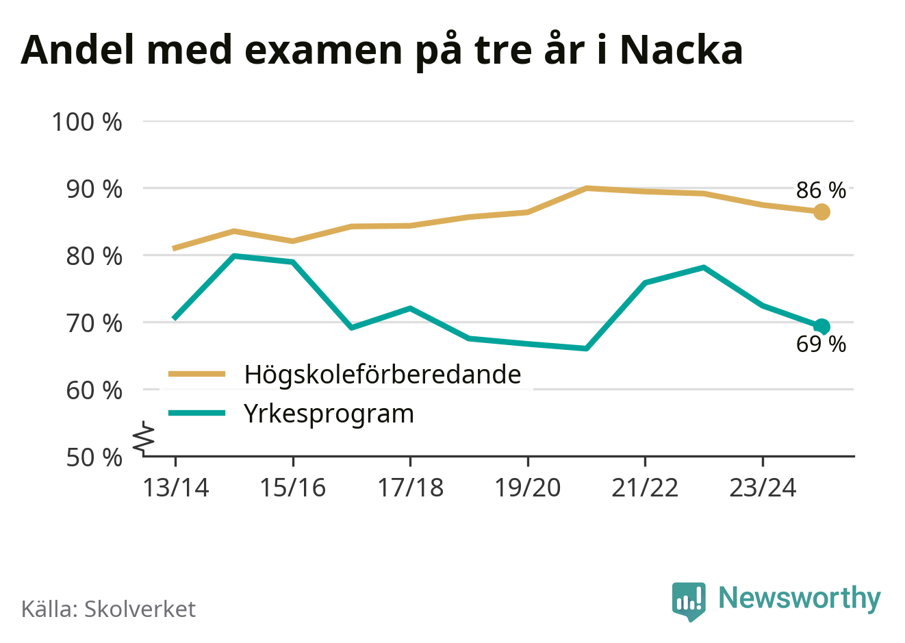 | Nacka Enskilda Gymnasium | Nacka | 91 % (+6 %) | 90 % (−3 %) |