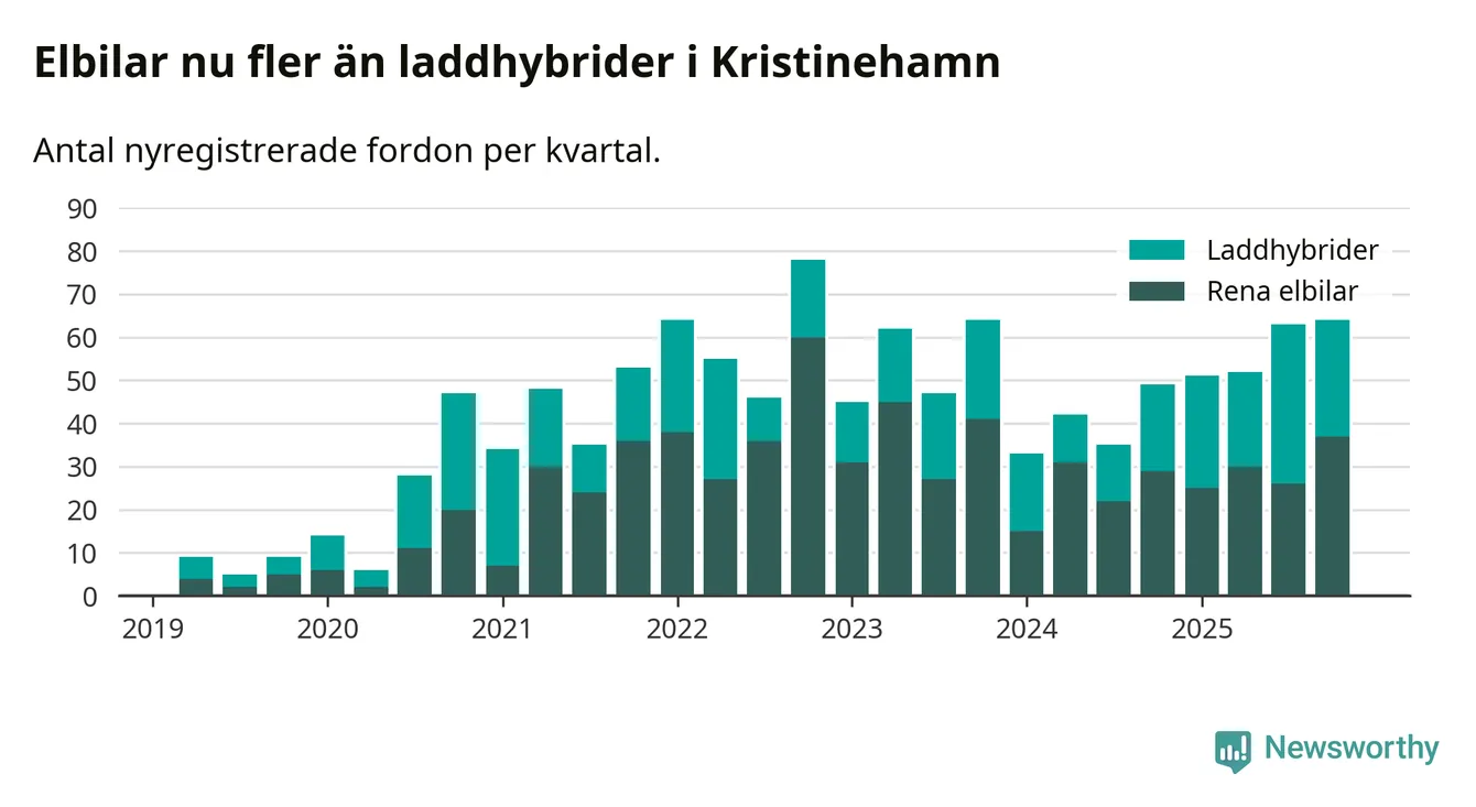 I Kristinehamn noterades ett nytt rekord under fjärde kvartalet. Aldrig tidigare har laddbara bilar utgjort en så stor del av alla nya bilar.