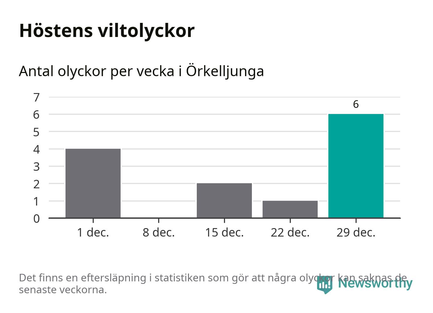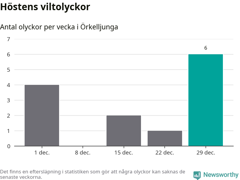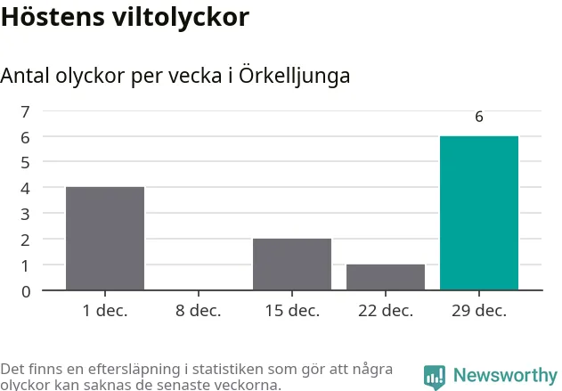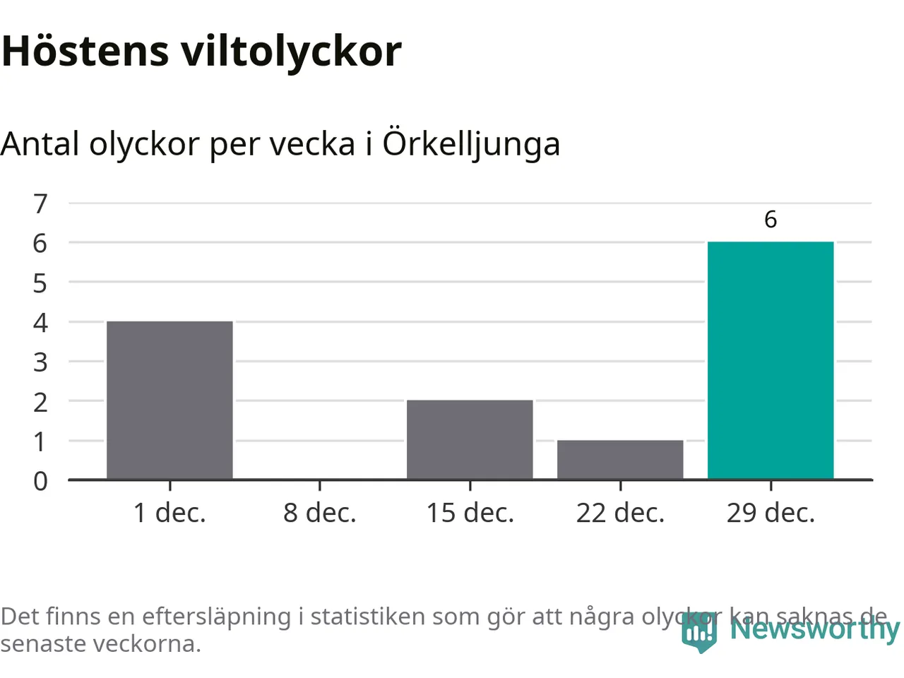 Under vecka 1 rapporterades nio viltolyckor in i Örkelljunga kommun. Det är det största antalet på en vecka den här vintern.