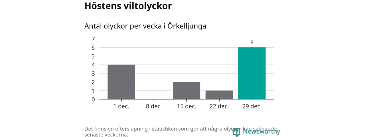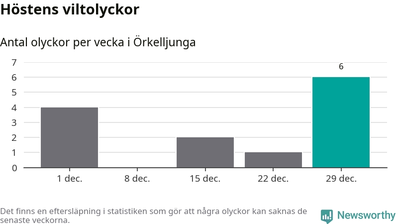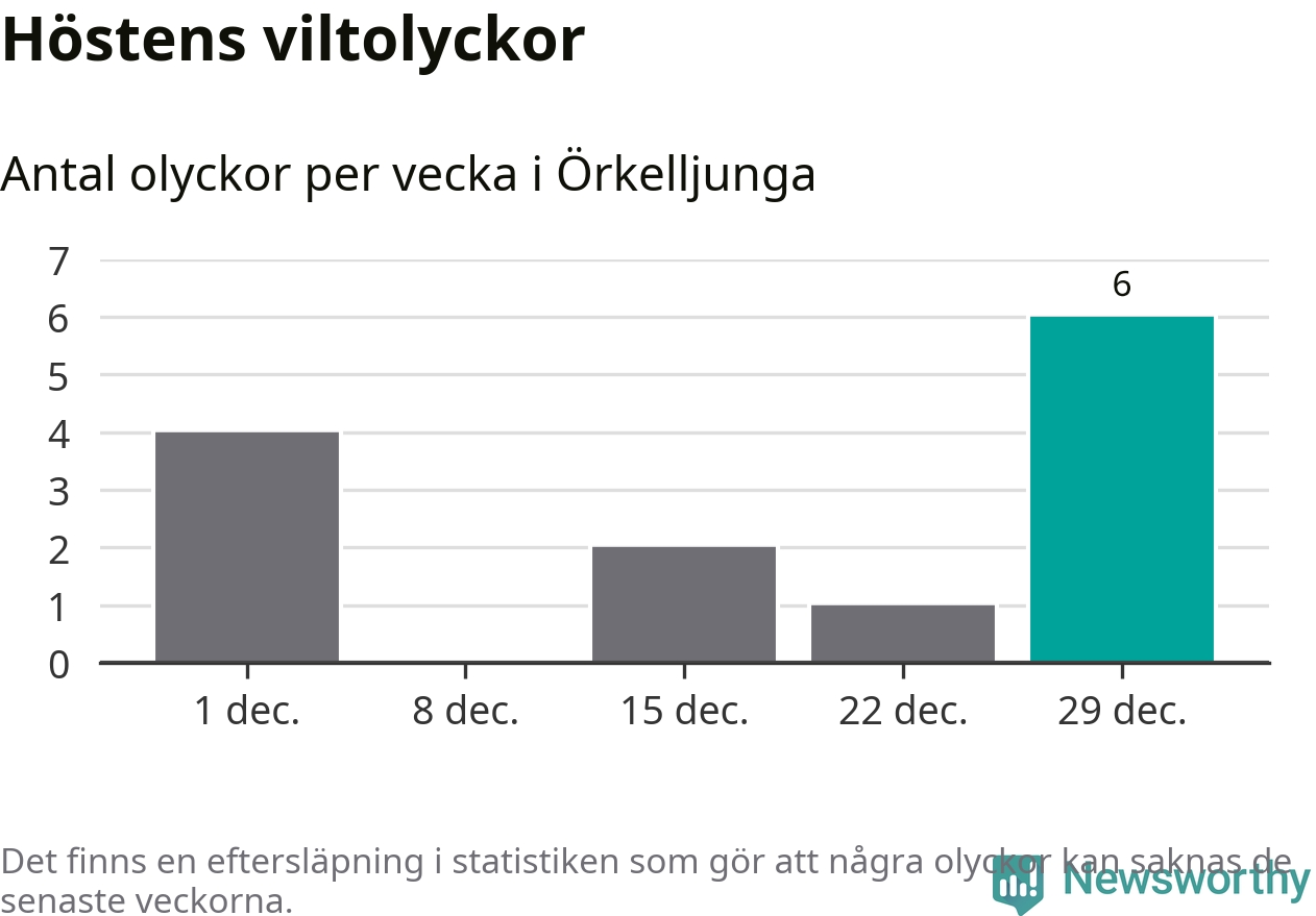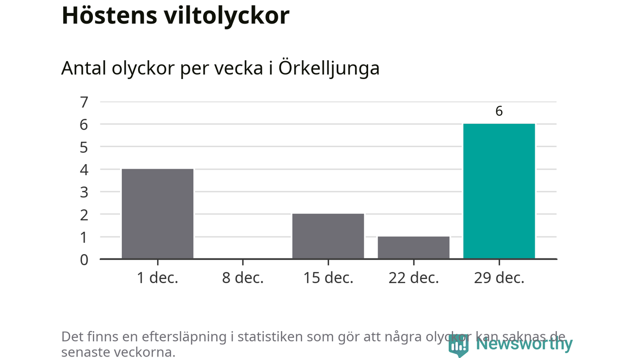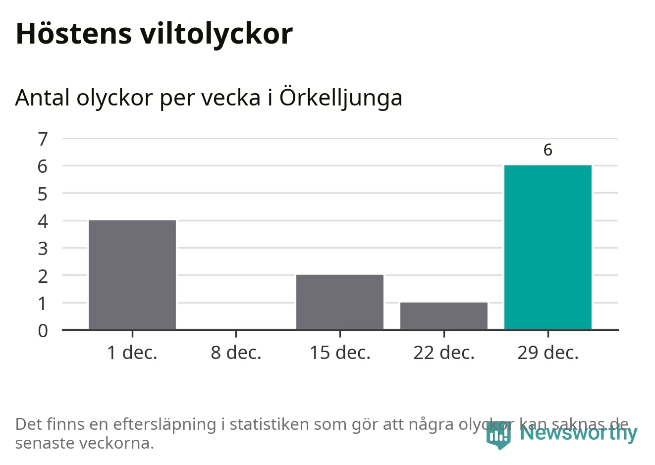 Under vecka 1 rapporterades nio viltolyckor in i Örkelljunga kommun. Det är det största antalet på en vecka den här vintern.