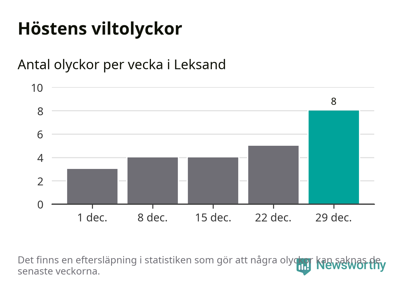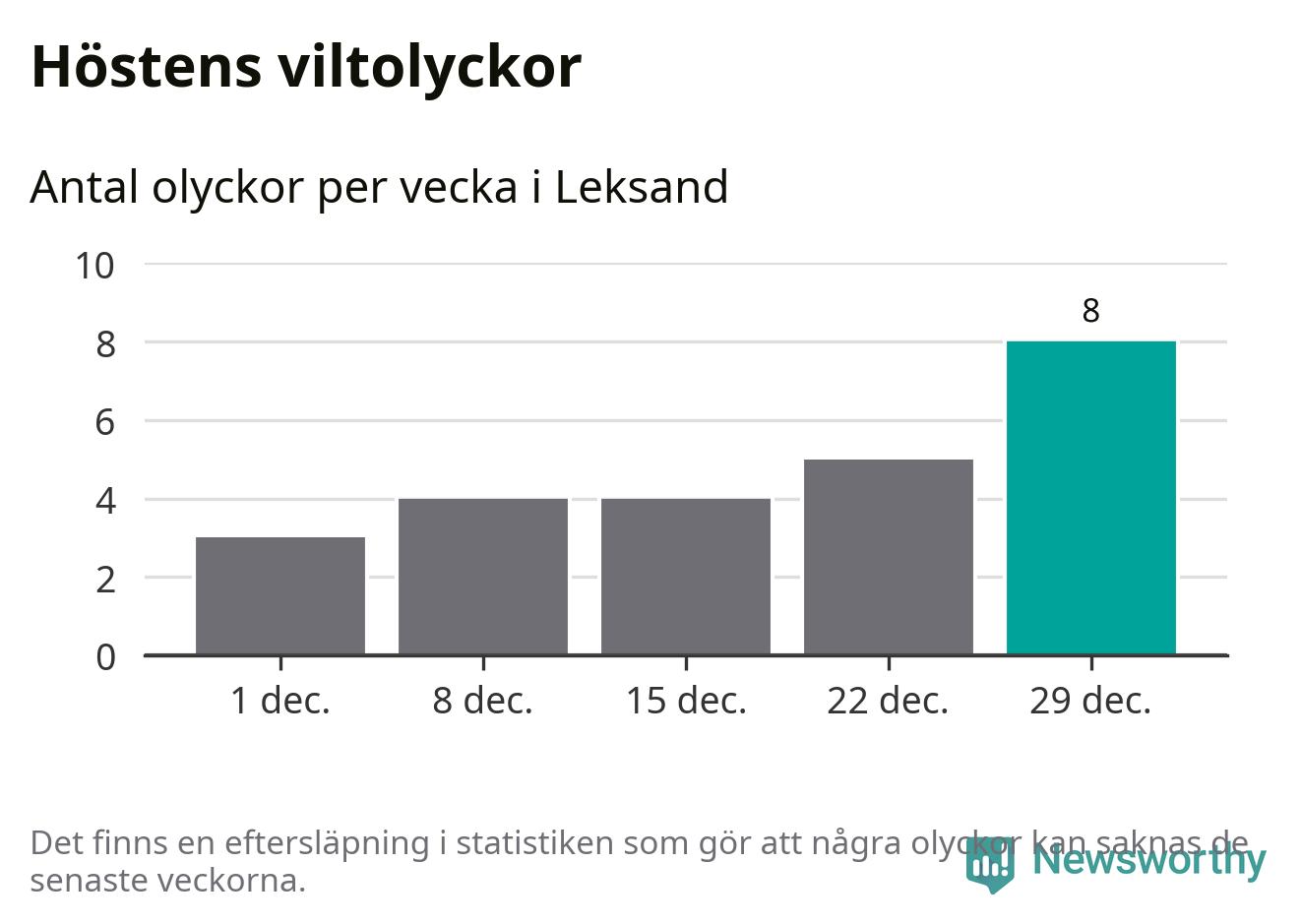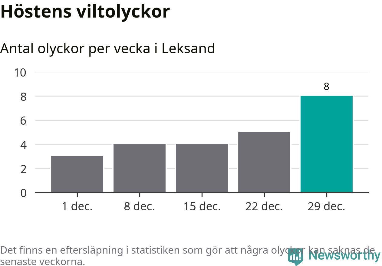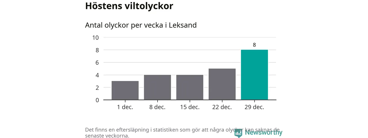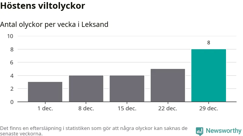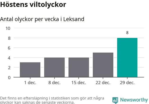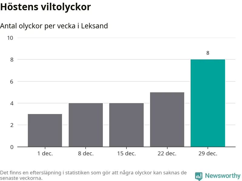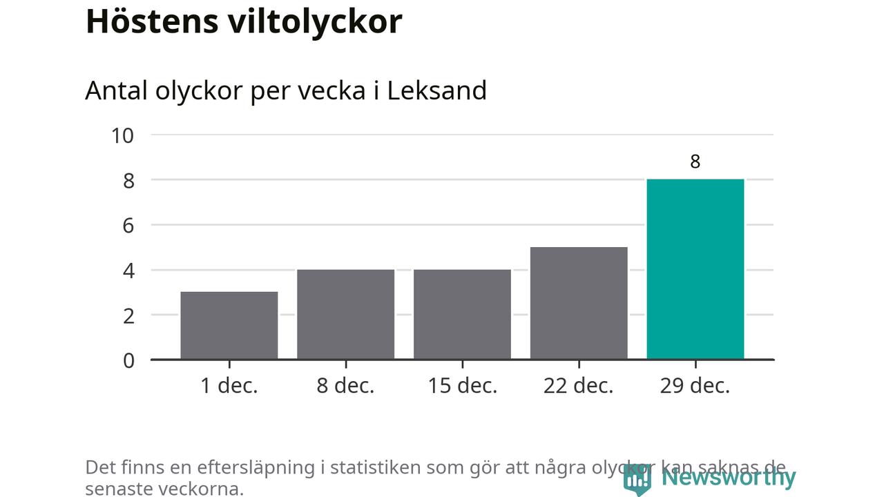 Under vecka 1 rapporterades tio viltolyckor in i Leksands kommun. Det är det största antalet på en vecka den här vintern.
