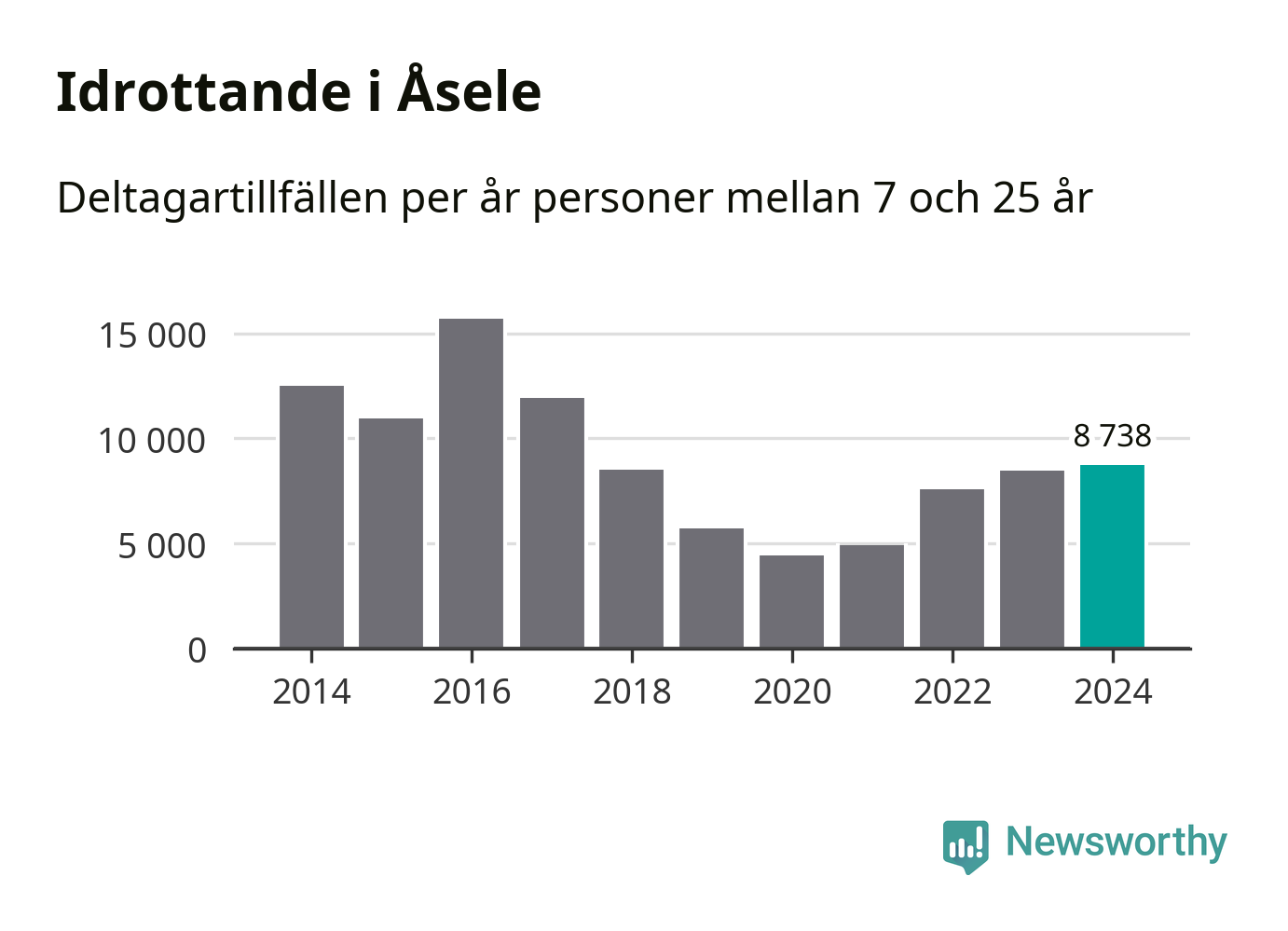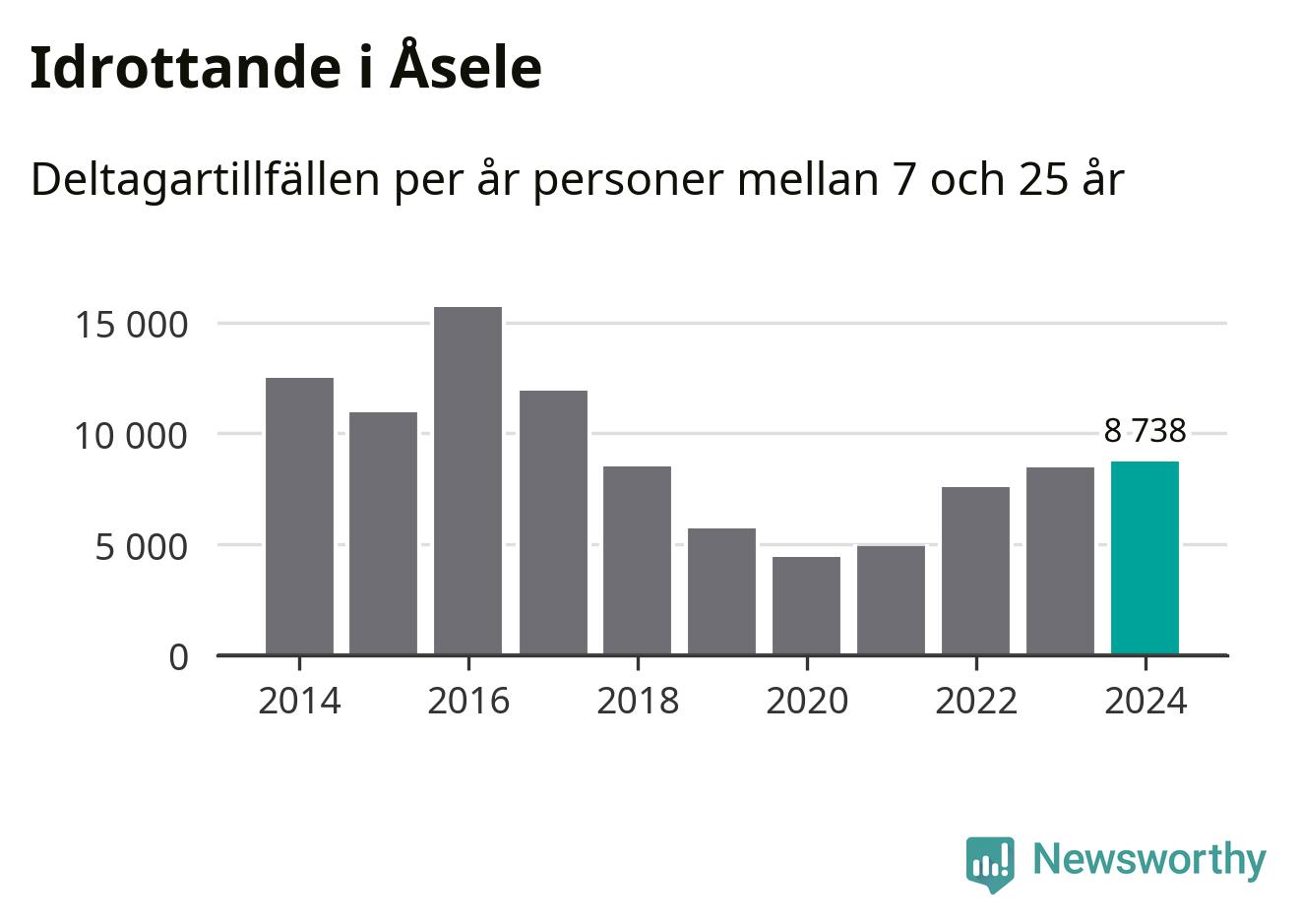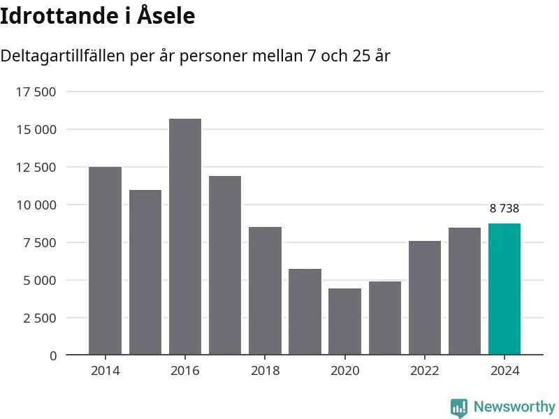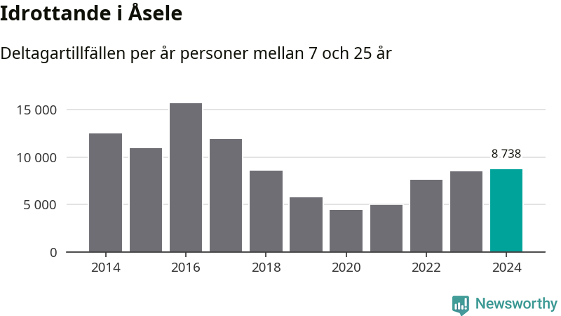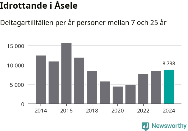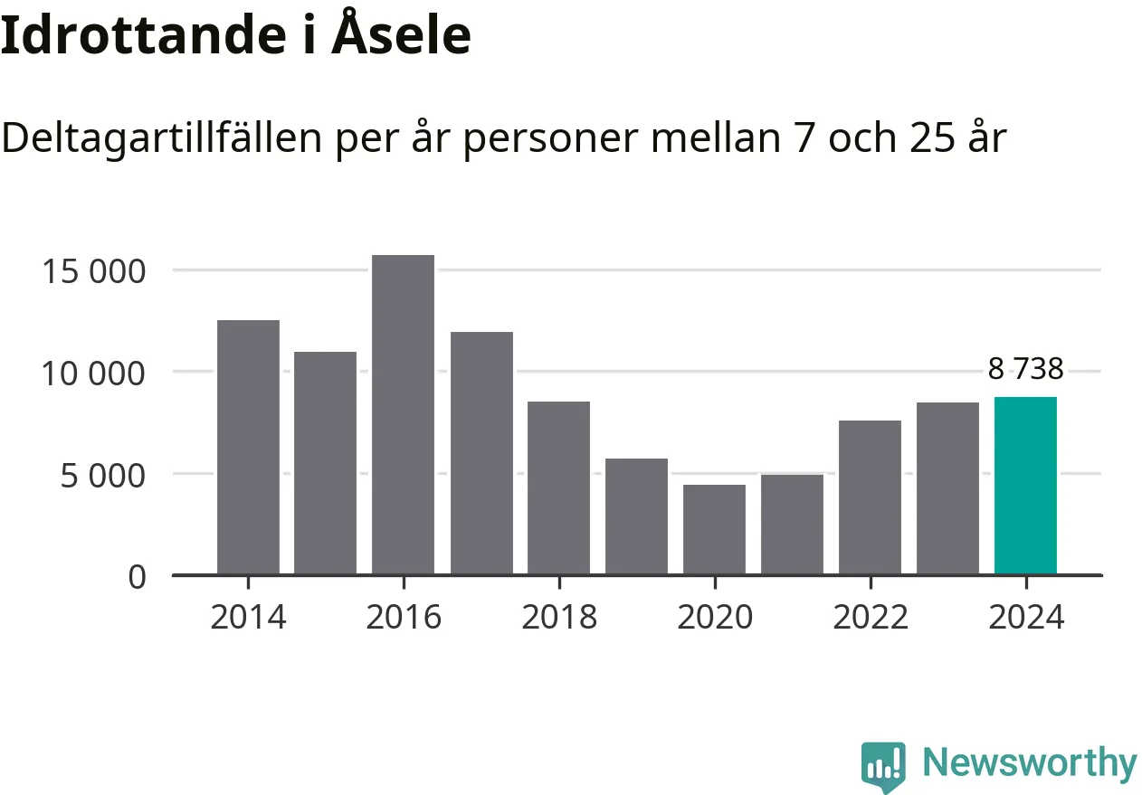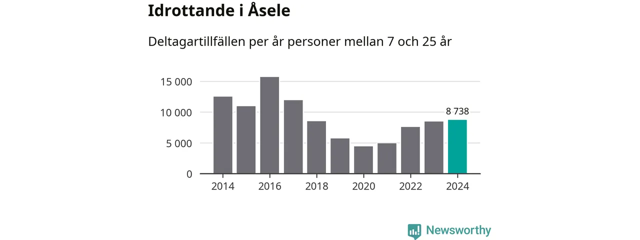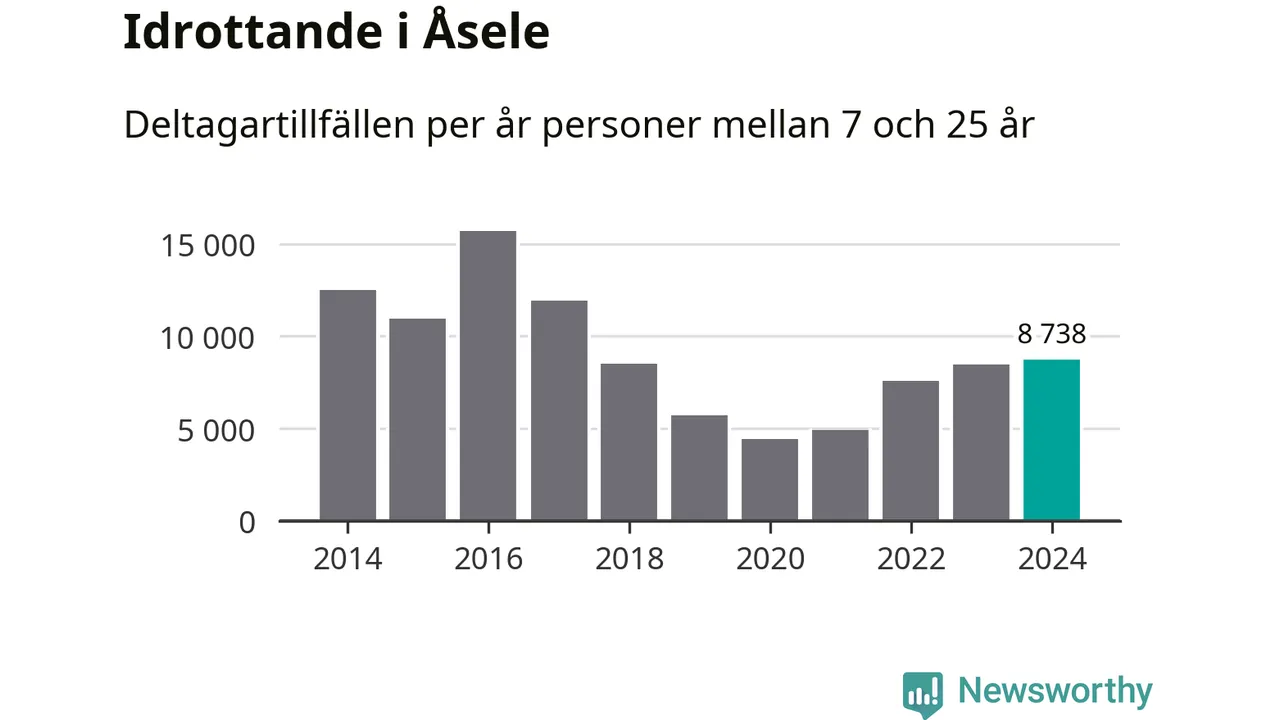 För fjärde året i rad ökade aktiviteten inom ungdomsidrotten i Åsele under 2024. Det visar nya siffror om utbetalt Lok-stöd, som delas ut till föreningar anslutna till Riksidrottsförbundet specialidrottsförbund. Stödet riktar sig till föreningar som bedriver verksamhet för deltagare i åldern 7-25 år. Under året rapporterade föreningarna i Åsele knappt 9 000 deltagartillfällen, vilket är en ökning med tre procent jämfört med 2023 och den högsta siffran i kommunen sedan 2017. I riket som helhet ökade antalet deltagartillfällen med fem procent under 2024.
