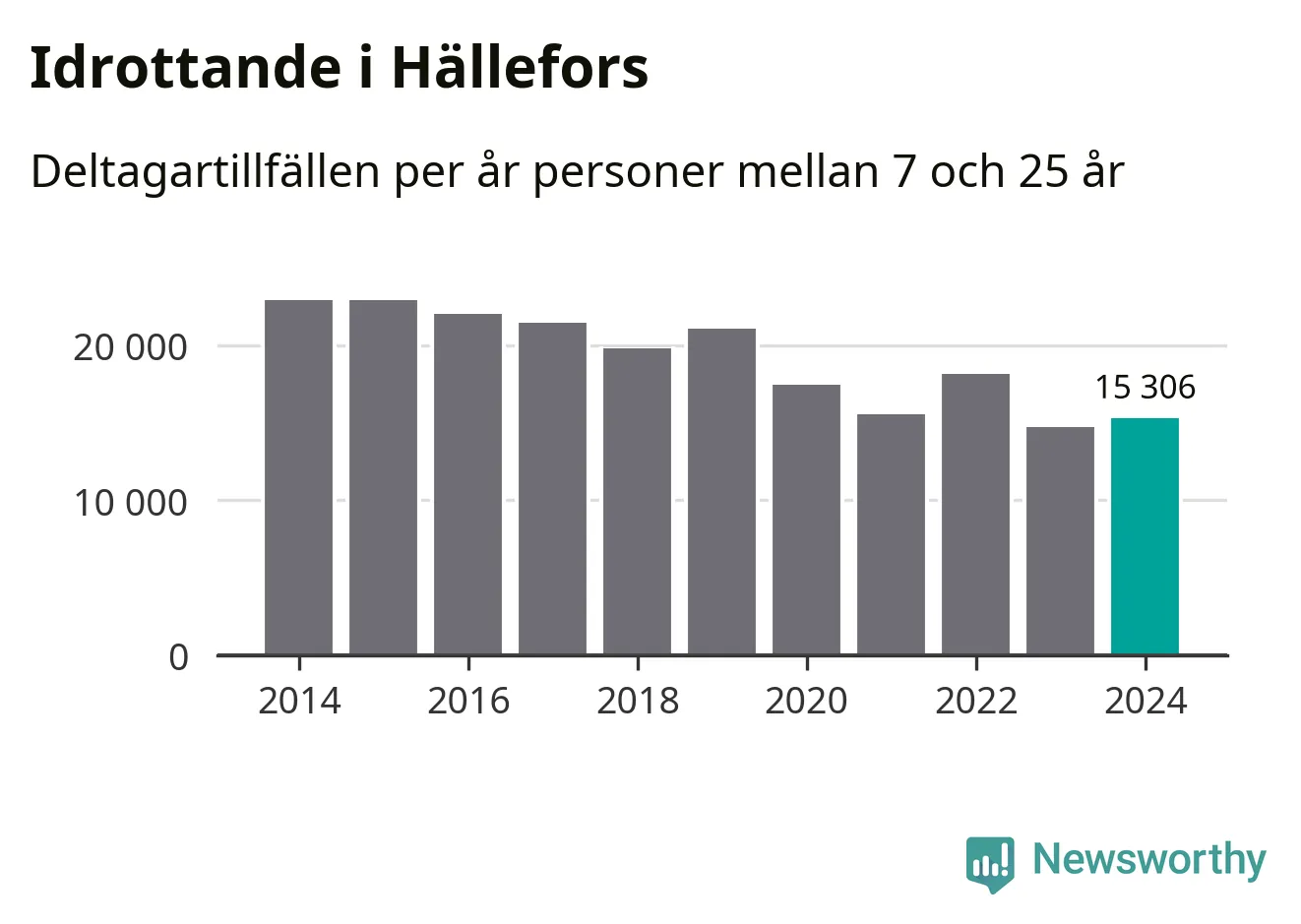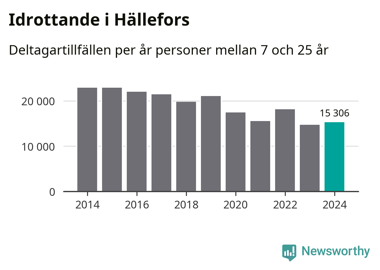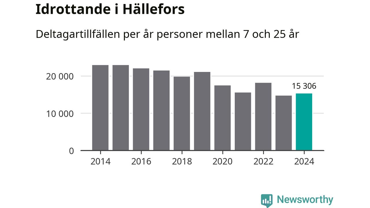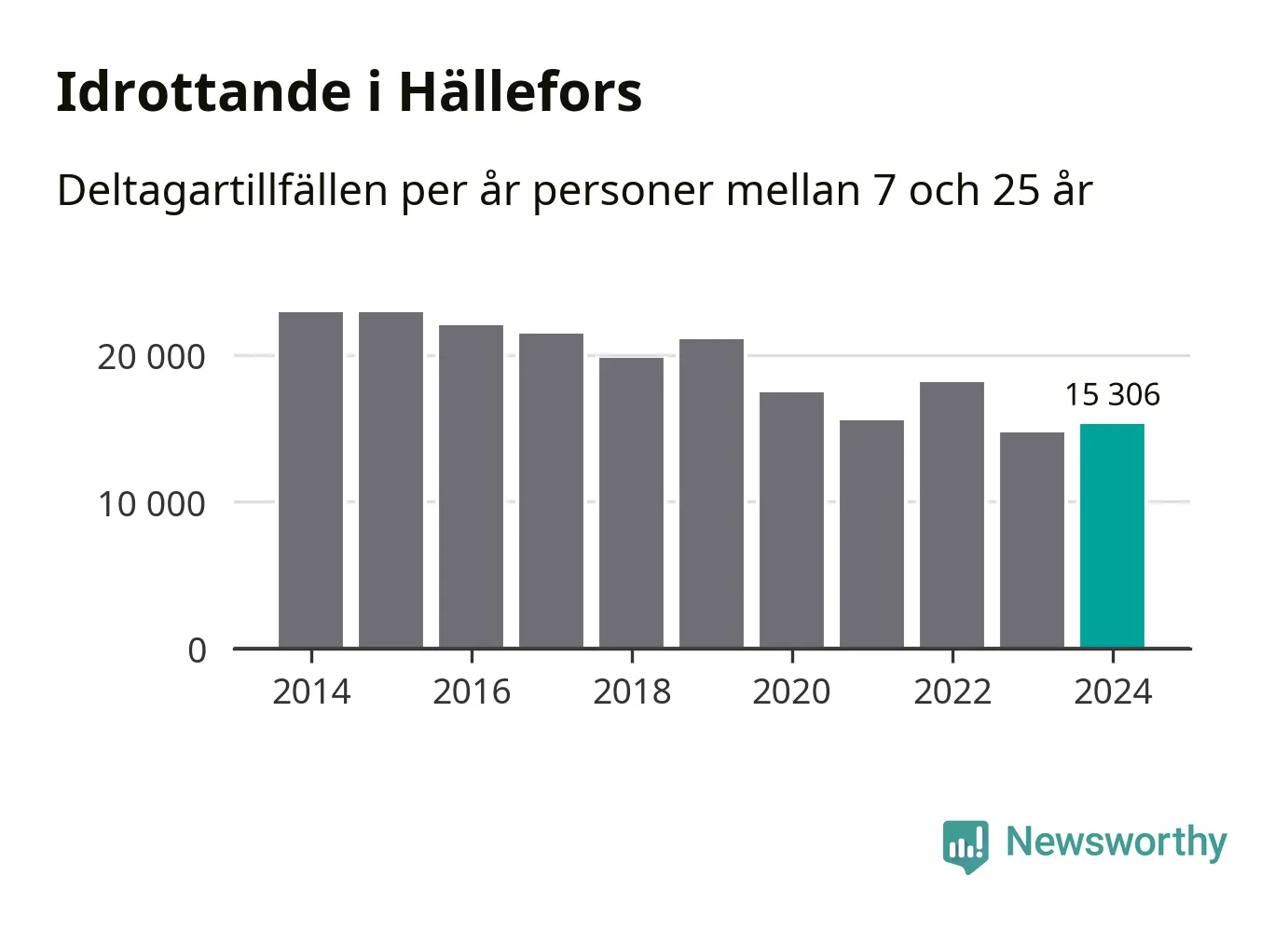 De drygt 15 000 deltagartillfällen innebär att varje invånare i Hällefors mellan 7 och 25 år i snitt deltog i knappt 13 träningar, matcher eller turneringar under 2024. Det är en relativt låg siffra, nationellt sett. Flest deltagartillfällen per invånare i Örebro län hade Lindesbergs kommun med 29 deltagartillfällen per invånare. I andra änden av listan finns Laxå kommun, 8 deltagartillfällen per invånare. Värt att nämna är att deltagartillfällena räknas i den kommun föreningen finns, det kan alltså vara ungdomar från en annan kommun som deltar.