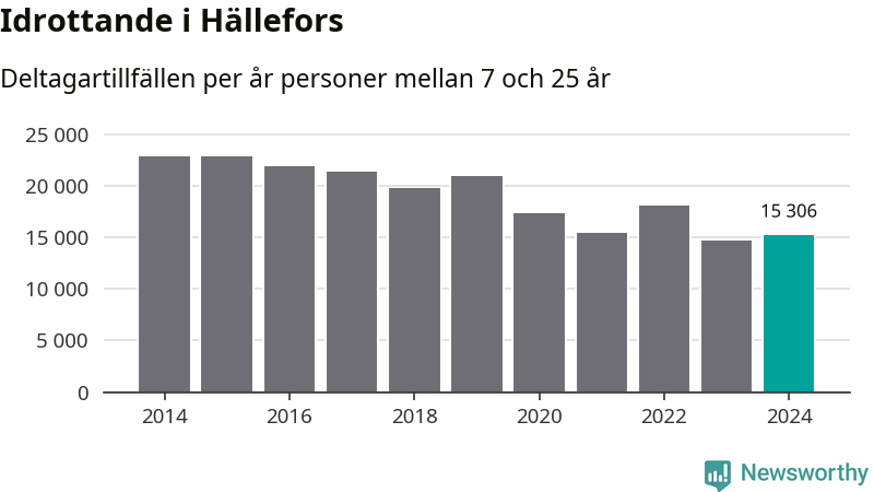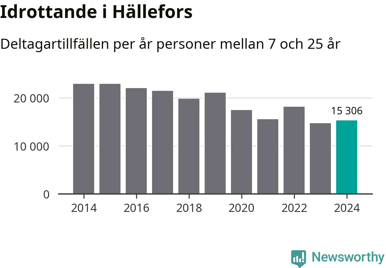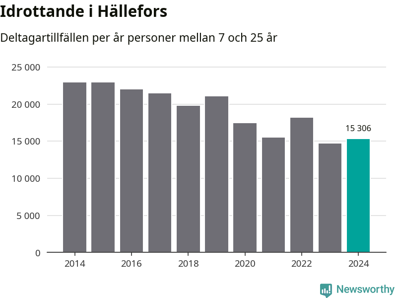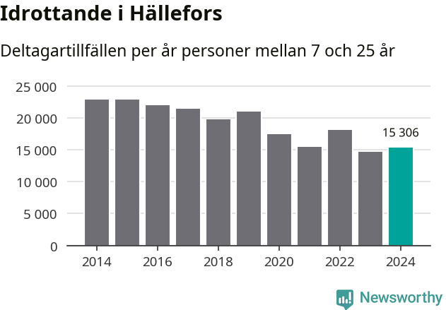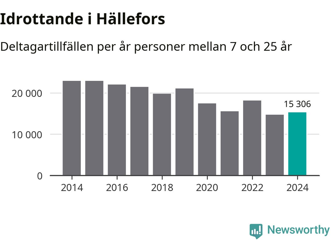 De drygt 15 000 deltagartillfällen innebär att varje invånare i Hällefors mellan 7 och 25 år i snitt deltog i knappt 13 träningar, matcher eller turneringar under 2024. Det är en relativt låg siffra, nationellt sett. Flest deltagartillfällen per invånare i Örebro län hade Lindesbergs kommun med 29 deltagartillfällen per invånare. I andra änden av listan finns Laxå kommun, 8 deltagartillfällen per invånare. Värt att nämna är att deltagartillfällena räknas i den kommun föreningen finns, det kan alltså vara ungdomar från en annan kommun som deltar.