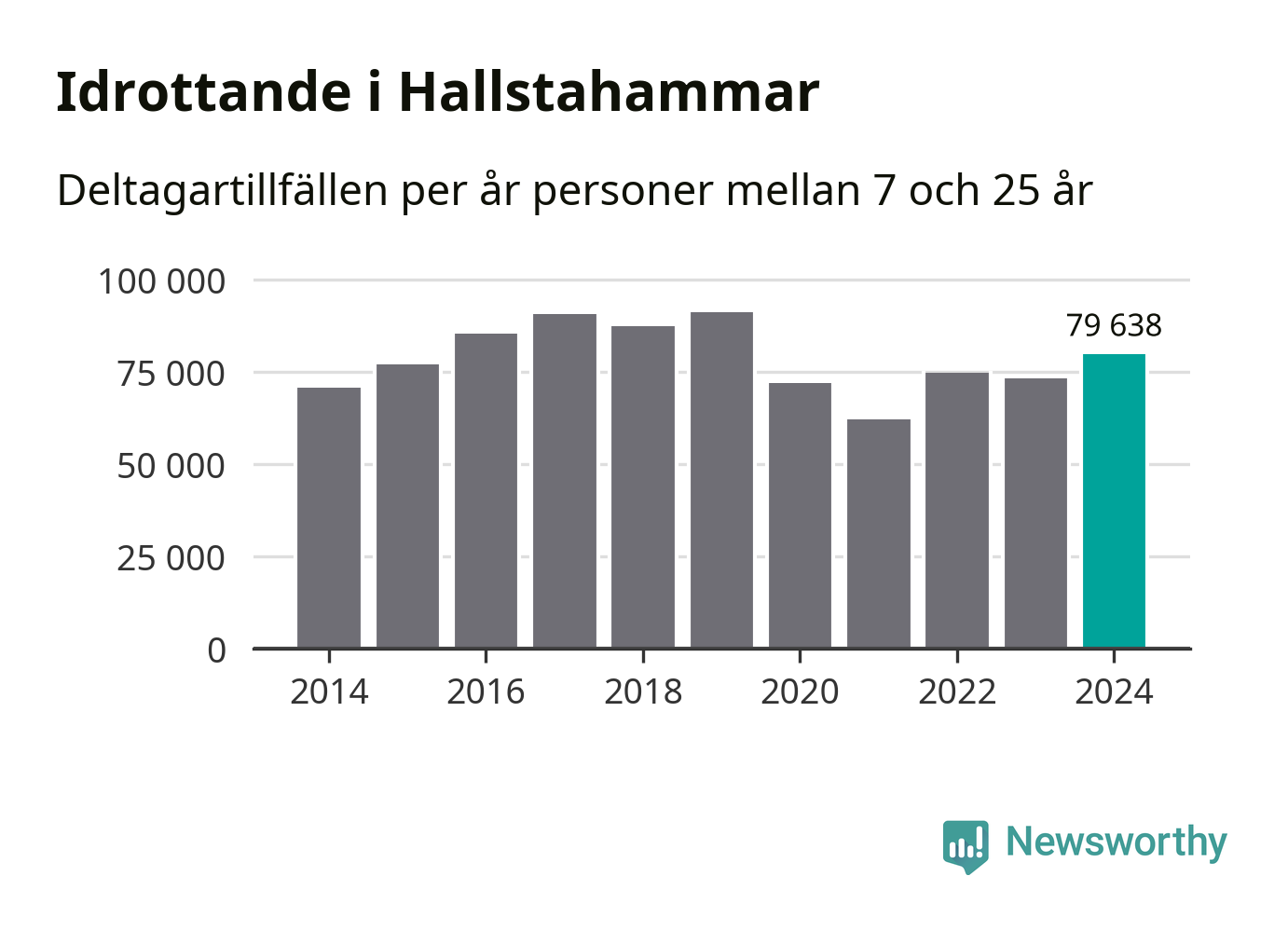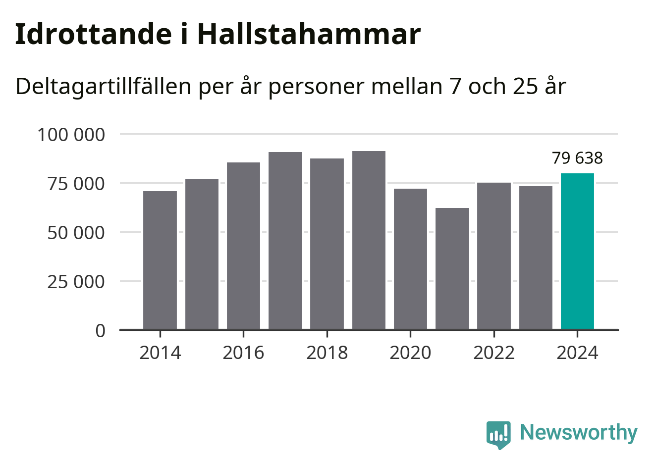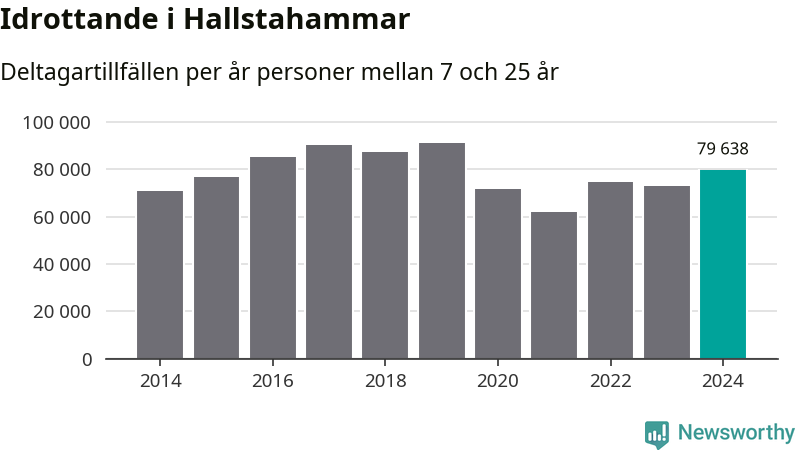 De 80 000 deltagartillfällen innebär att varje invånare i Hallstahammar mellan 7 och 25 år i snitt deltog i 22 träningar, matcher eller turneringar under 2024. Flest deltagartillfällen per invånare i Västmanland hade Surahammars kommun med 28 deltagartillfällen per invånare. I andra änden av listan finns Skinnskattebergs kommun, 11 deltagartillfällen per invånare. Värt att nämna är att deltagartillfällena räknas i den kommun föreningen finns, det kan alltså vara ungdomar från en annan kommun som deltar.