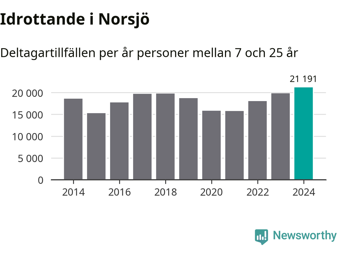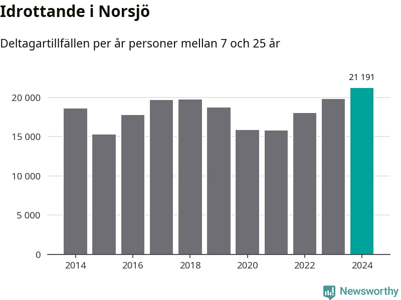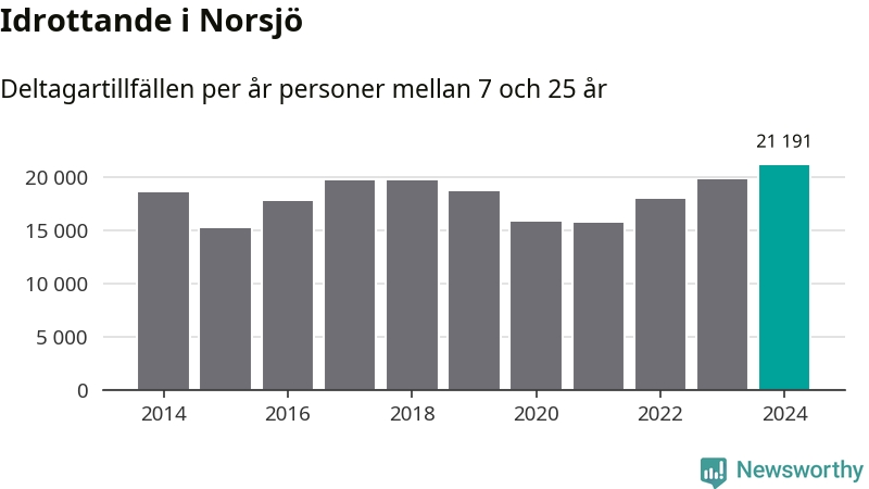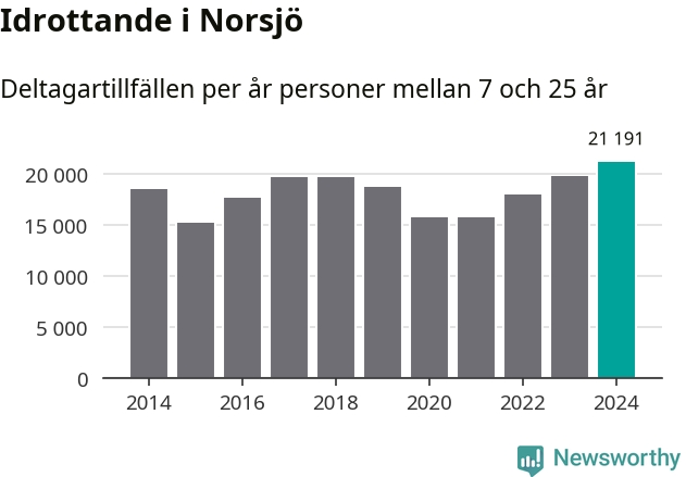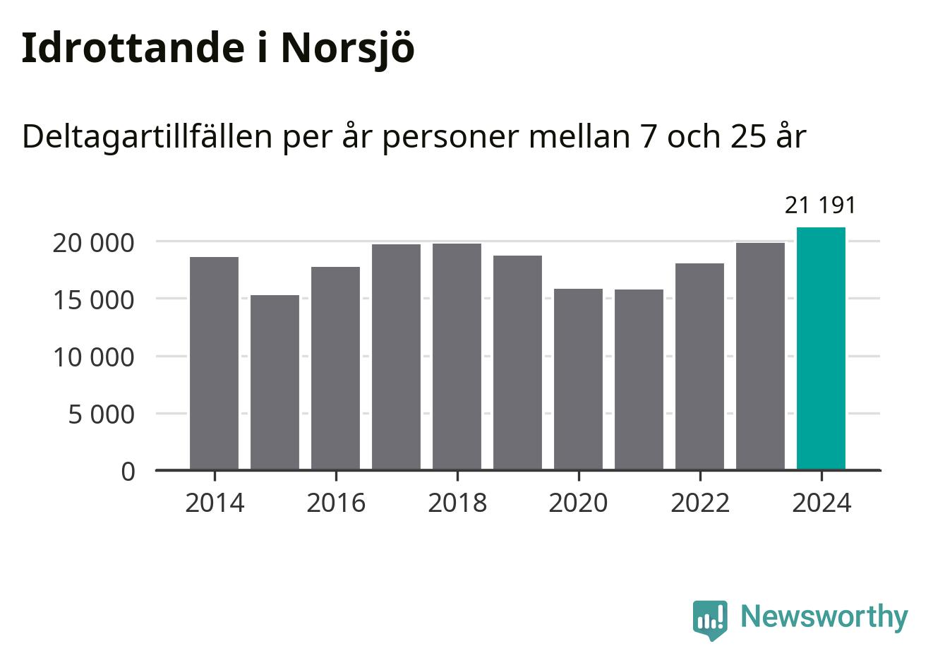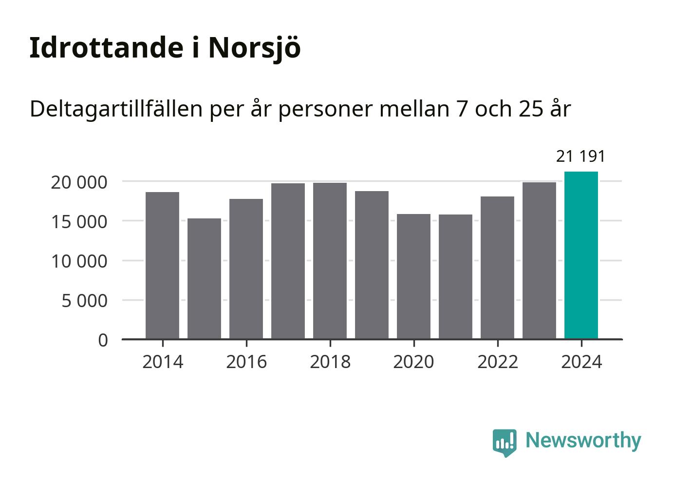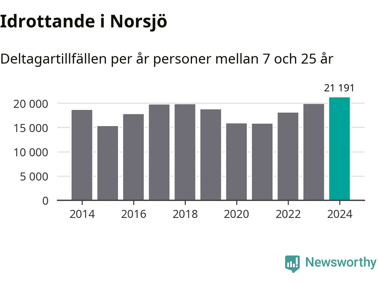 För tredje året i rad ökade aktiviteten inom ungdomsidrotten i Norsjö under 2024. Det visar nya siffror om utbetalt Lok-stöd, som delas ut till föreningar anslutna till Riksidrottsförbundet specialidrottsförbund. Stödet riktar sig till föreningar som bedriver verksamhet för deltagare i åldern 7-25 år. Under året rapporterade föreningarna i Norsjö runt 21 000 deltagartillfällen, vilket är en ökning med sju procent jämfört med 2023, och den högsta siffran i kommunen sedan åtminstone 2014. I riket som helhet ökade antalet deltagartillfällen med fem procent under 2024.
