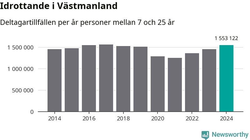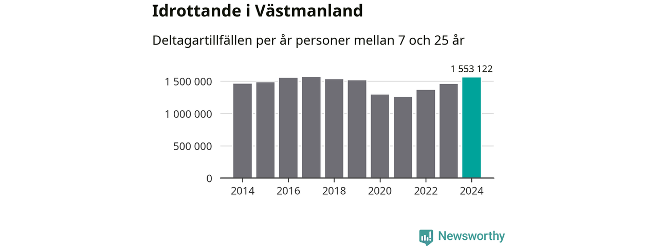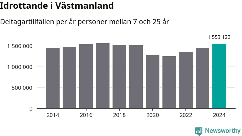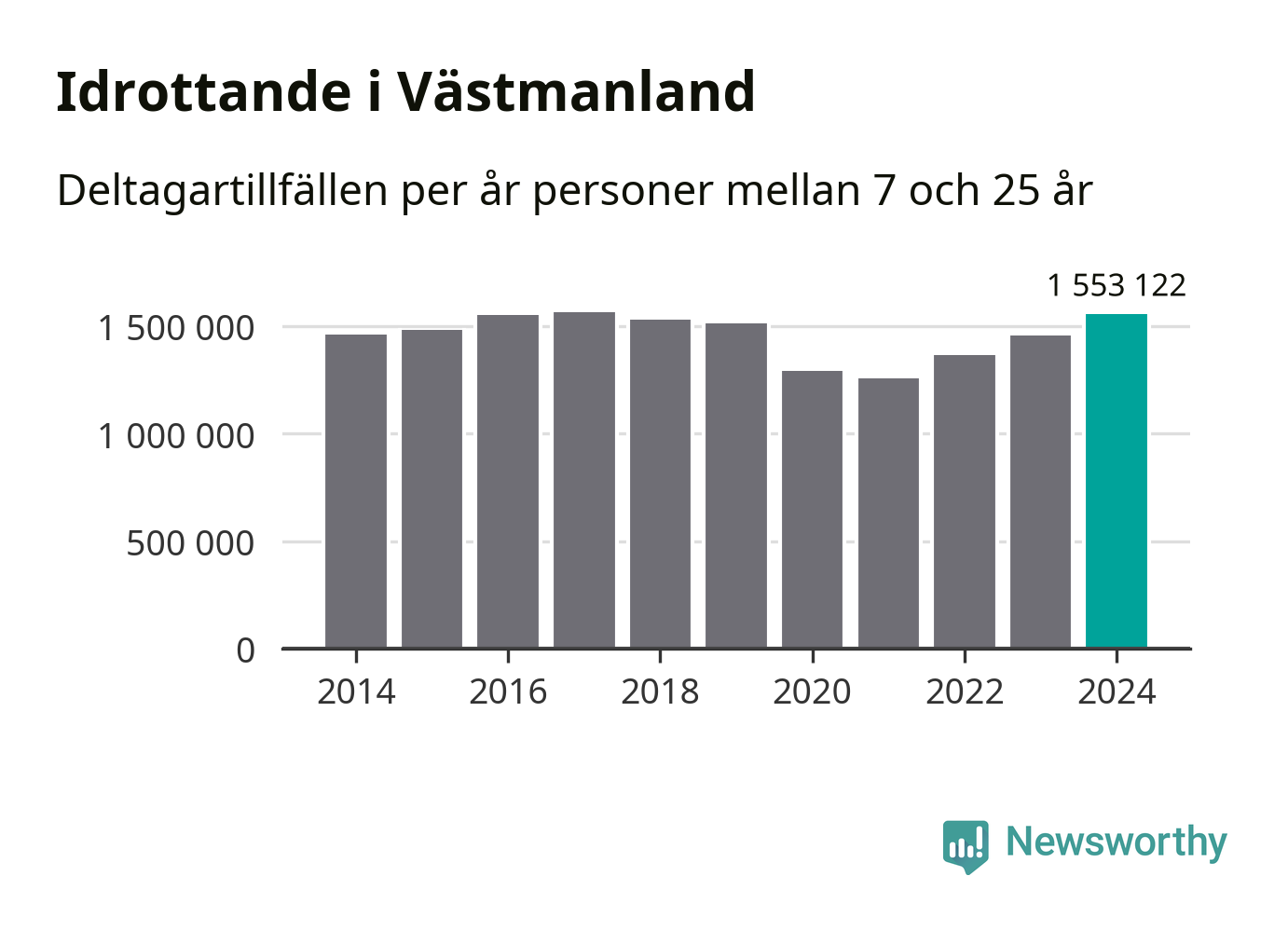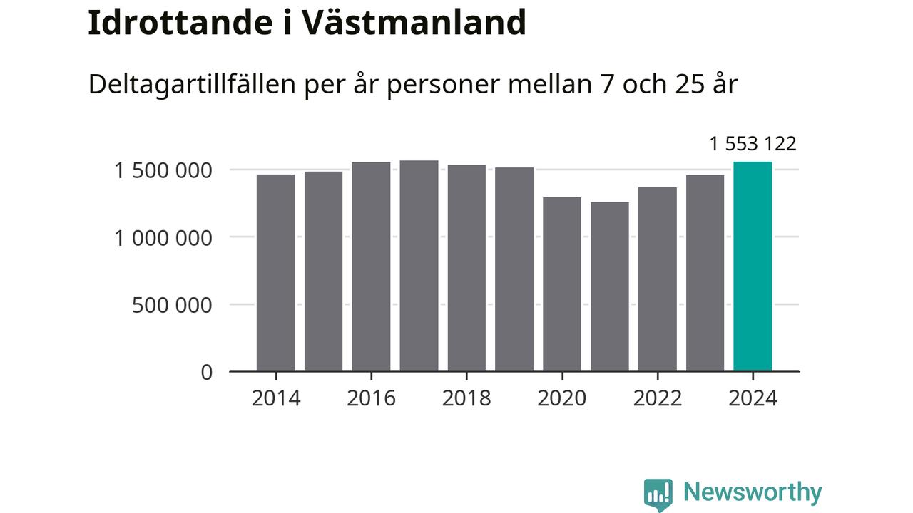 För tredje året i rad ökade aktiviteten inom ungdomsidrotten i Västmanland under 2024. Det visar nya siffror om utbetalt Lok-stöd, som delas ut till föreningar anslutna till Riksidrottsförbundet specialidrottsförbund. Stödet riktar sig till föreningar som bedriver verksamhet för deltagare i åldern 7-25 år. Under året rapporterade föreningarna i Västmanland runt 1 553 000 deltagartillfällen, vilket är en ökning med sju procent jämfört med 2023 och den högsta siffran i länet sedan 2017. I riket som helhet ökade antalet deltagartillfällen med fem procent under 2024.