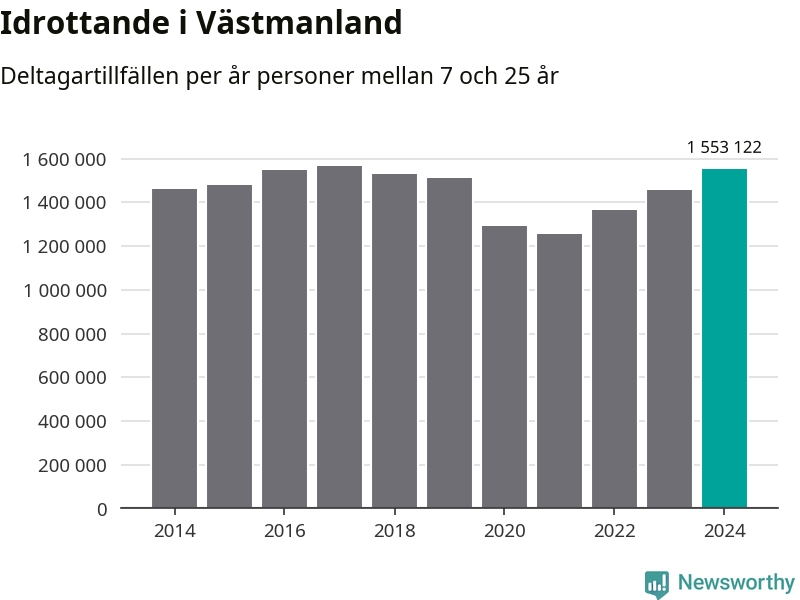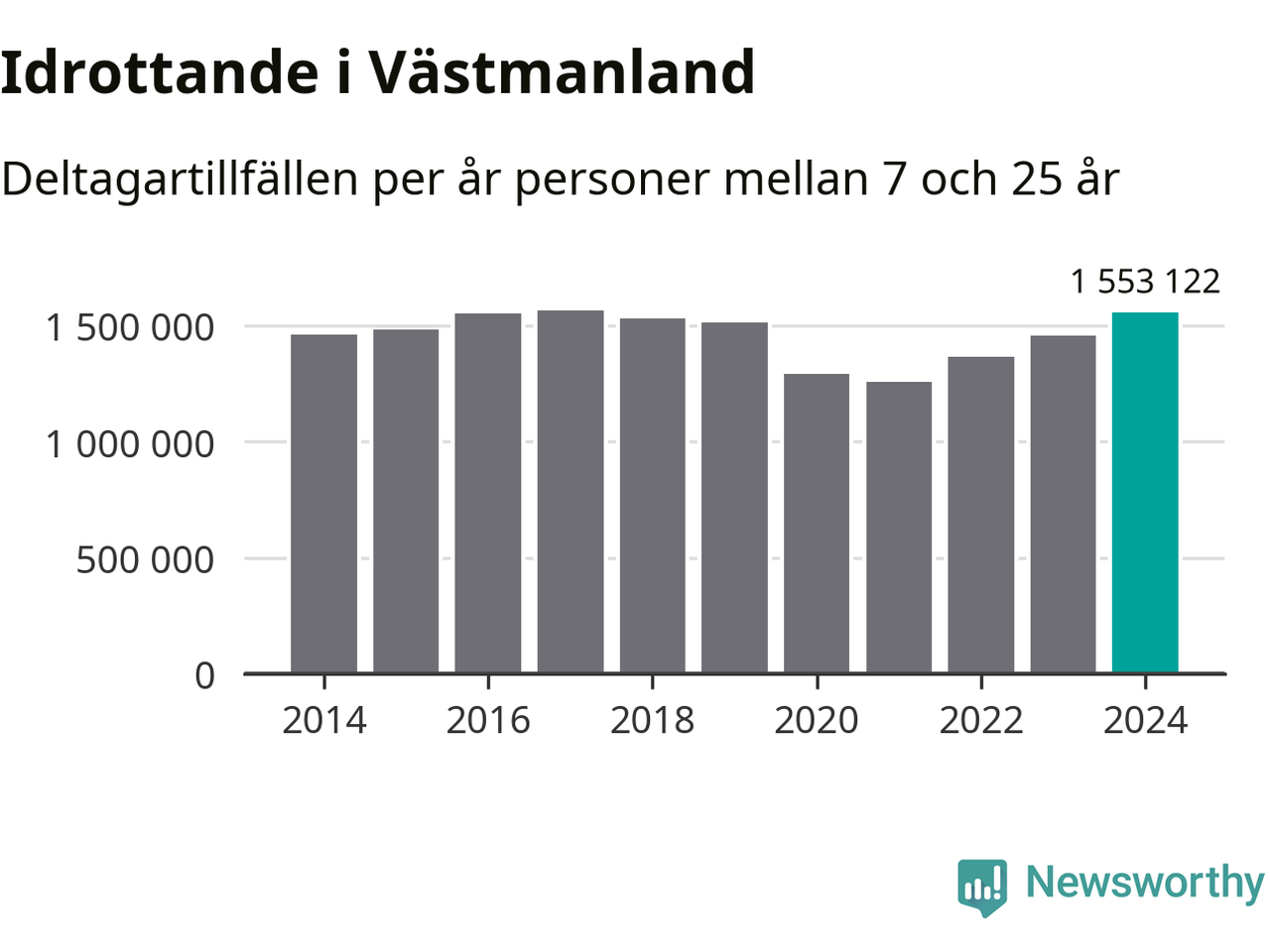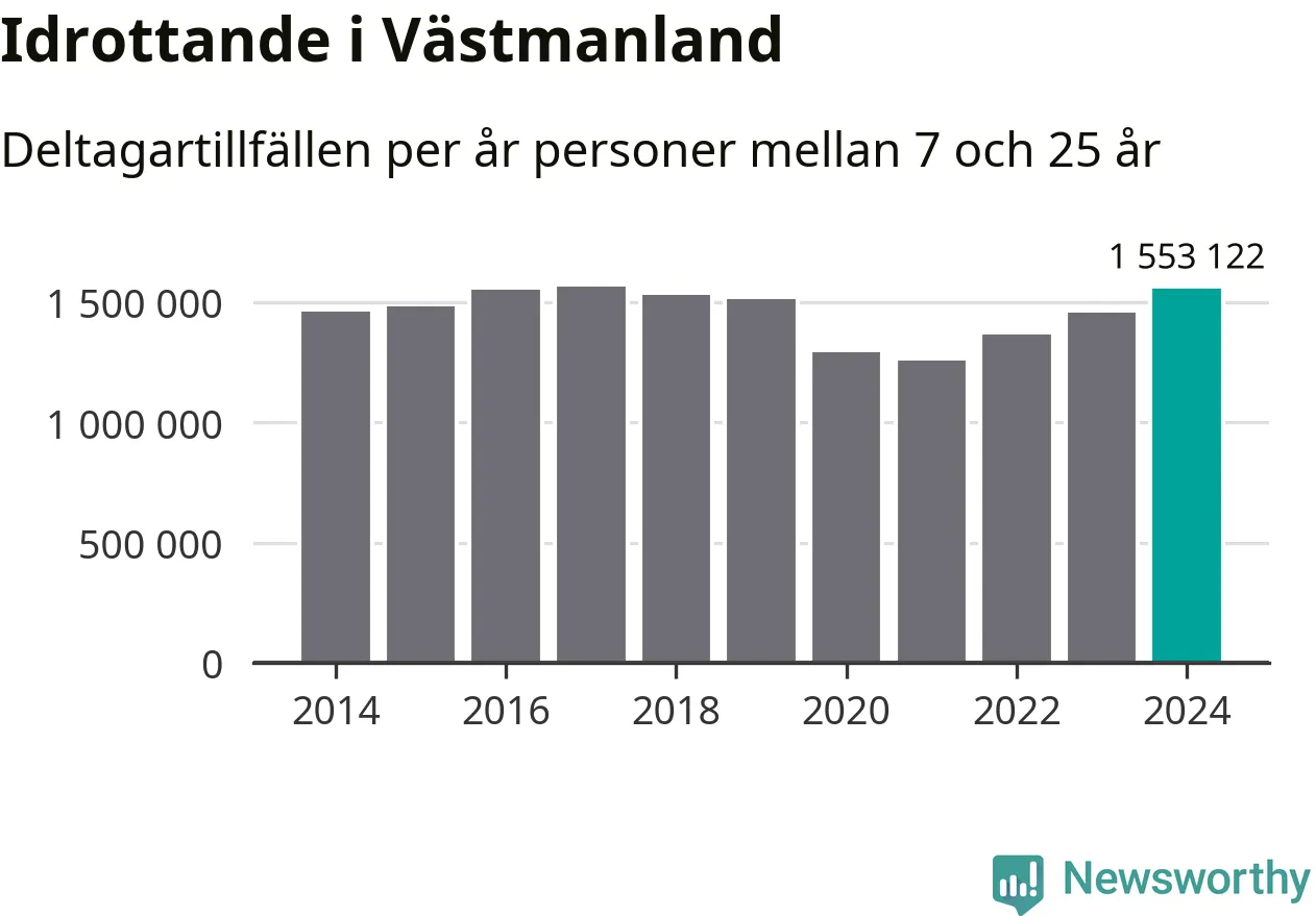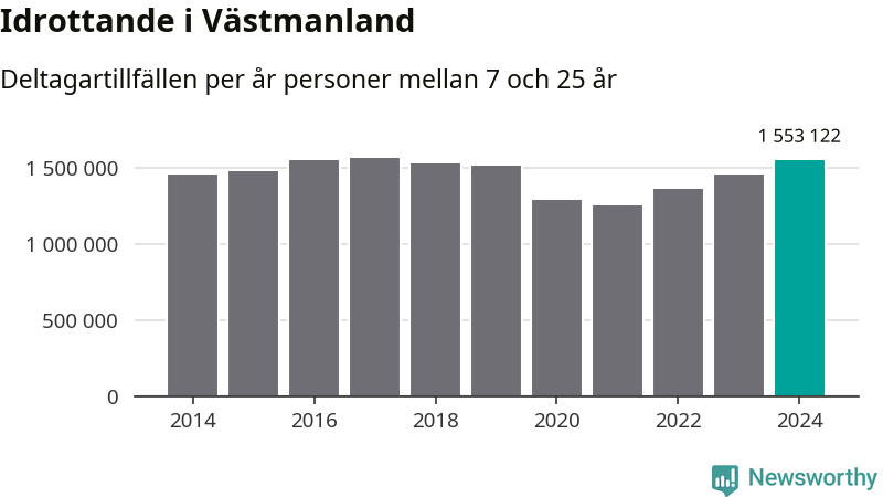 För tredje året i rad ökade aktiviteten inom ungdomsidrotten i Västmanland under 2024. Det visar nya siffror om utbetalt Lok-stöd, som delas ut till föreningar anslutna till Riksidrottsförbundet specialidrottsförbund. Stödet riktar sig till föreningar som bedriver verksamhet för deltagare i åldern 7-25 år. Under året rapporterade föreningarna i Västmanland runt 1 553 000 deltagartillfällen, vilket är en ökning med sju procent jämfört med 2023 och den högsta siffran i länet sedan 2017. I riket som helhet ökade antalet deltagartillfällen med fem procent under 2024.