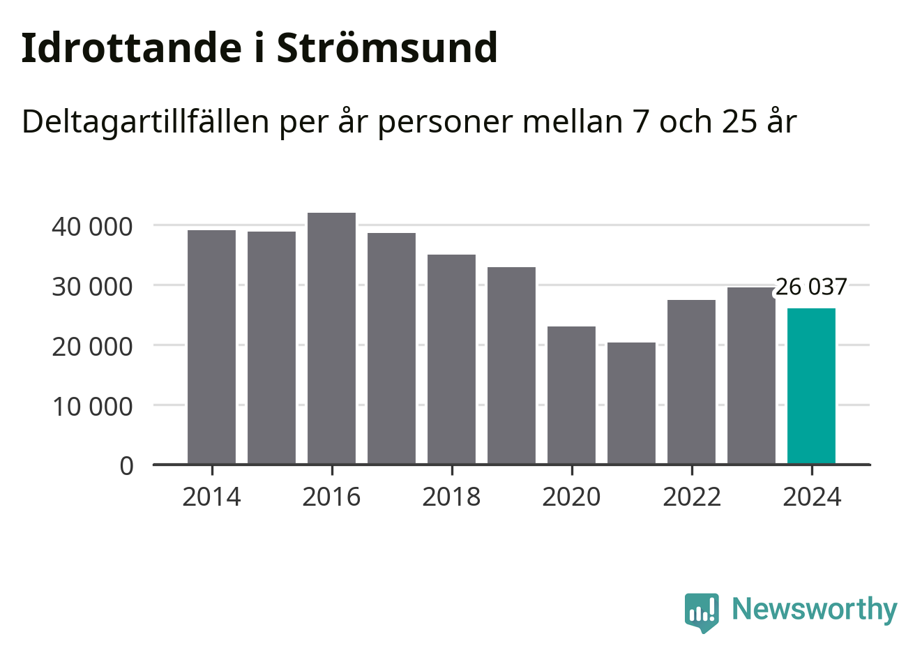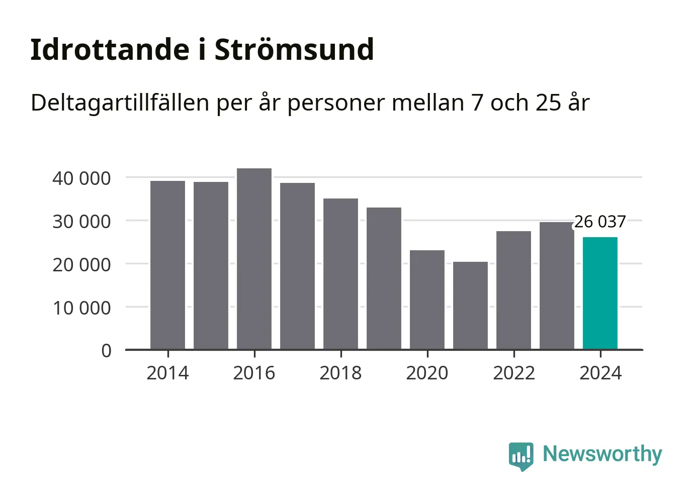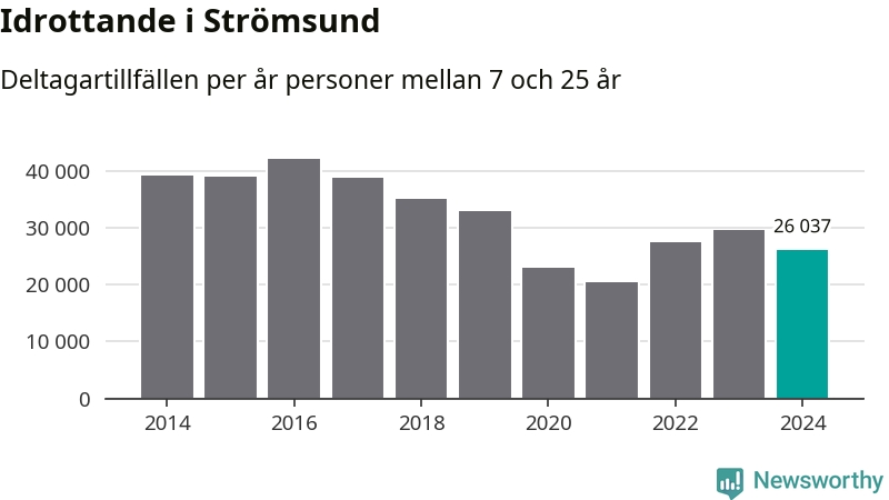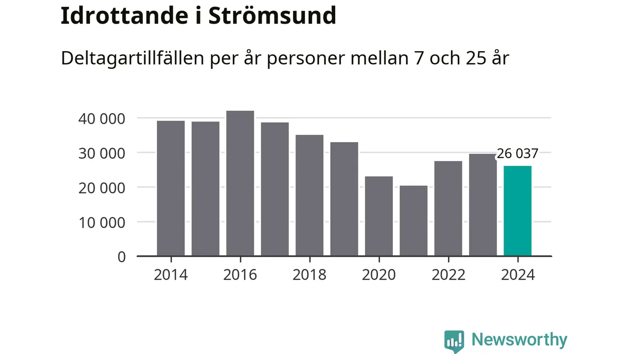 Strömsunds-ungdomarna idrottade mindre under 2024. Det visar nya siffror om utbetalt Lok-stöd, som delas ut till föreningar anslutna till Riksidrottsförbundet specialidrottsförbund. Stödet riktar sig till föreningar som bedriver verksamhet för deltagare i åldern 7-25 år. Under året rapporterade föreningarna i Strömsund runt 26 000 deltagartillfällen, vilket är en minskning med tolv procent jämfört med 2023. I riket som helhet ökade antalet deltagartillfällen med fem procent under 2024.