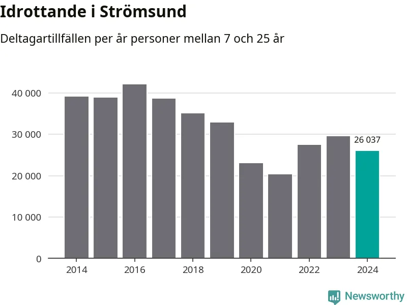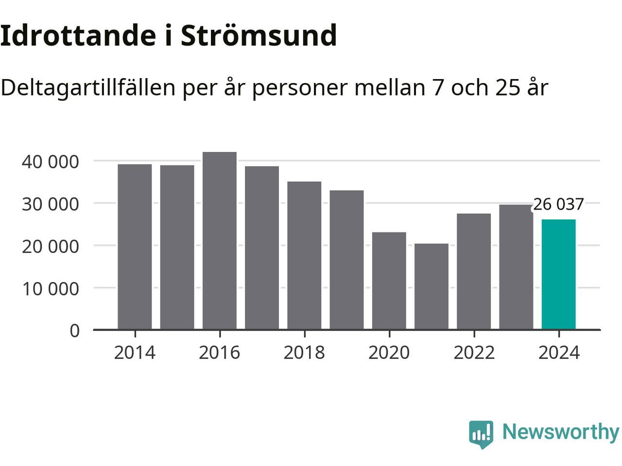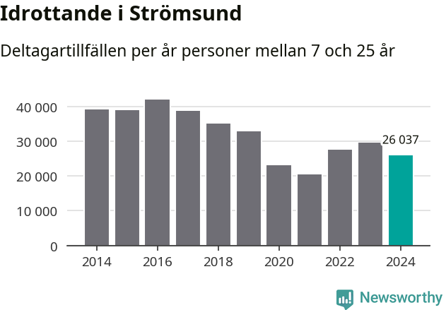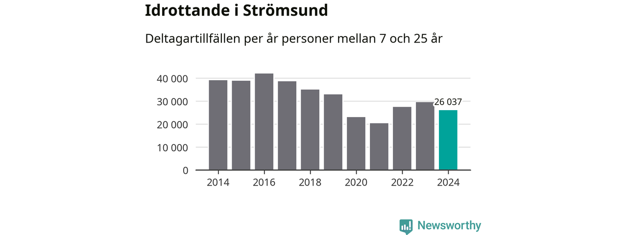 Strömsunds-ungdomarna idrottade mindre under 2024. Det visar nya siffror om utbetalt Lok-stöd, som delas ut till föreningar anslutna till Riksidrottsförbundet specialidrottsförbund. Stödet riktar sig till föreningar som bedriver verksamhet för deltagare i åldern 7-25 år. Under året rapporterade föreningarna i Strömsund runt 26 000 deltagartillfällen, vilket är en minskning med tolv procent jämfört med 2023. I riket som helhet ökade antalet deltagartillfällen med fem procent under 2024.