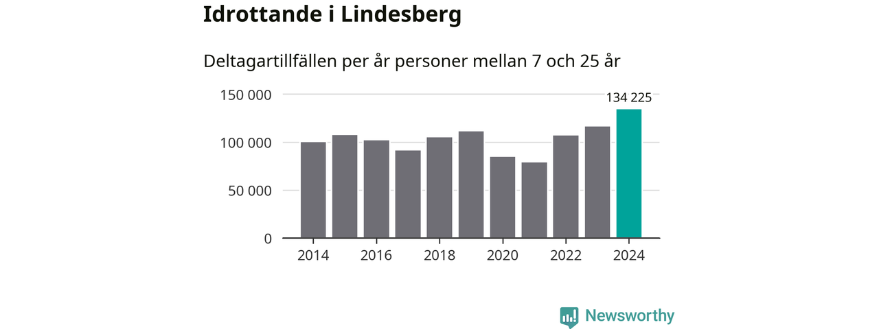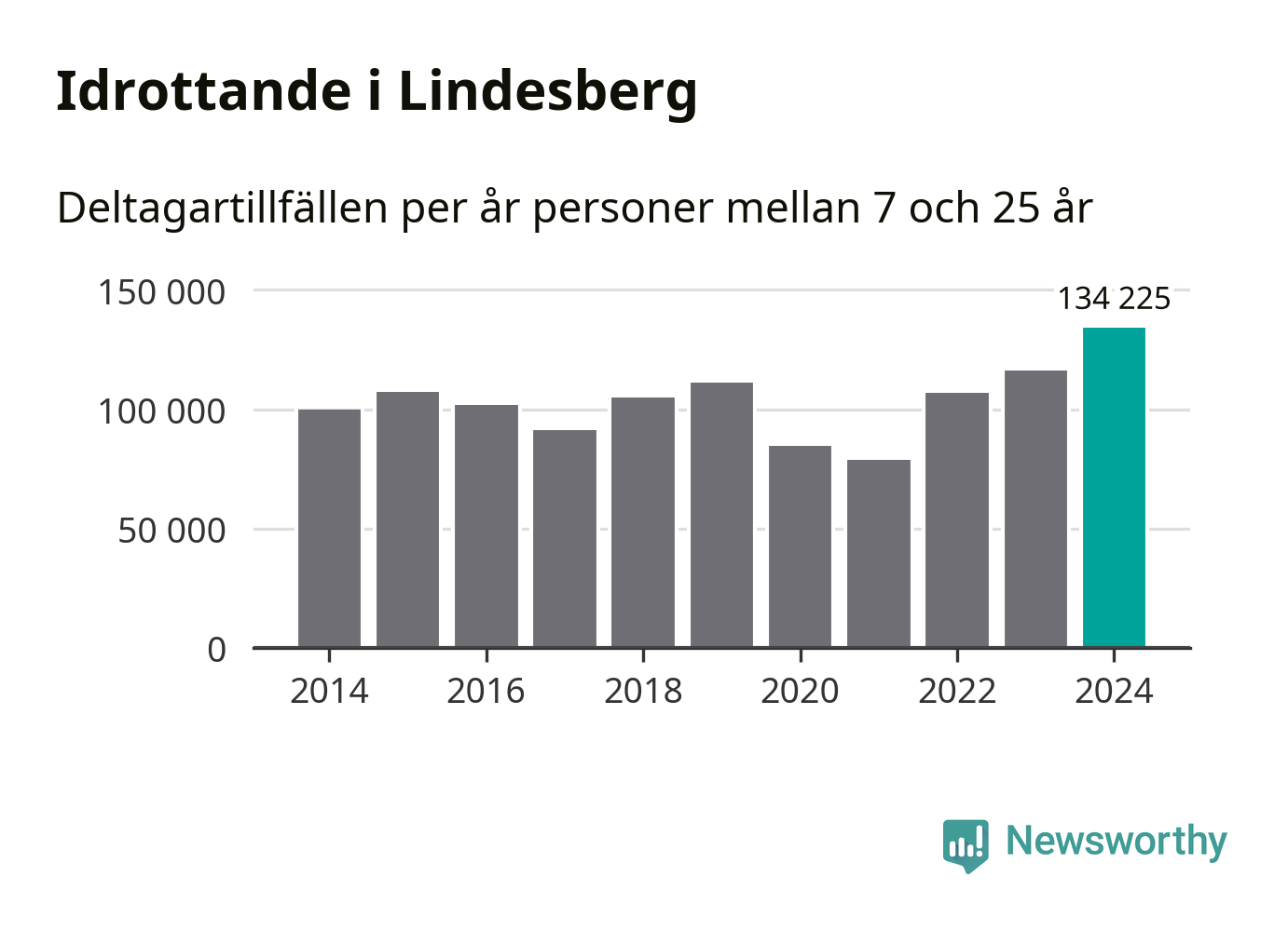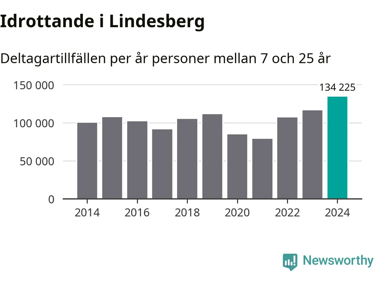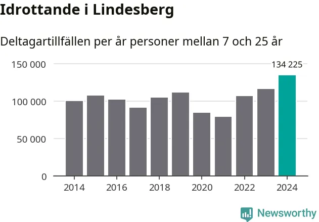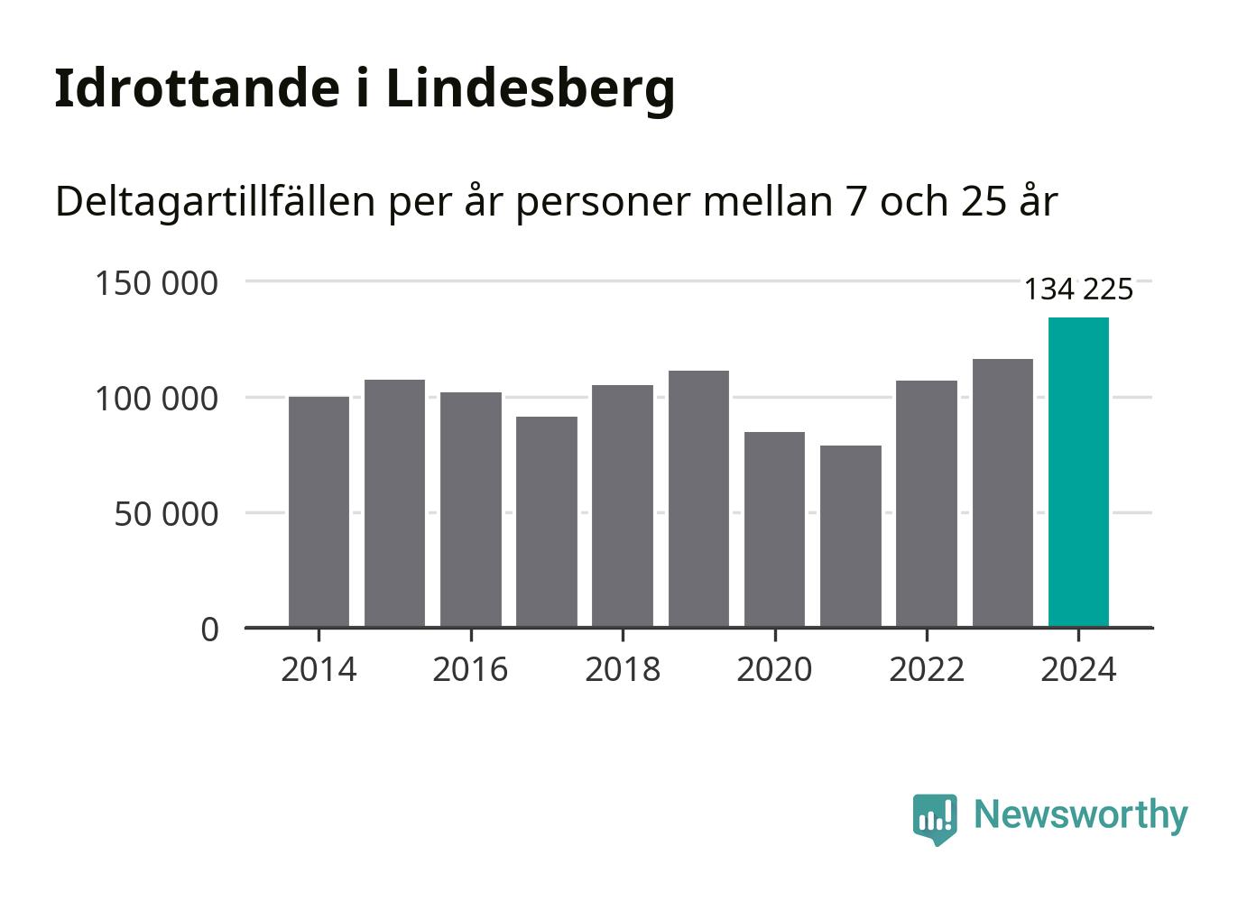 För tredje året i rad ökade aktiviteten inom ungdomsidrotten i Lindesberg under 2024. Det visar nya siffror om utbetalt Lok-stöd, som delas ut till föreningar anslutna till Riksidrottsförbundet specialidrottsförbund. Stödet riktar sig till föreningar som bedriver verksamhet för deltagare i åldern 7-25 år. Under året rapporterade föreningarna i Lindesberg runt 134 000 deltagartillfällen, vilket är en ökning med 15 procent jämfört med 2023, och den högsta siffran i kommunen sedan åtminstone 2014. I riket som helhet ökade antalet deltagartillfällen med fem procent under 2024.