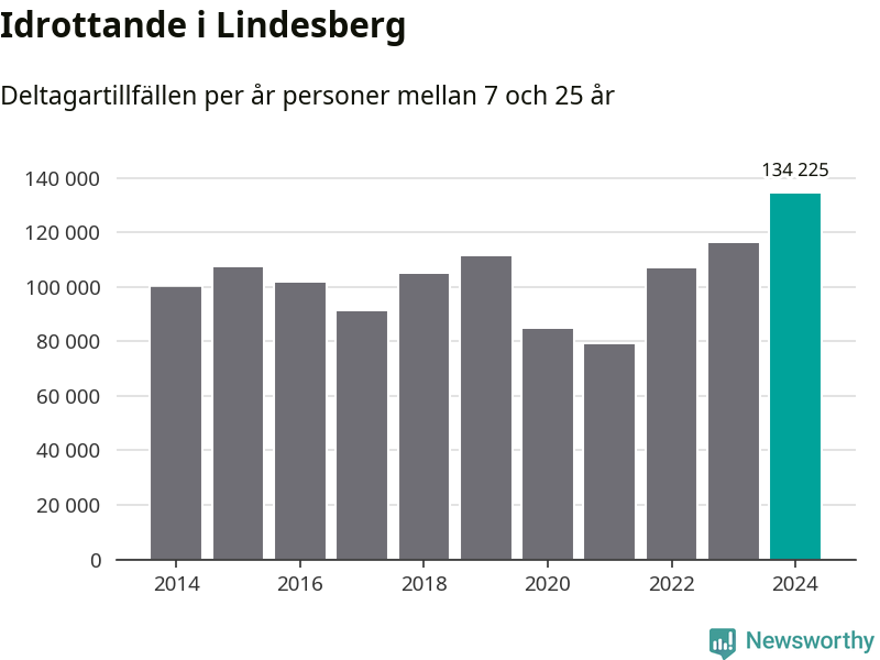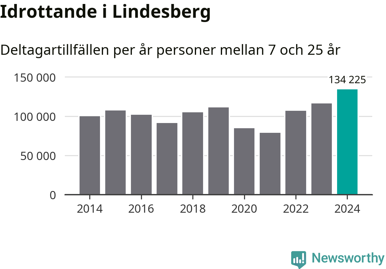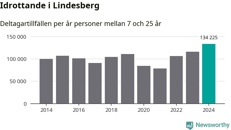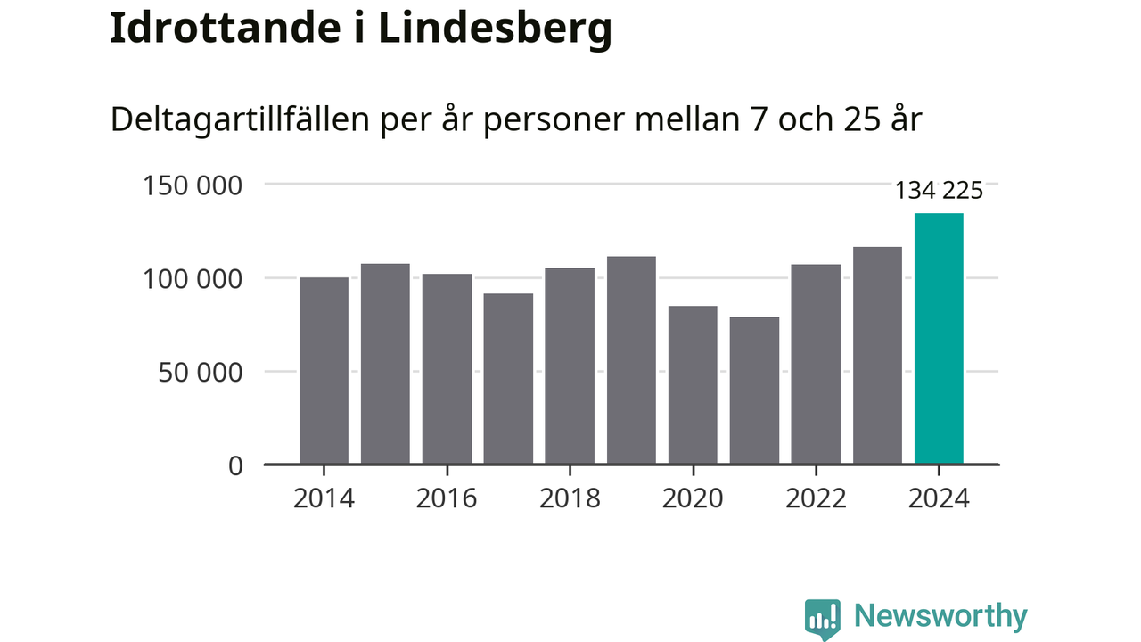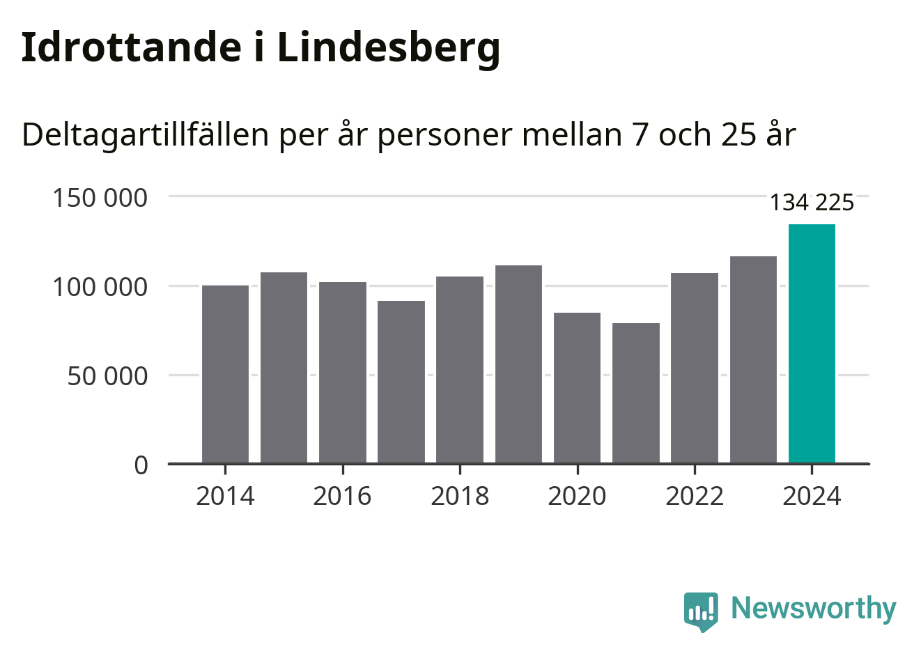 För tredje året i rad ökade aktiviteten inom ungdomsidrotten i Lindesberg under 2024. Det visar nya siffror om utbetalt Lok-stöd, som delas ut till föreningar anslutna till Riksidrottsförbundet specialidrottsförbund. Stödet riktar sig till föreningar som bedriver verksamhet för deltagare i åldern 7-25 år. Under året rapporterade föreningarna i Lindesberg runt 134 000 deltagartillfällen, vilket är en ökning med 15 procent jämfört med 2023, och den högsta siffran i kommunen sedan åtminstone 2014. I riket som helhet ökade antalet deltagartillfällen med fem procent under 2024.