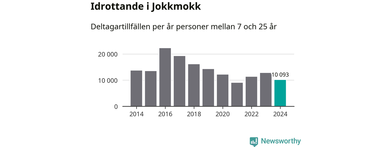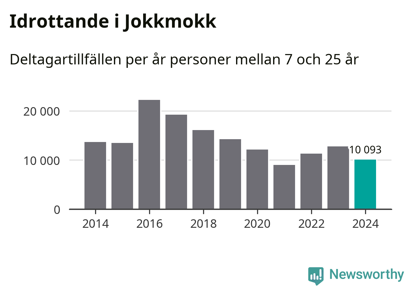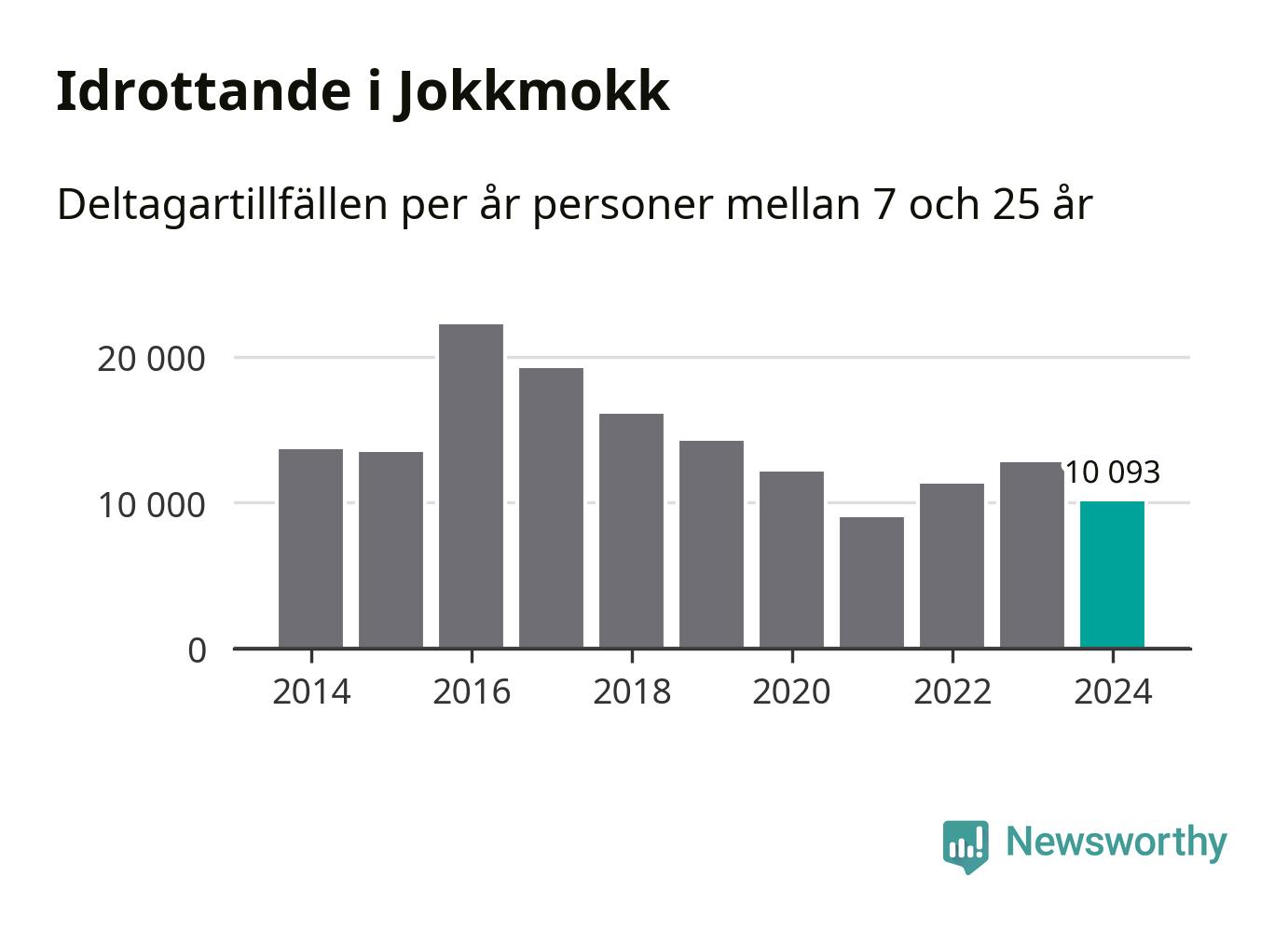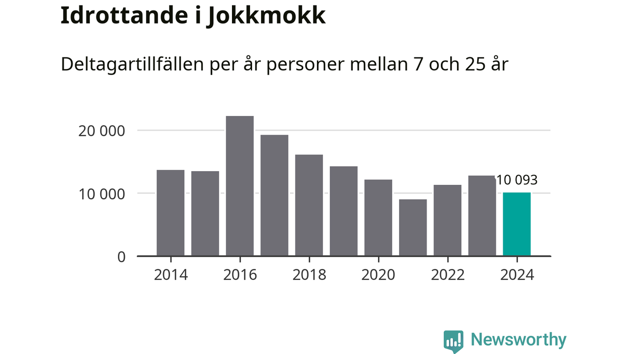 Jokkmokks-ungdomarna idrottade mindre under 2024. Det visar nya siffror om utbetalt Lok-stöd, som delas ut till föreningar anslutna till Riksidrottsförbundet specialidrottsförbund. Stödet riktar sig till föreningar som bedriver verksamhet för deltagare i åldern 7-25 år. Under året rapporterade föreningarna i Jokkmokk runt 10 000 deltagartillfällen, vilket är en minskning med 21 procent jämfört med 2023. I riket som helhet ökade antalet deltagartillfällen med fem procent under 2024.