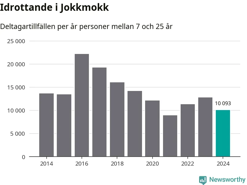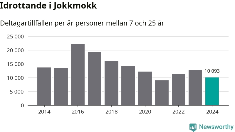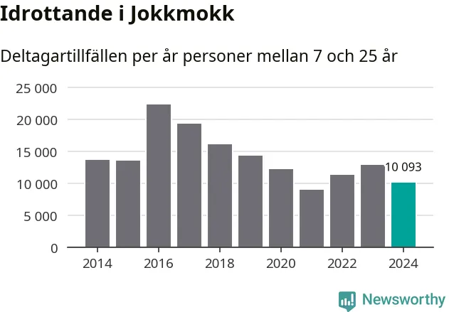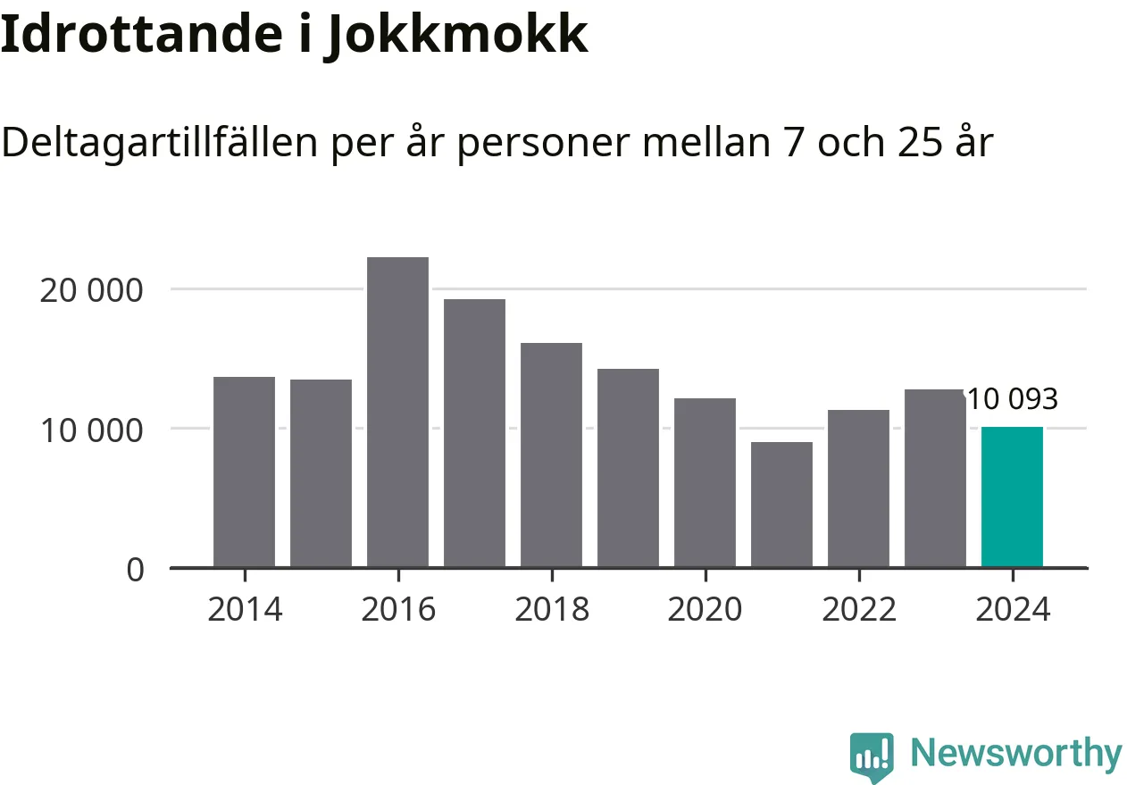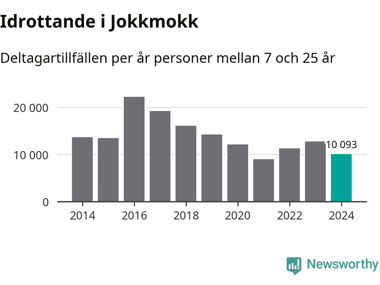 Jokkmokks-ungdomarna idrottade mindre under 2024. Det visar nya siffror om utbetalt Lok-stöd, som delas ut till föreningar anslutna till Riksidrottsförbundet specialidrottsförbund. Stödet riktar sig till föreningar som bedriver verksamhet för deltagare i åldern 7-25 år. Under året rapporterade föreningarna i Jokkmokk runt 10 000 deltagartillfällen, vilket är en minskning med 21 procent jämfört med 2023. I riket som helhet ökade antalet deltagartillfällen med fem procent under 2024.