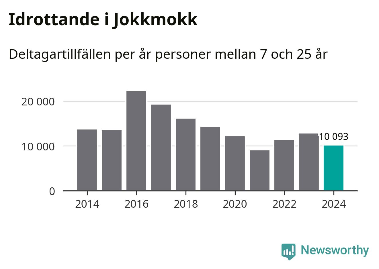 De 10 000 deltagartillfällen innebär att varje invånare i Jokkmokk mellan 7 och 25 år i snitt deltog i 13 träningar, matcher eller turneringar under 2024. Det är den lägsta siffran i Norrbotten. Flest deltagartillfällen per invånare i länet hade Luleå kommun med 33 deltagartillfällen per invånare. Värt att nämna är att deltagartillfällena räknas i den kommun föreningen finns, det kan alltså vara ungdomar från en annan kommun som deltar.