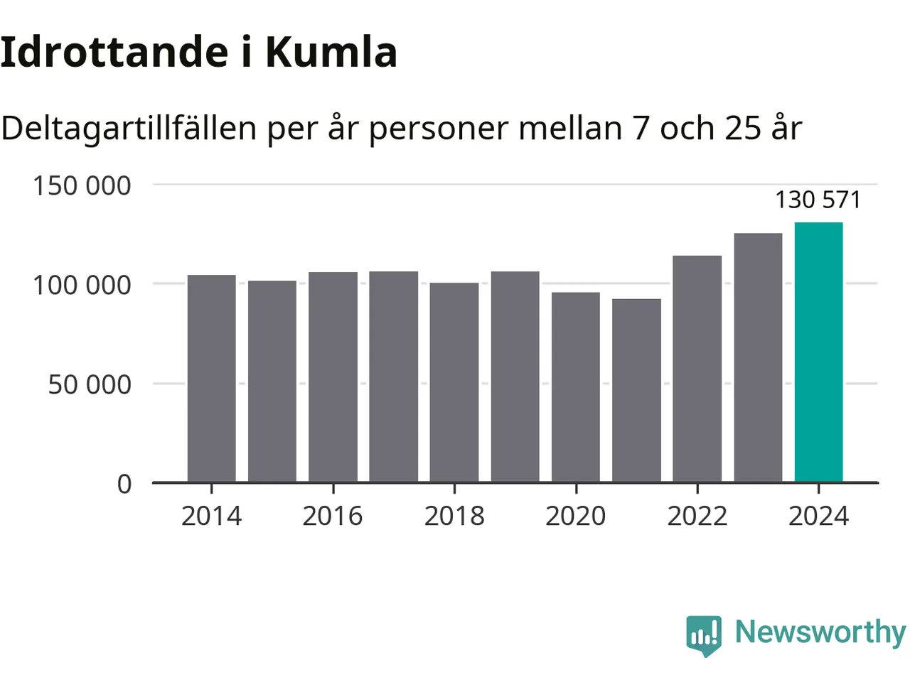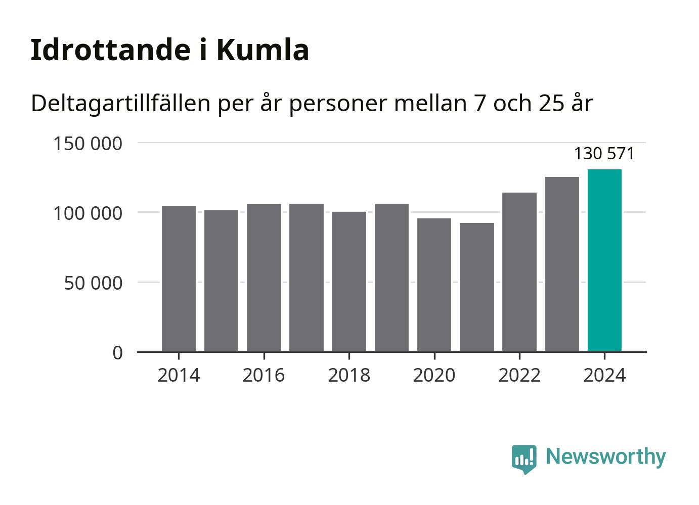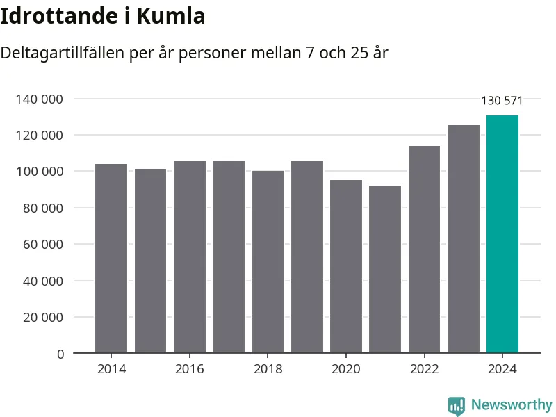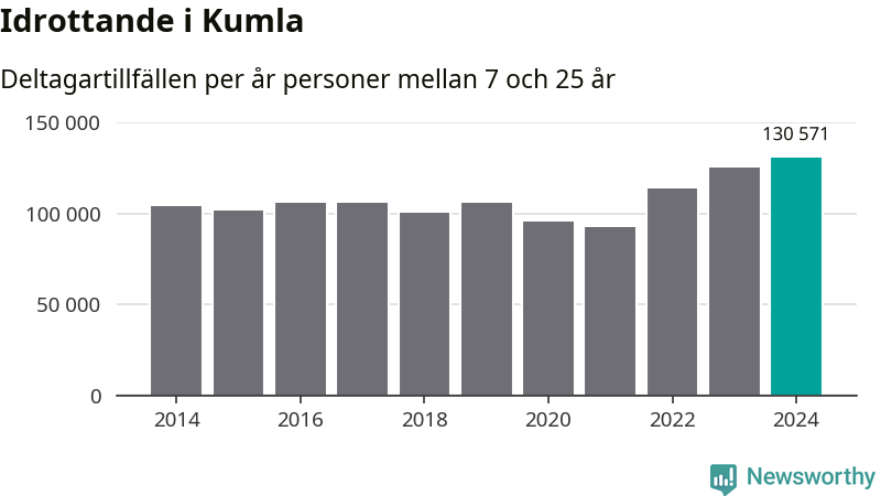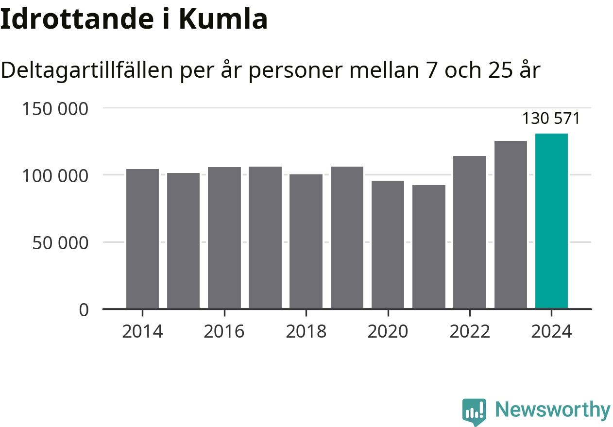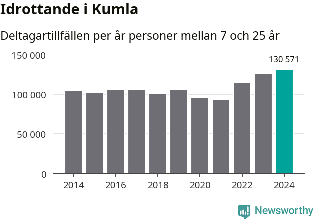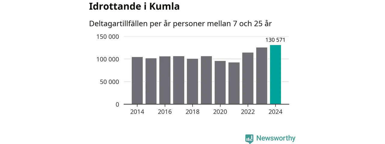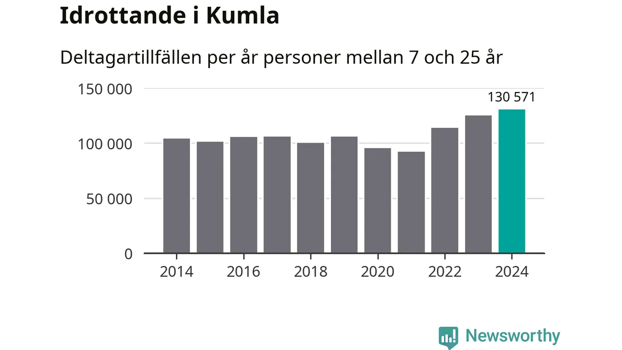 För tredje året i rad ökade aktiviteten inom ungdomsidrotten i Kumla under 2024. Det visar nya siffror om utbetalt Lok-stöd, som delas ut till föreningar anslutna till Riksidrottsförbundet specialidrottsförbund. Stödet riktar sig till föreningar som bedriver verksamhet för deltagare i åldern 7-25 år. Under året rapporterade föreningarna i Kumla runt 131 000 deltagartillfällen, vilket är en ökning med fyra procent jämfört med 2023, och den högsta siffran i kommunen sedan åtminstone 2014. I riket som helhet ökade antalet deltagartillfällen med fem procent under 2024.