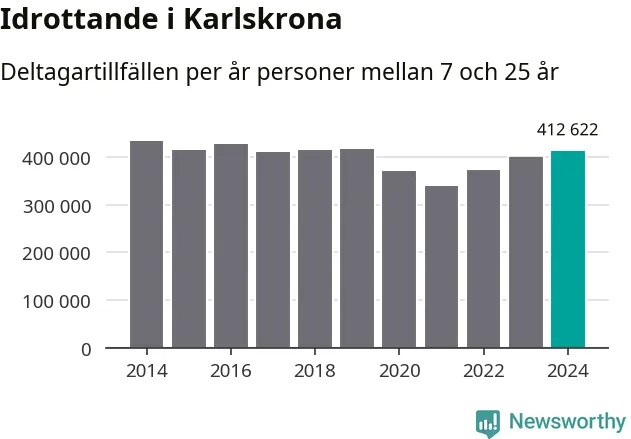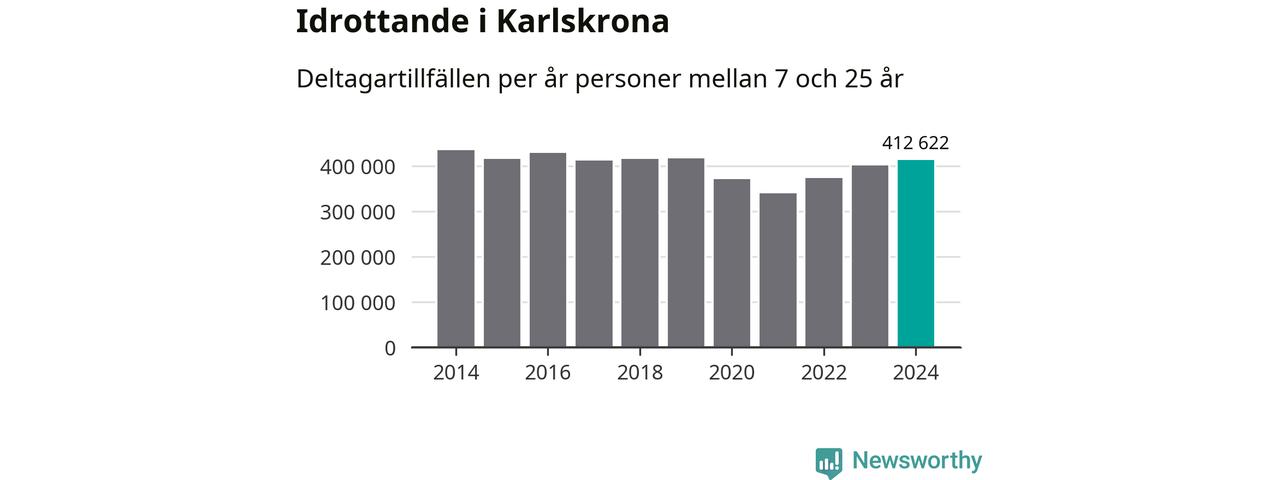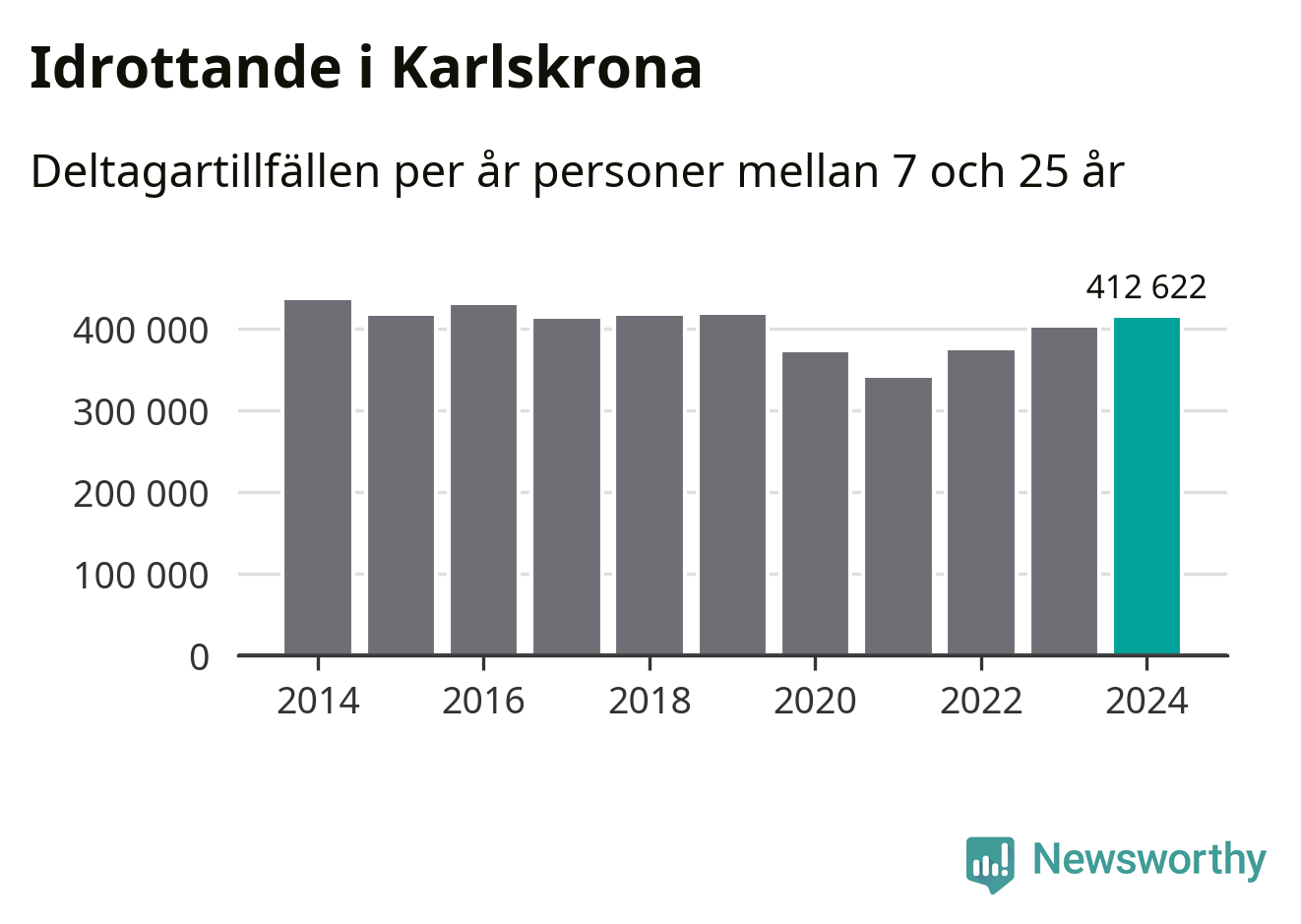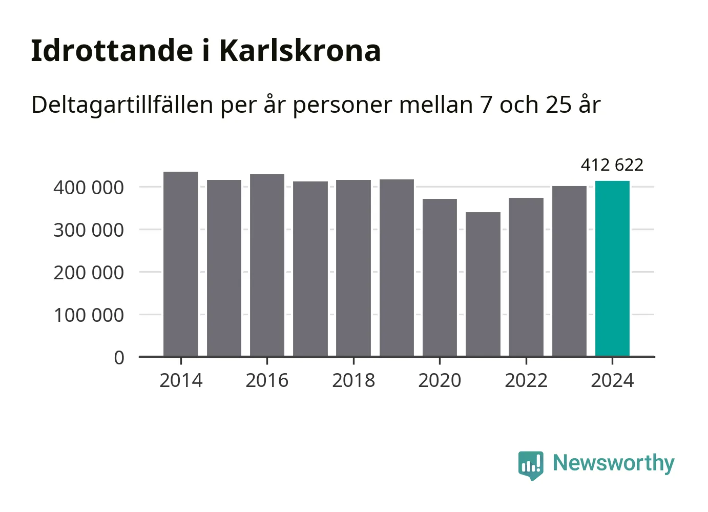 De 413 000 deltagartillfällen innebär att varje invånare i Karlskrona mellan 7 och 25 år i snitt deltog i 27 träningar, matcher eller turneringar under 2024. Flest deltagartillfällen per invånare i Blekinge hade Sölvesborgs kommun med 33 deltagartillfällen per invånare. I andra änden av listan finns Ronneby kommun, 20 deltagartillfällen per invånare. Värt att nämna är att deltagartillfällena räknas i den kommun föreningen finns, det kan alltså vara ungdomar från en annan kommun som deltar.