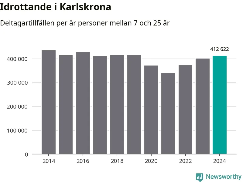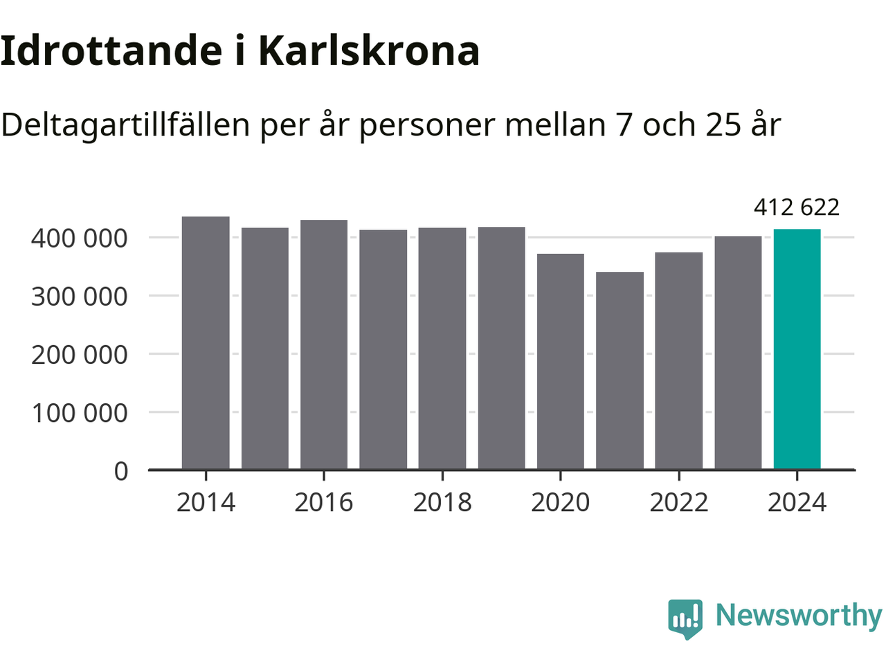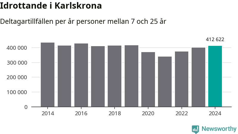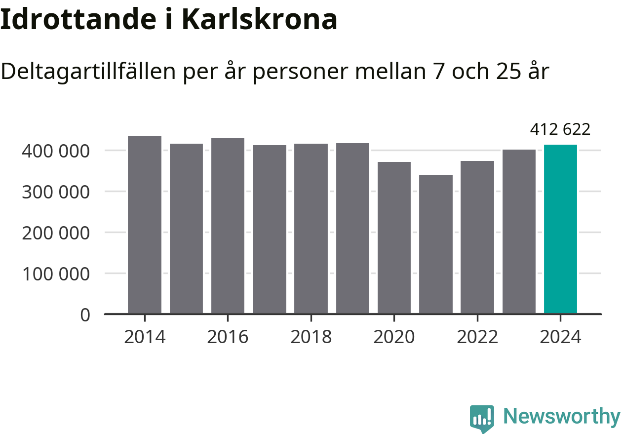 De 413 000 deltagartillfällen innebär att varje invånare i Karlskrona mellan 7 och 25 år i snitt deltog i 27 träningar, matcher eller turneringar under 2024. Flest deltagartillfällen per invånare i Blekinge hade Sölvesborgs kommun med 33 deltagartillfällen per invånare. I andra änden av listan finns Ronneby kommun, 20 deltagartillfällen per invånare. Värt att nämna är att deltagartillfällena räknas i den kommun föreningen finns, det kan alltså vara ungdomar från en annan kommun som deltar.