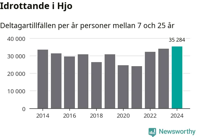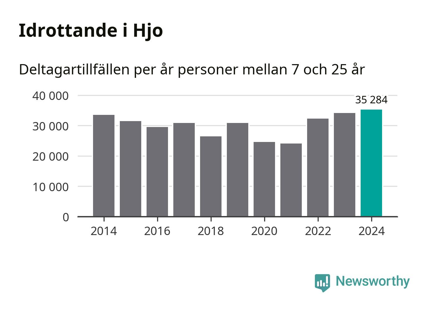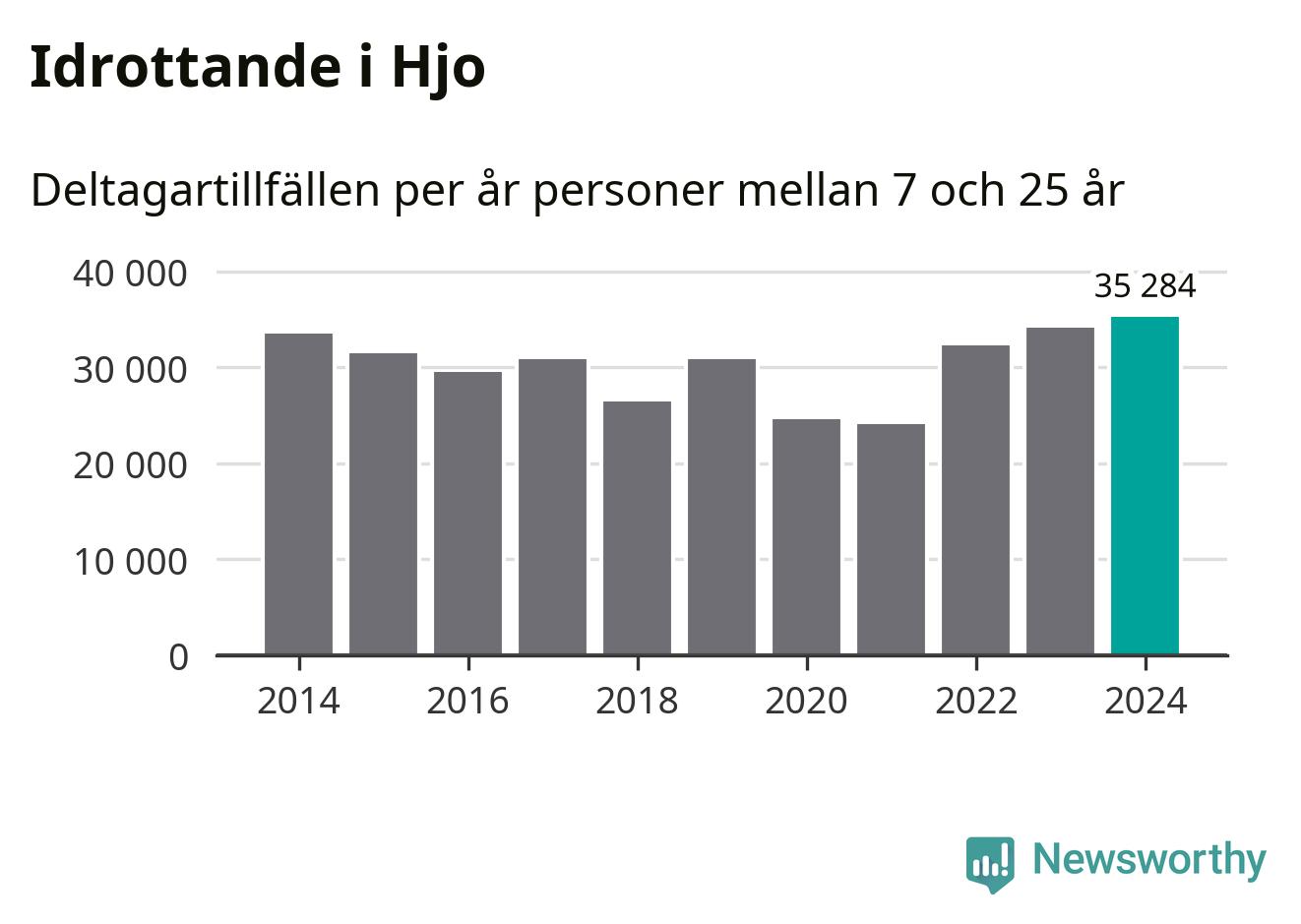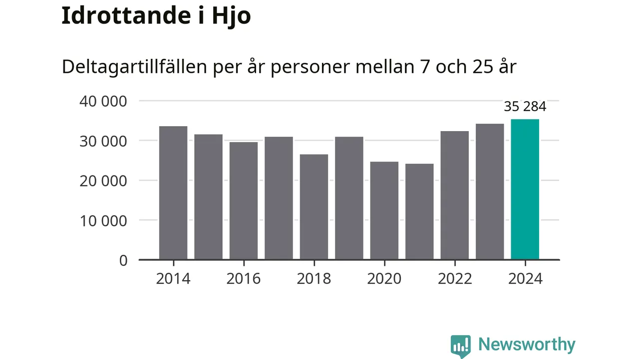 För tredje året i rad ökade aktiviteten inom ungdomsidrotten i Hjo under 2024. Det visar nya siffror om utbetalt Lok-stöd, som delas ut till föreningar anslutna till Riksidrottsförbundet specialidrottsförbund. Stödet riktar sig till föreningar som bedriver verksamhet för deltagare i åldern 7-25 år. Under året rapporterade föreningarna i Hjo runt 35 000 deltagartillfällen, vilket är en ökning med tre procent jämfört med 2023, och den högsta siffran i kommunen sedan åtminstone 2014. I riket som helhet ökade antalet deltagartillfällen med fem procent under 2024.