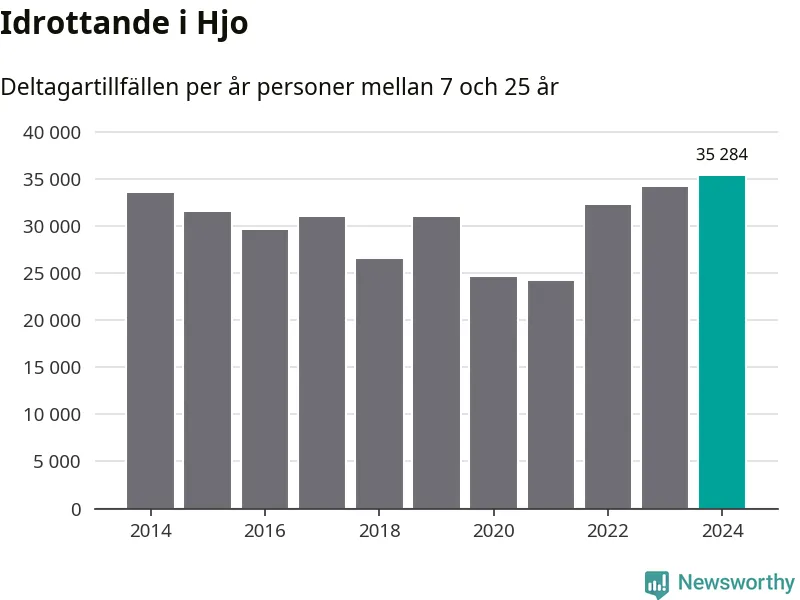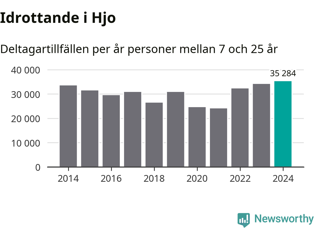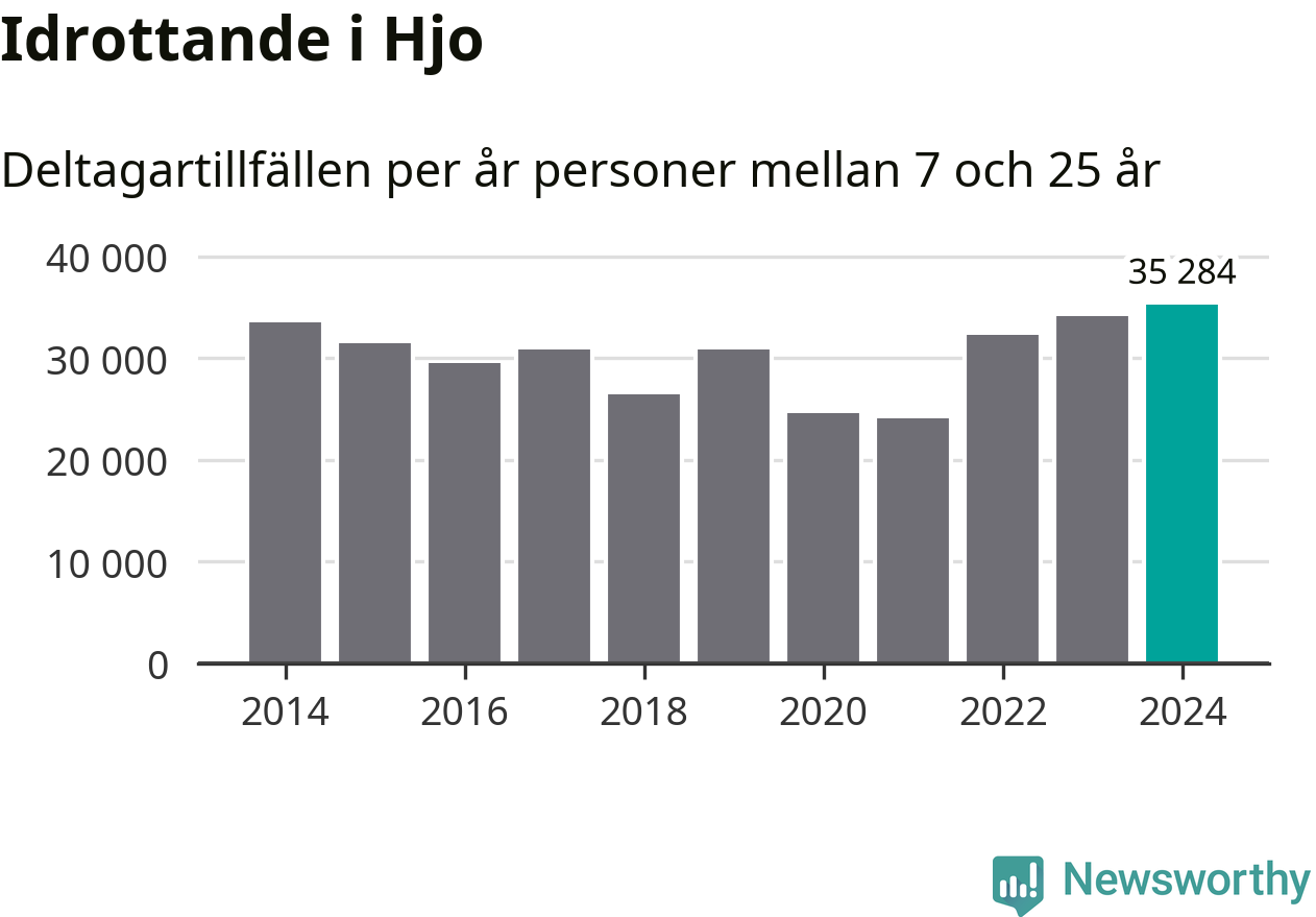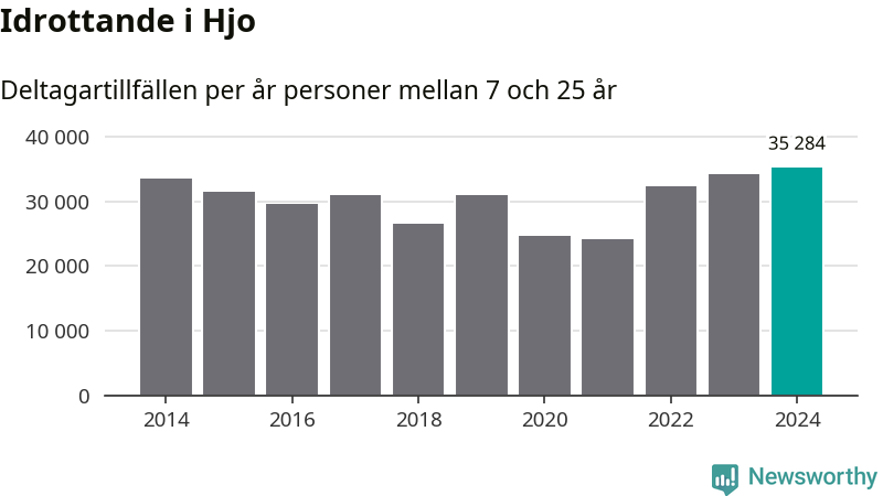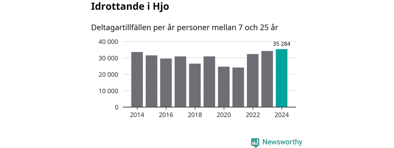 För tredje året i rad ökade aktiviteten inom ungdomsidrotten i Hjo under 2024. Det visar nya siffror om utbetalt Lok-stöd, som delas ut till föreningar anslutna till Riksidrottsförbundet specialidrottsförbund. Stödet riktar sig till föreningar som bedriver verksamhet för deltagare i åldern 7-25 år. Under året rapporterade föreningarna i Hjo runt 35 000 deltagartillfällen, vilket är en ökning med tre procent jämfört med 2023, och den högsta siffran i kommunen sedan åtminstone 2014. I riket som helhet ökade antalet deltagartillfällen med fem procent under 2024.