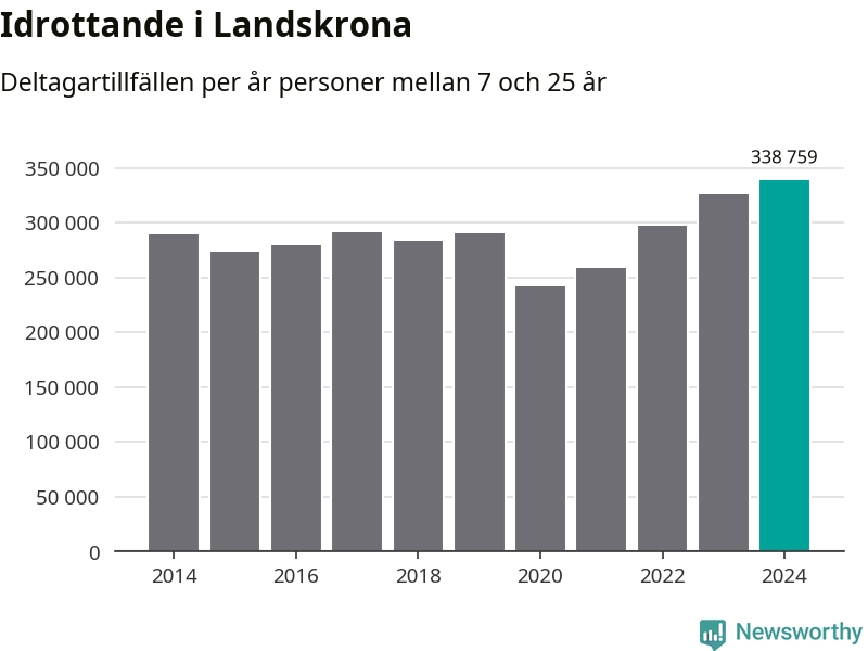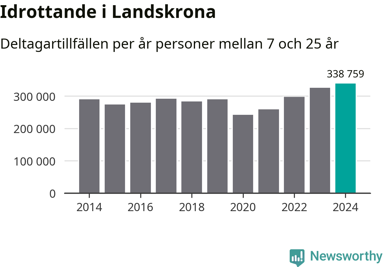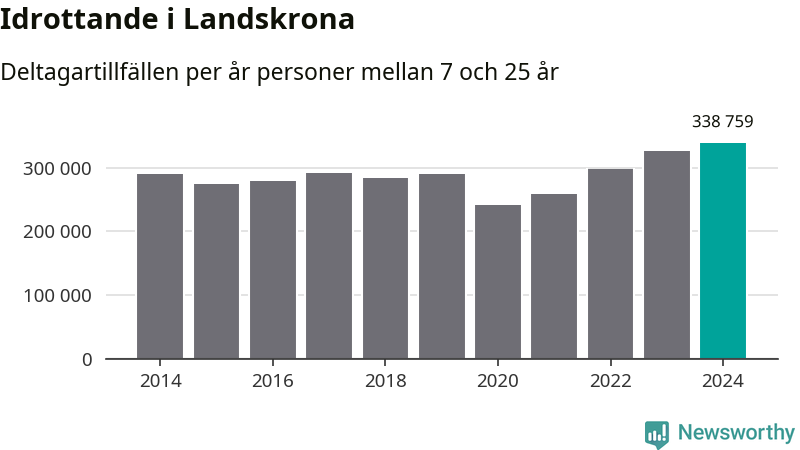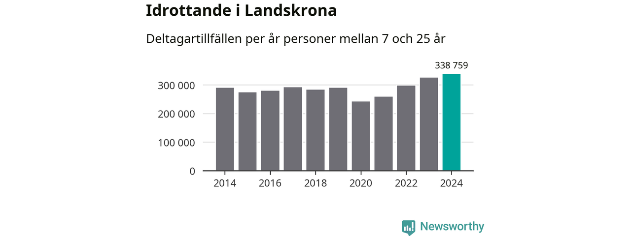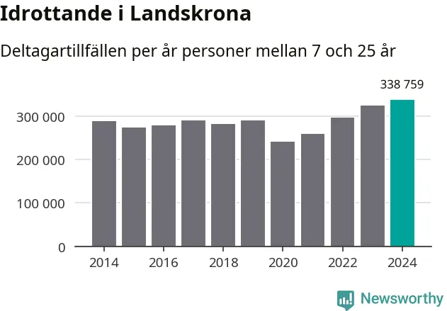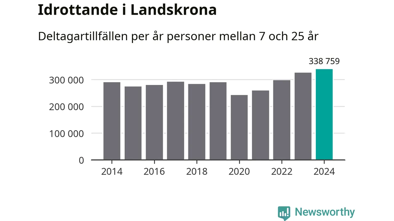 För fjärde året i rad ökade aktiviteten inom ungdomsidrotten i Landskrona under 2024. Det visar nya siffror om utbetalt Lok-stöd, som delas ut till föreningar anslutna till Riksidrottsförbundet specialidrottsförbund. Stödet riktar sig till föreningar som bedriver verksamhet för deltagare i åldern 7-25 år. Under året rapporterade föreningarna i Landskrona runt 339 000 deltagartillfällen, vilket är en ökning med fyra procent jämfört med 2023, och den högsta siffran i kommunen sedan åtminstone 2014. I riket som helhet ökade antalet deltagartillfällen med fem procent under 2024.
