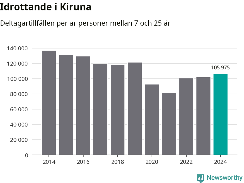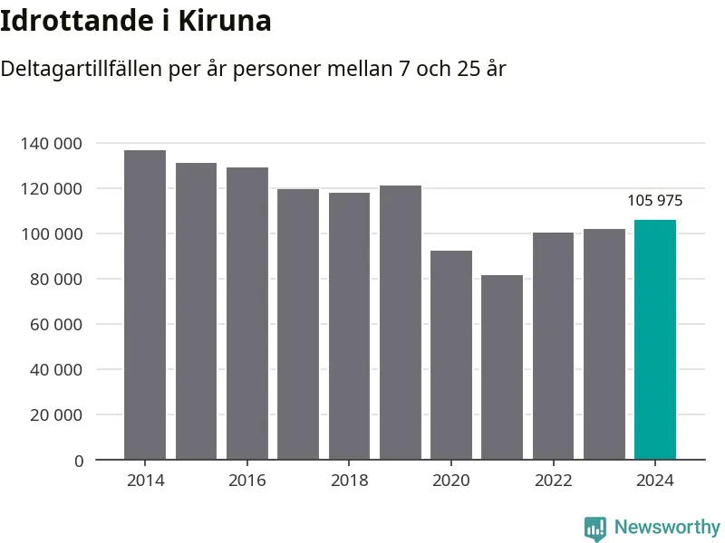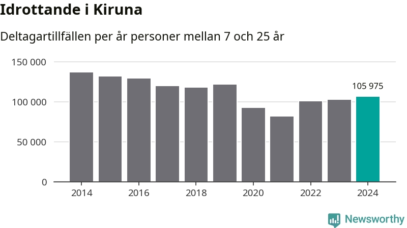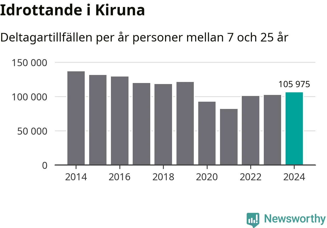 Kiruna-ungdomarna idrottade mer under 2024. Det visar nya siffror om utbetalt Lok-stöd, som delas ut till föreningar anslutna till Riksidrottsförbundet specialidrottsförbund. Stödet riktar sig till föreningar som bedriver verksamhet för deltagare i åldern 7-25 år. Under året rapporterade föreningarna i Kiruna runt 106 000 deltagartillfällen, vilket är en ökning med fyra procent jämfört med 2023. I riket som helhet ökade antalet deltagartillfällen med fem procent under 2024.