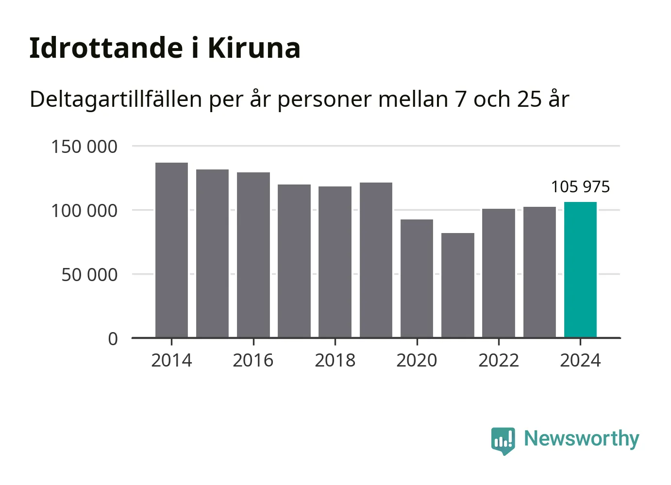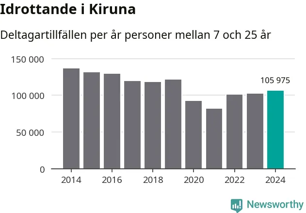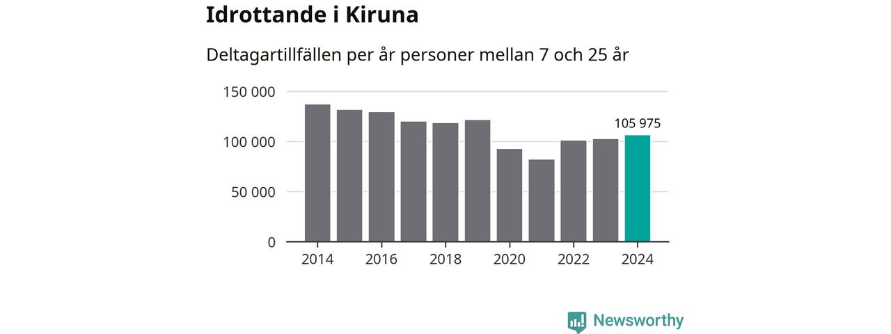 De 106 000 deltagartillfällen innebär att varje invånare i Kiruna mellan 7 och 25 år i snitt deltog i 23 träningar, matcher eller turneringar under 2024. Flest deltagartillfällen per invånare i Norrbotten hade Luleå kommun med 33 deltagartillfällen per invånare. I andra änden av listan finns Jokkmokks kommun, 13 deltagartillfällen per invånare. Värt att nämna är att deltagartillfällena räknas i den kommun föreningen finns, det kan alltså vara ungdomar från en annan kommun som deltar.