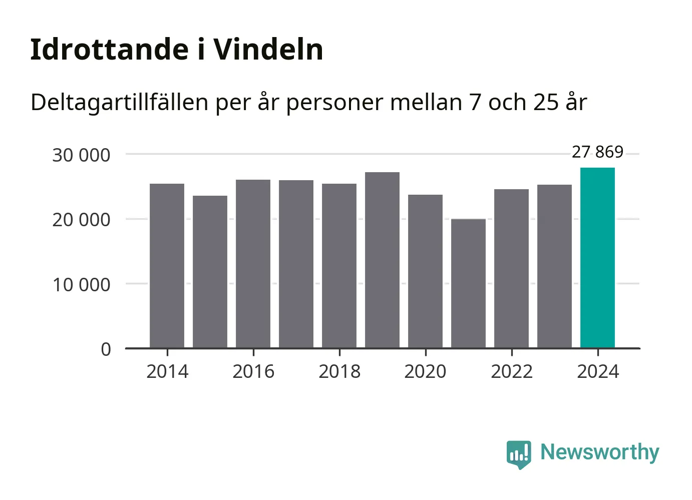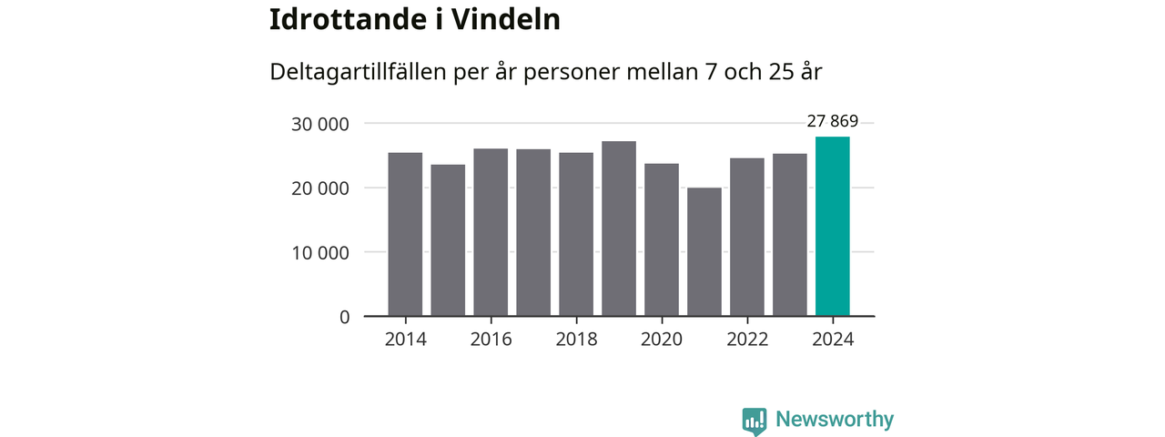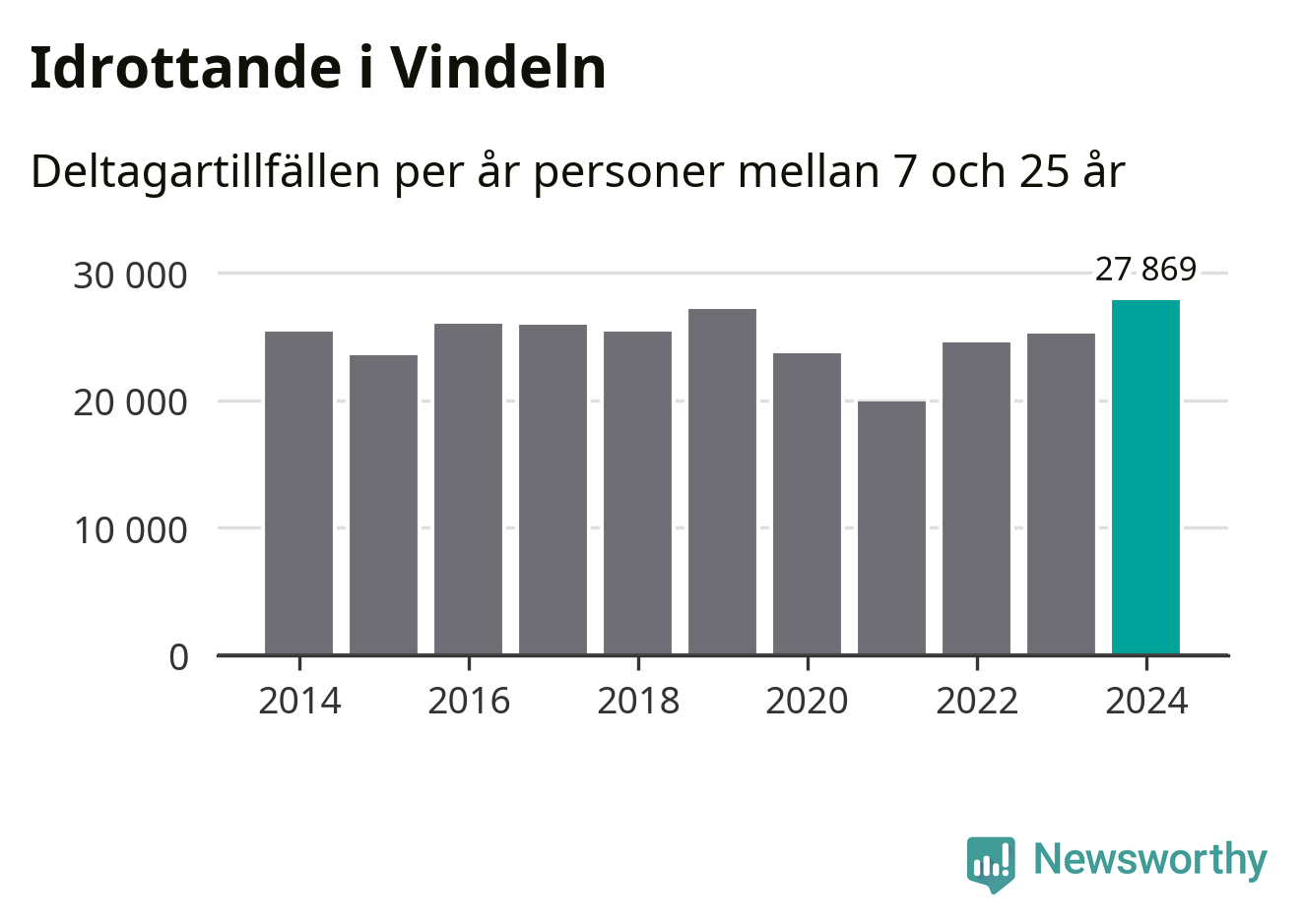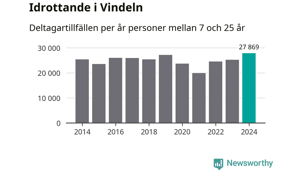 För tredje året i rad ökade aktiviteten inom ungdomsidrotten i Vindeln under 2024. Det visar nya siffror om utbetalt Lok-stöd, som delas ut till föreningar anslutna till Riksidrottsförbundet specialidrottsförbund. Stödet riktar sig till föreningar som bedriver verksamhet för deltagare i åldern 7-25 år. Under året rapporterade föreningarna i Vindeln runt 28 000 deltagartillfällen, vilket är en ökning med tio procent jämfört med 2023, och den högsta siffran i kommunen sedan åtminstone 2014. I riket som helhet ökade antalet deltagartillfällen med fem procent under 2024.