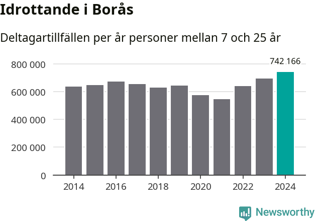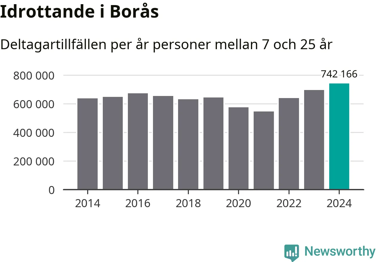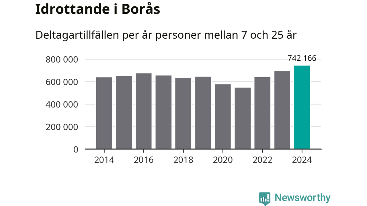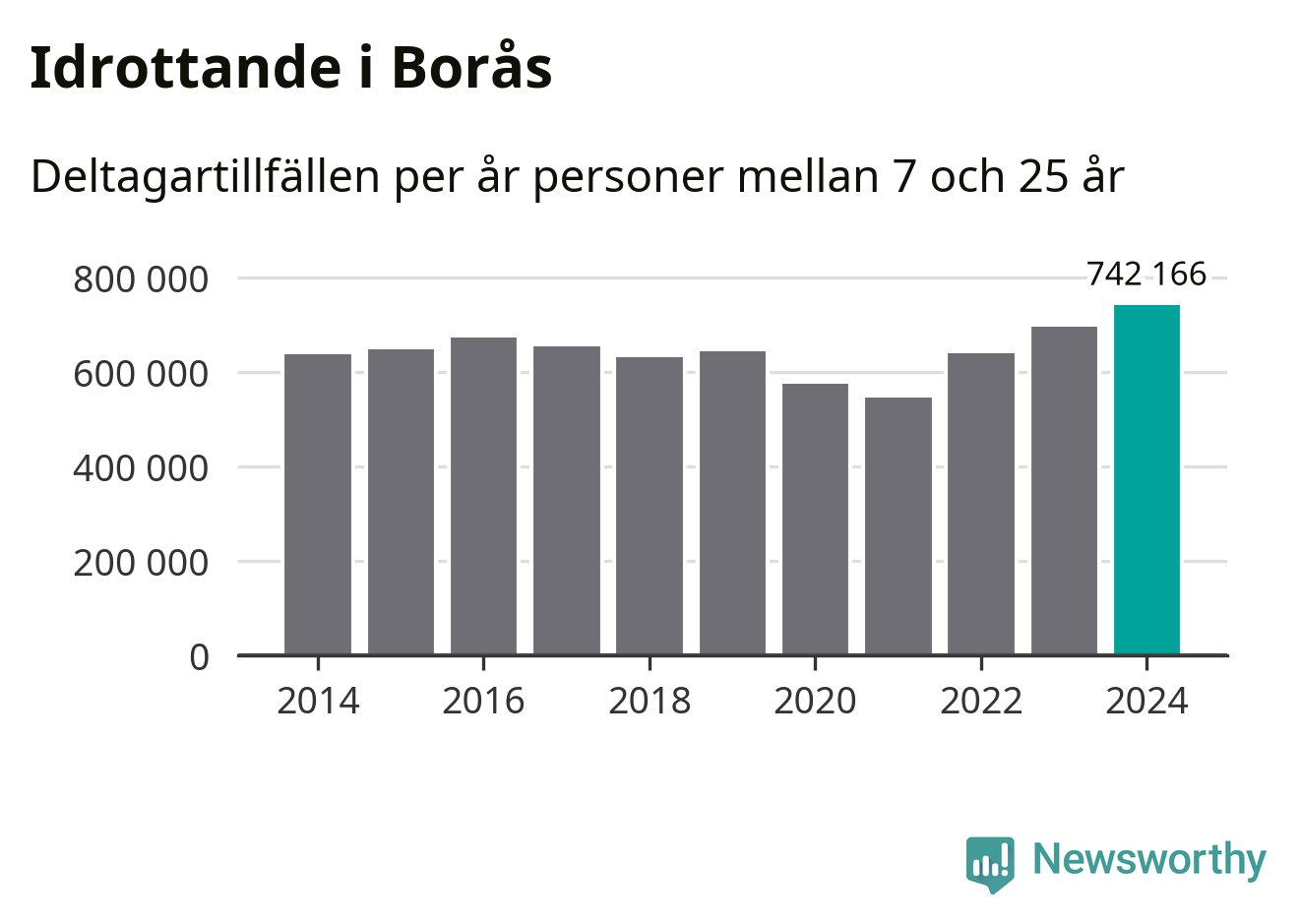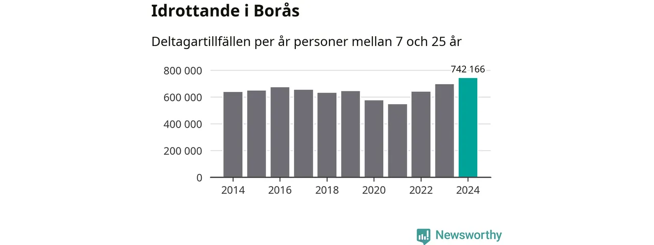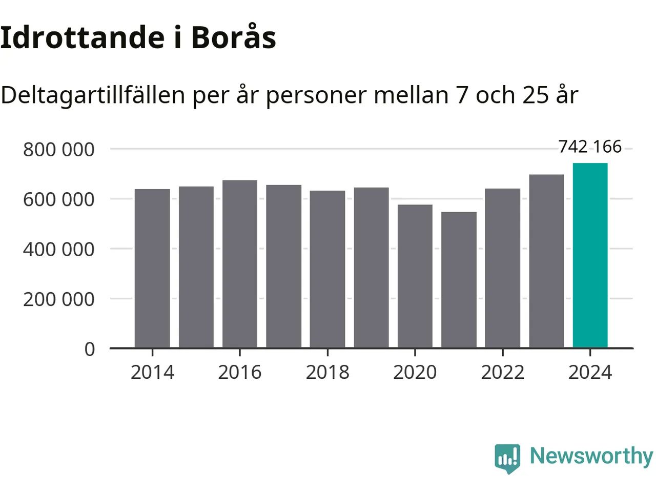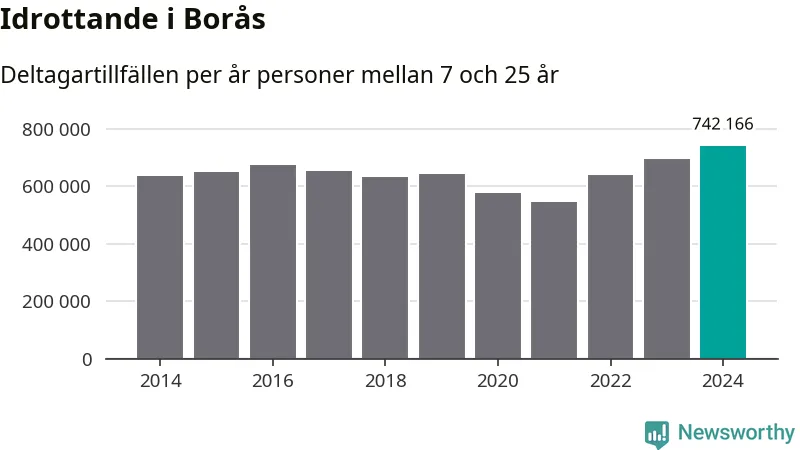 För tredje året i rad ökade aktiviteten inom ungdomsidrotten i Borås under 2024. Det visar nya siffror om utbetalt Lok-stöd, som delas ut till föreningar anslutna till Riksidrottsförbundet specialidrottsförbund. Stödet riktar sig till föreningar som bedriver verksamhet för deltagare i åldern 7-25 år. Under året rapporterade föreningarna i Borås runt 742 000 deltagartillfällen, vilket är en ökning med sju procent jämfört med 2023, och den högsta siffran i kommunen sedan åtminstone 2014. I riket som helhet ökade antalet deltagartillfällen med fem procent under 2024.