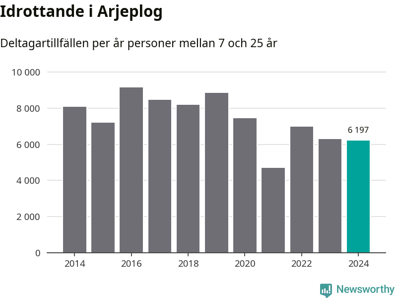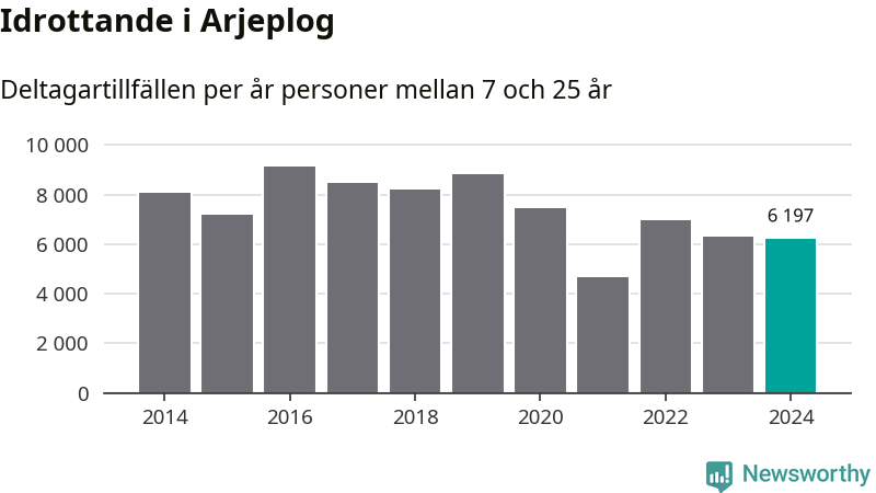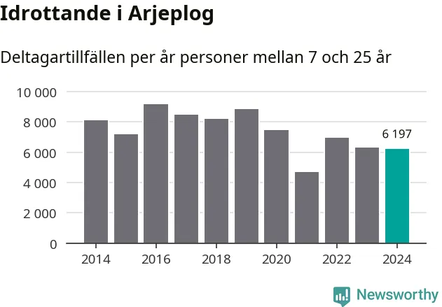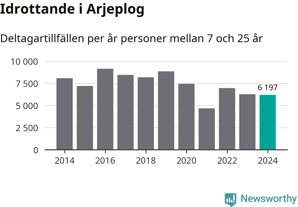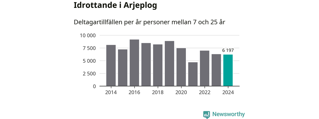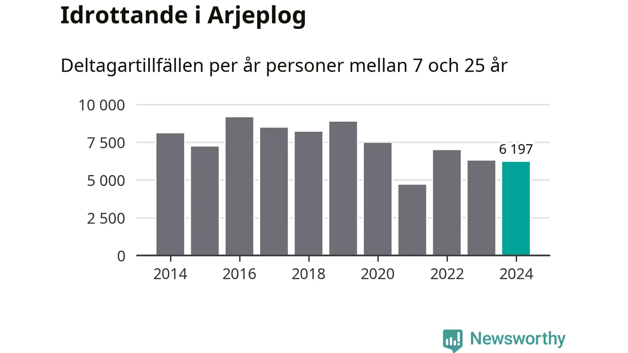 Idrottande Arjeplogsungdomar registrerades för drygt 6 000 deltagartillfällen under 2024. Det är något färre än året innan. Det visar nya siffror om utbetalt Lok-stöd, som delas ut till föreningar anslutna till Riksidrottsförbundet specialidrottsförbund. Stödet riktar sig till föreningar som bedriver verksamhet för deltagare i åldern 7-25 år. I riket som helhet ökade antalet deltagartillfällen med fem procent under 2024.
