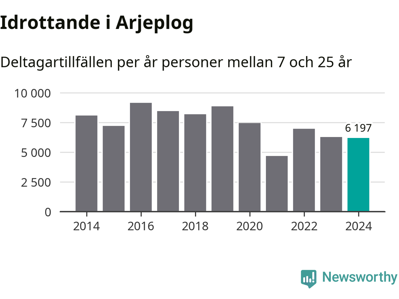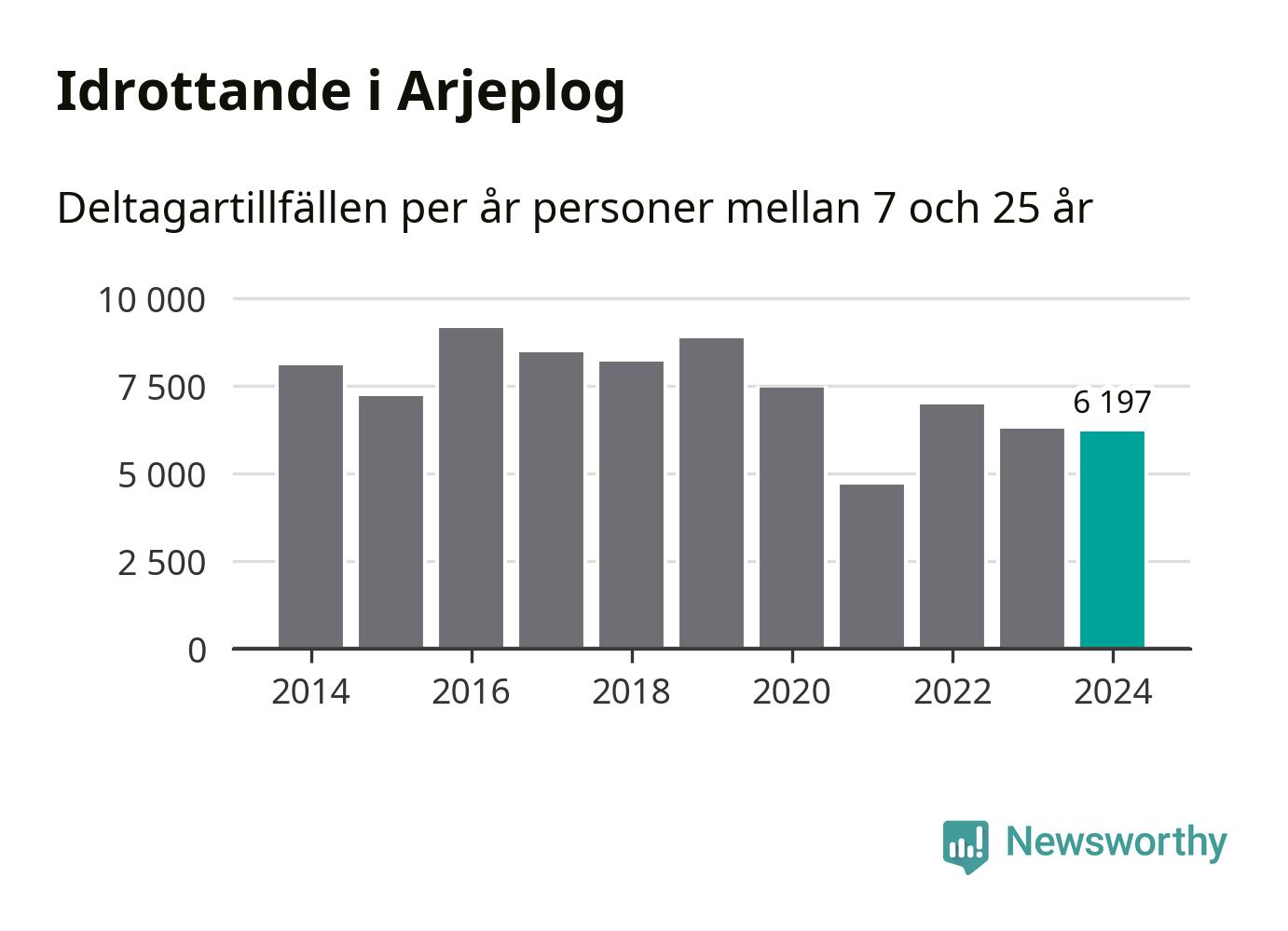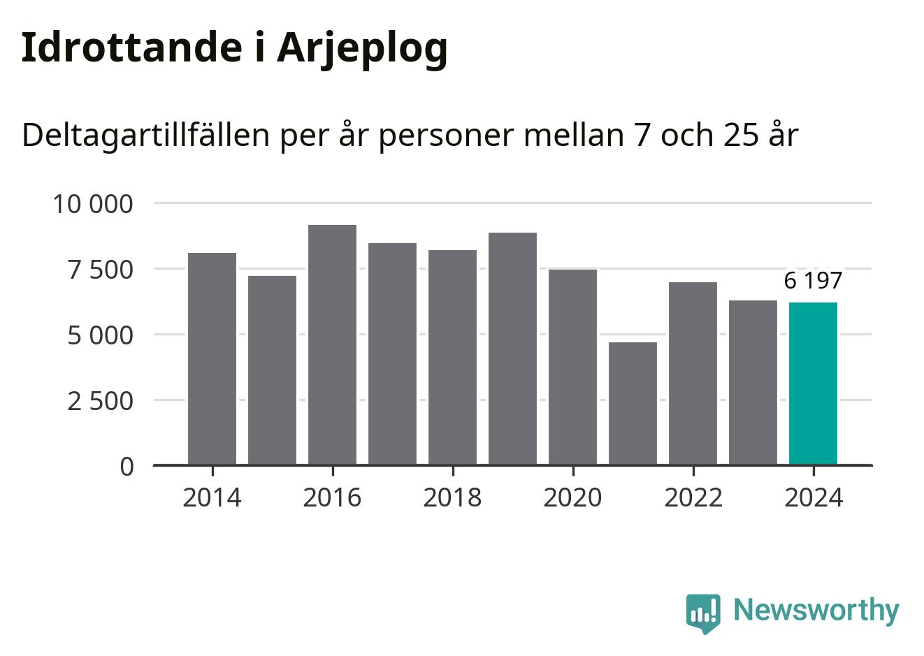 Idrottande Arjeplogsungdomar registrerades för drygt 6 000 deltagartillfällen under 2024. Det är något färre än året innan. Det visar nya siffror om utbetalt Lok-stöd, som delas ut till föreningar anslutna till Riksidrottsförbundet specialidrottsförbund. Stödet riktar sig till föreningar som bedriver verksamhet för deltagare i åldern 7-25 år. I riket som helhet ökade antalet deltagartillfällen med fem procent under 2024.