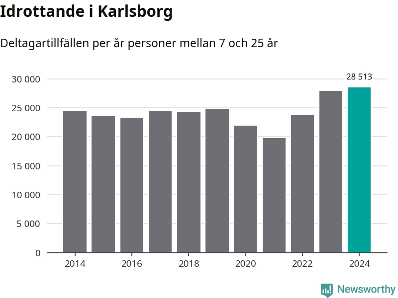 För tredje året i rad ökade aktiviteten inom ungdomsidrotten i Karlsborg under 2024. Det visar nya siffror om utbetalt Lok-stöd, som delas ut till föreningar anslutna till Riksidrottsförbundet specialidrottsförbund. Stödet riktar sig till föreningar som bedriver verksamhet för deltagare i åldern 7-25 år. Under året rapporterade föreningarna i Karlsborg knappt 29 000 deltagartillfällen, vilket är en ökning med två procent jämfört med 2023, och den högsta siffran i kommunen sedan åtminstone 2014. I riket som helhet ökade antalet deltagartillfällen med fem procent under 2024.